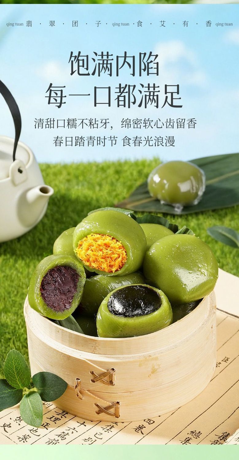 【被我找到啦❗️超好吃的青团】精选新鲜艾草汁揉入糯米皮,Q 弹软糯不粘牙,外皮带着清新的艾草香气,青汁大泡芙传统蛋黄肉松零食清明果子糕点外出携带办公室下午茶QQ