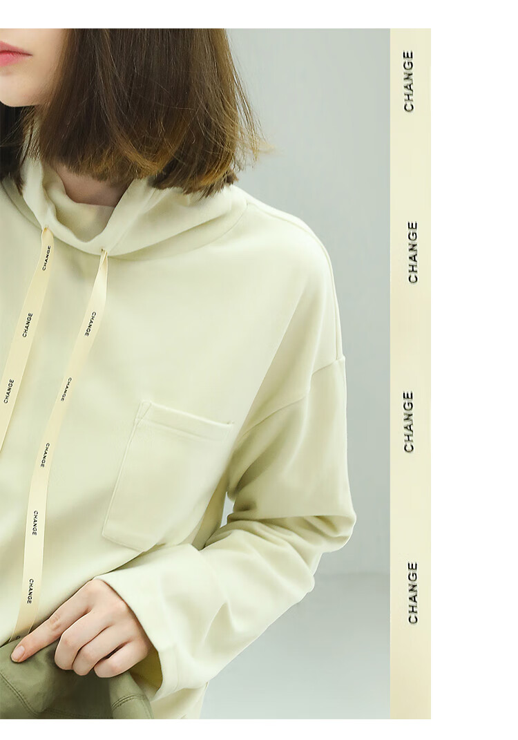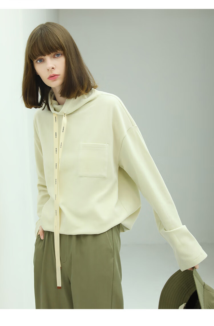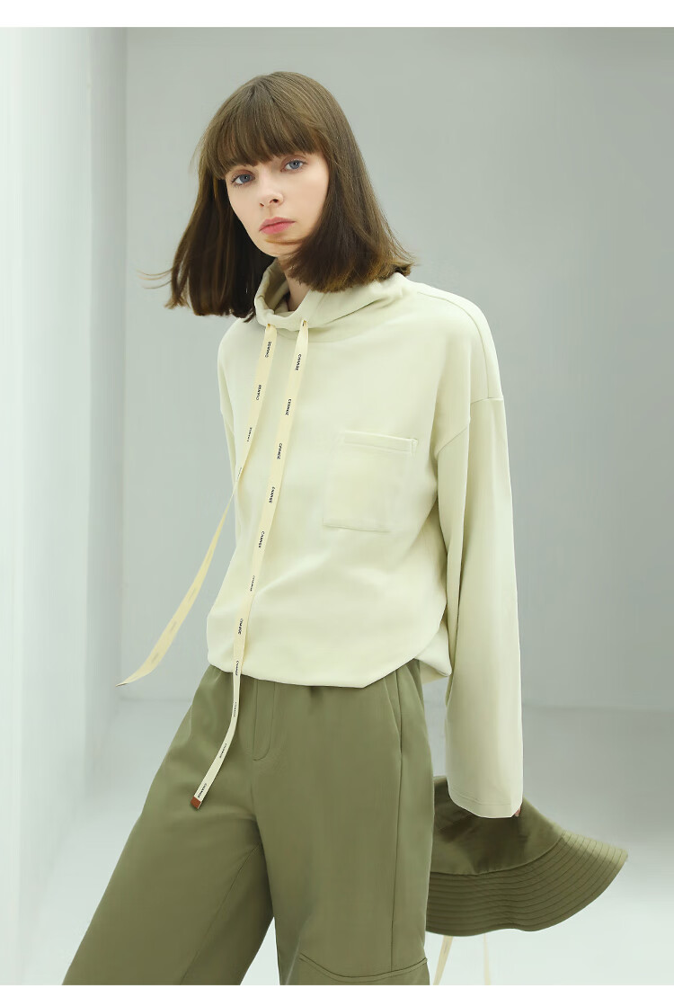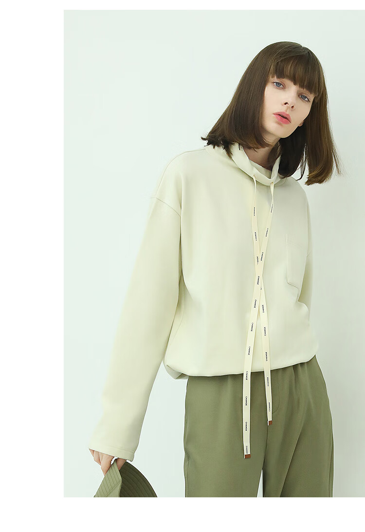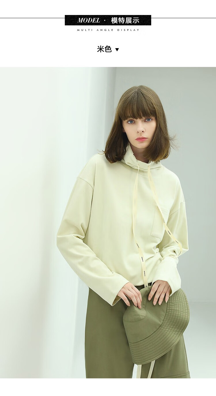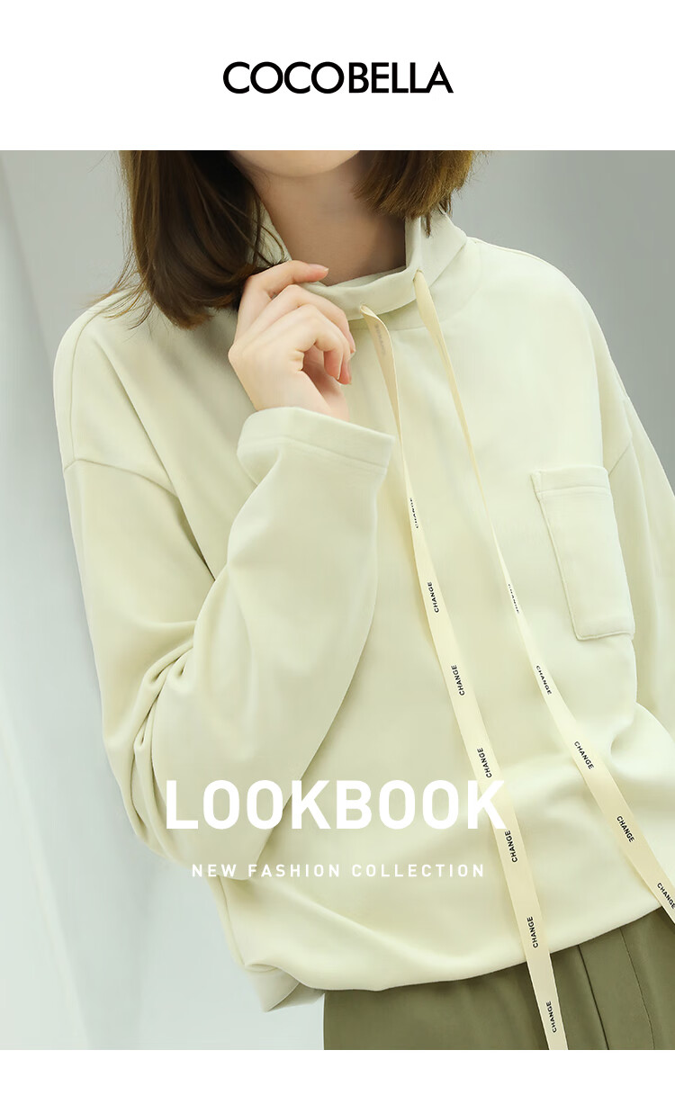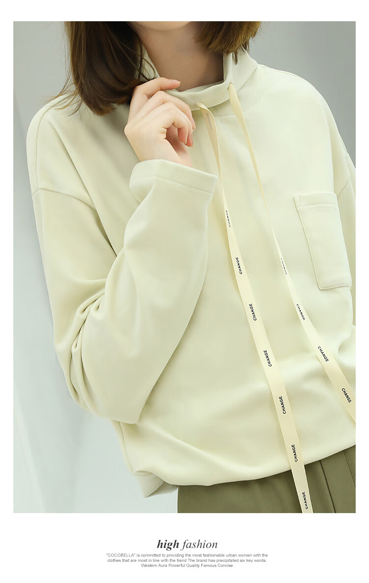 【限时特惠】COCOBELLA简约休闲风高领卫衣女款时尚休闲舒适磨毛飘带上衣SE608