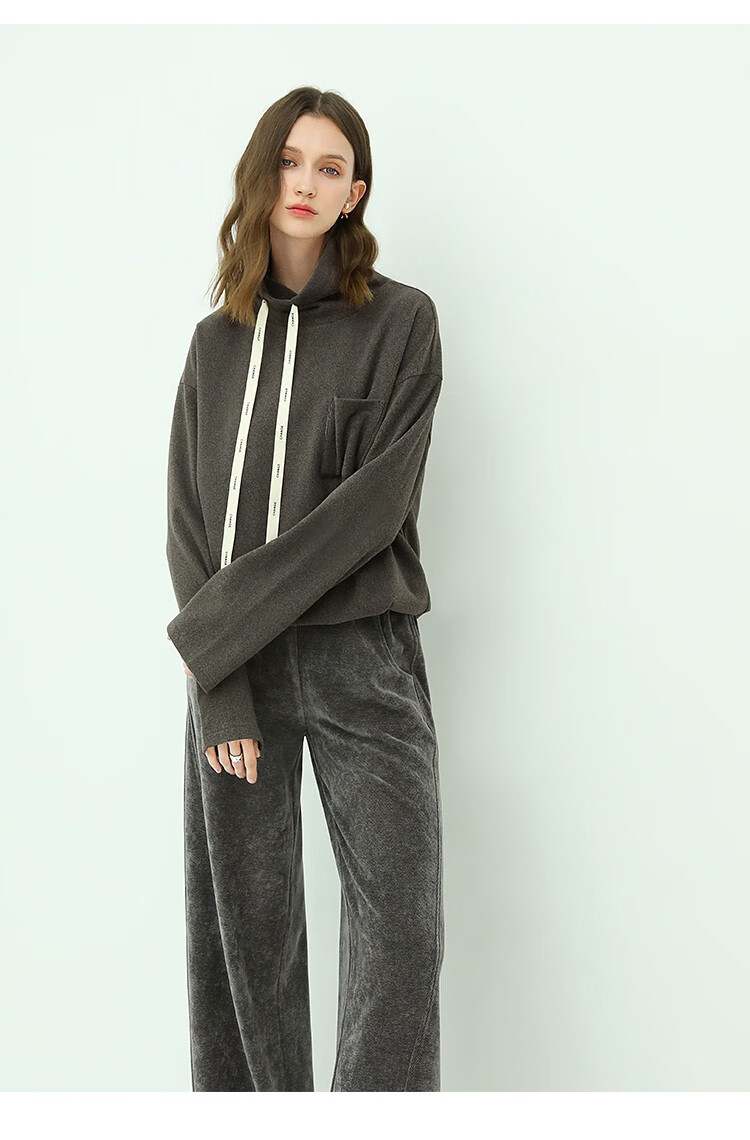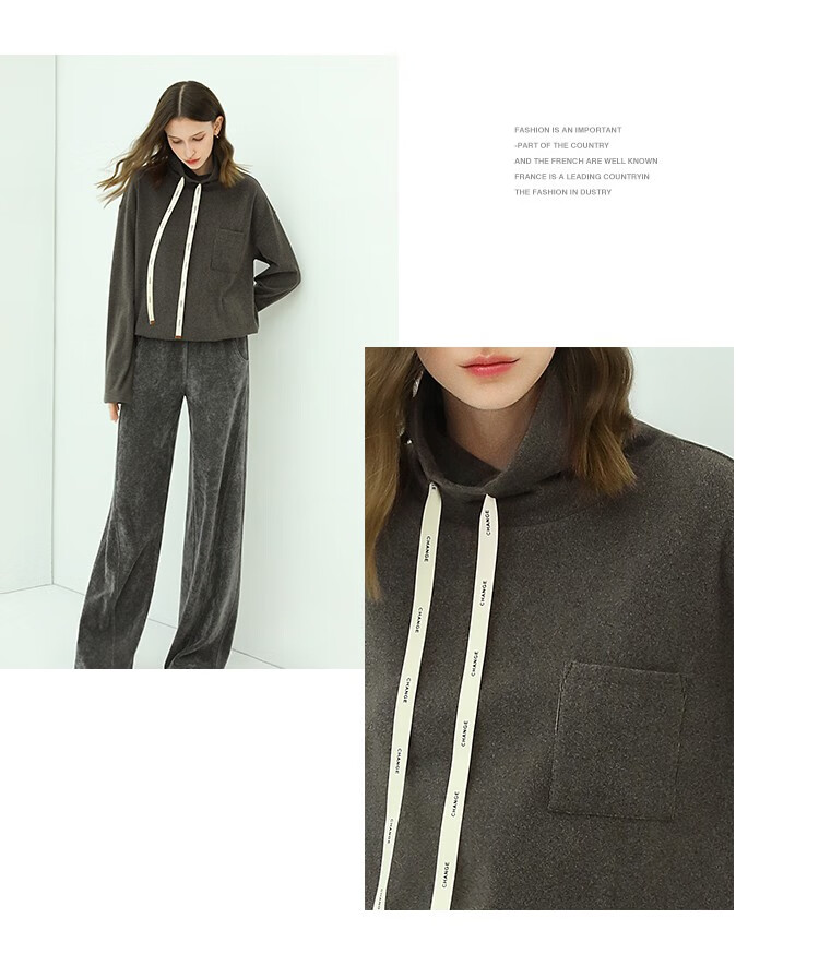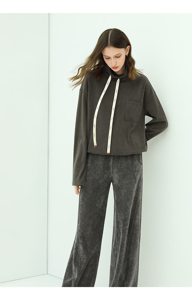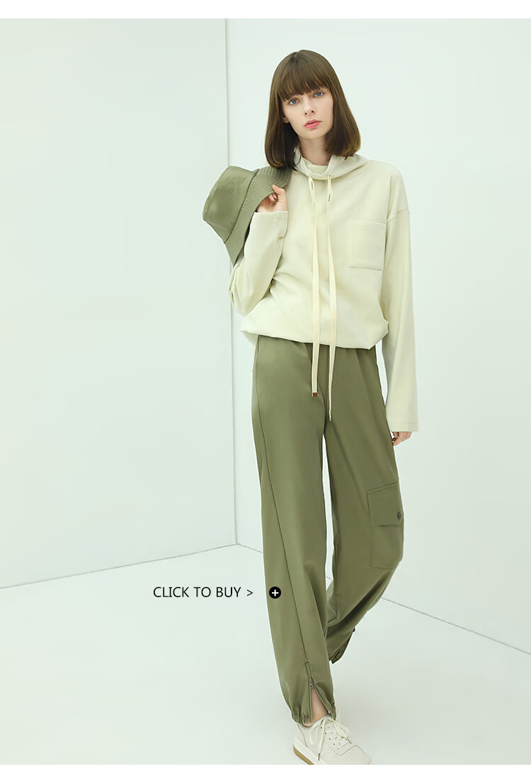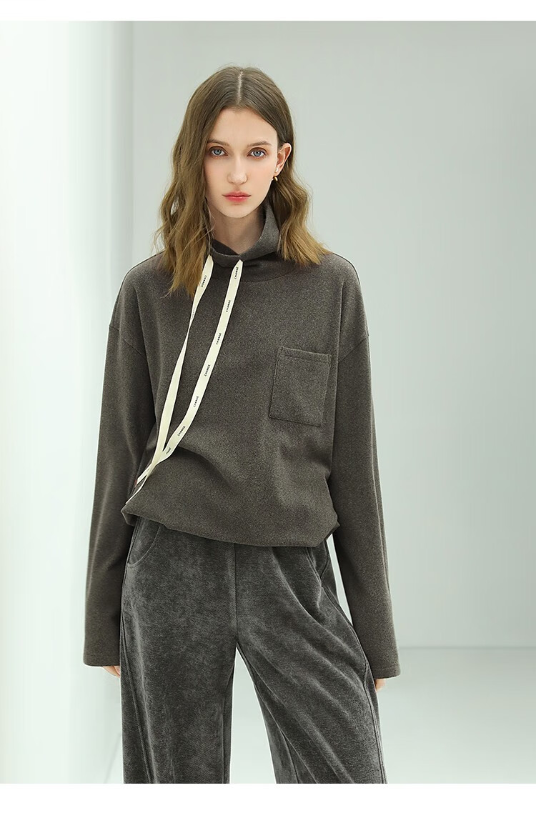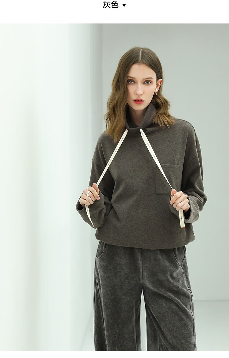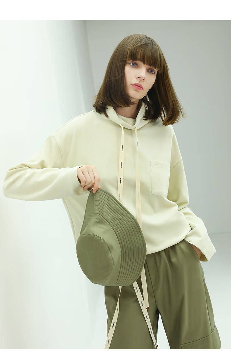 【限时特惠】COCOBELLA简约休闲风高领卫衣女款时尚休闲舒适磨毛飘带上衣SE608