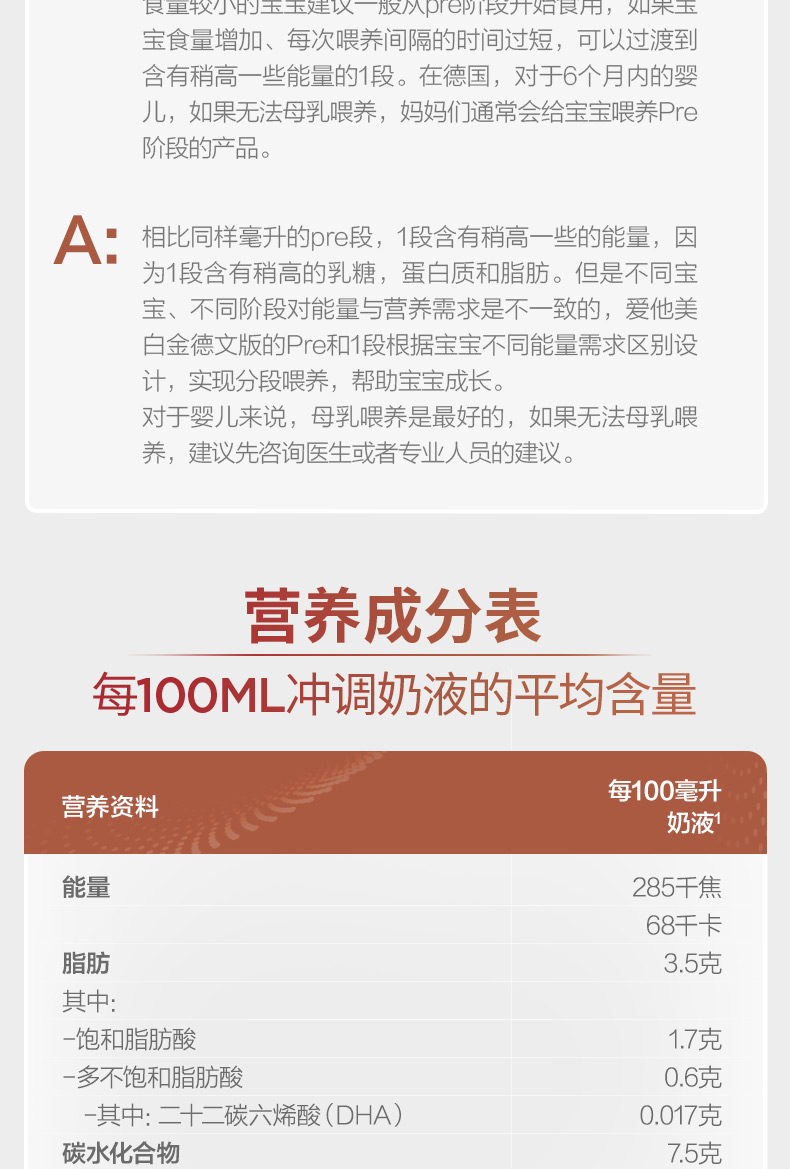 【保税仓】德国爱他美白金1+段 新版800g(有效期至26年1月)