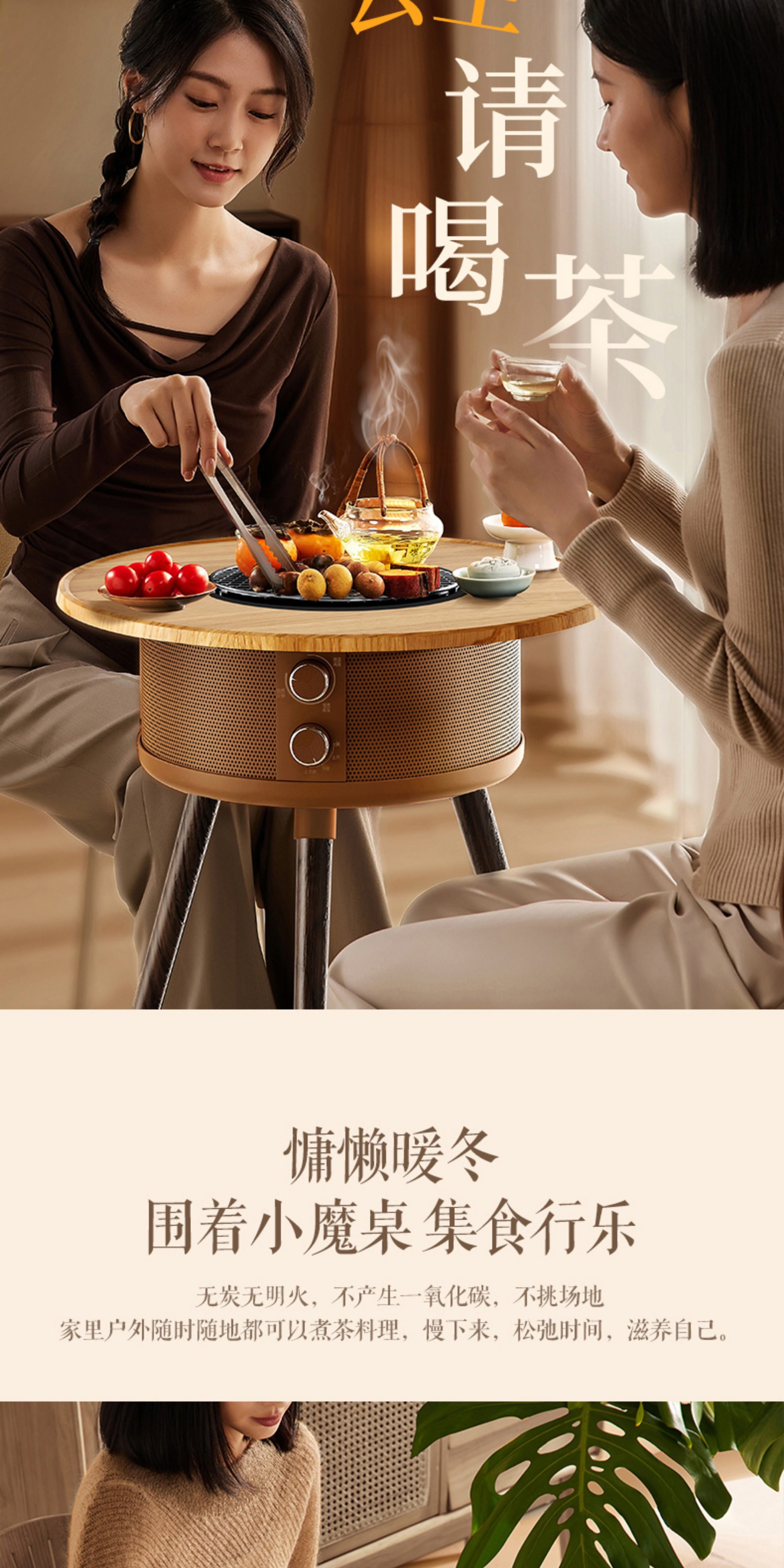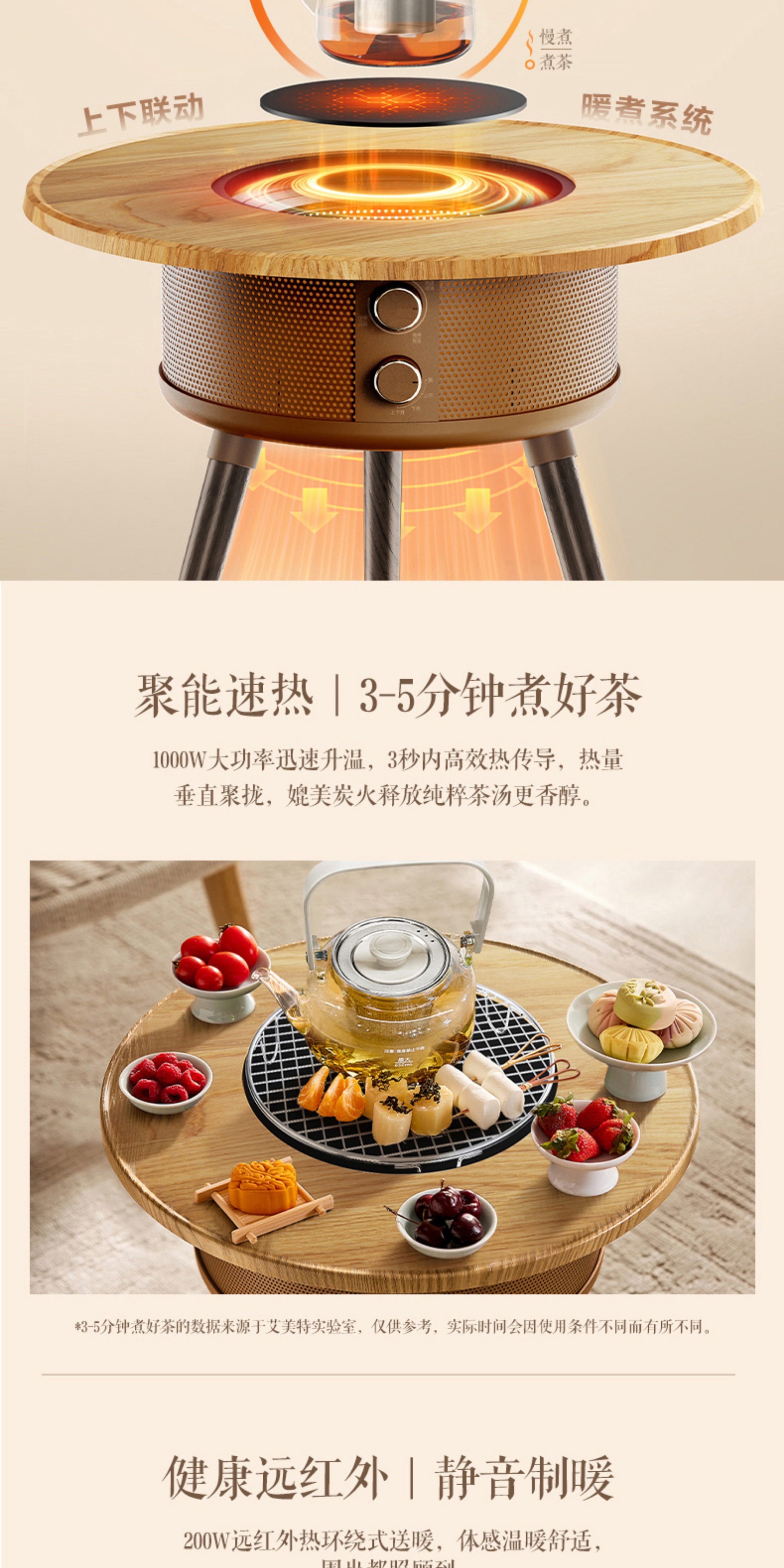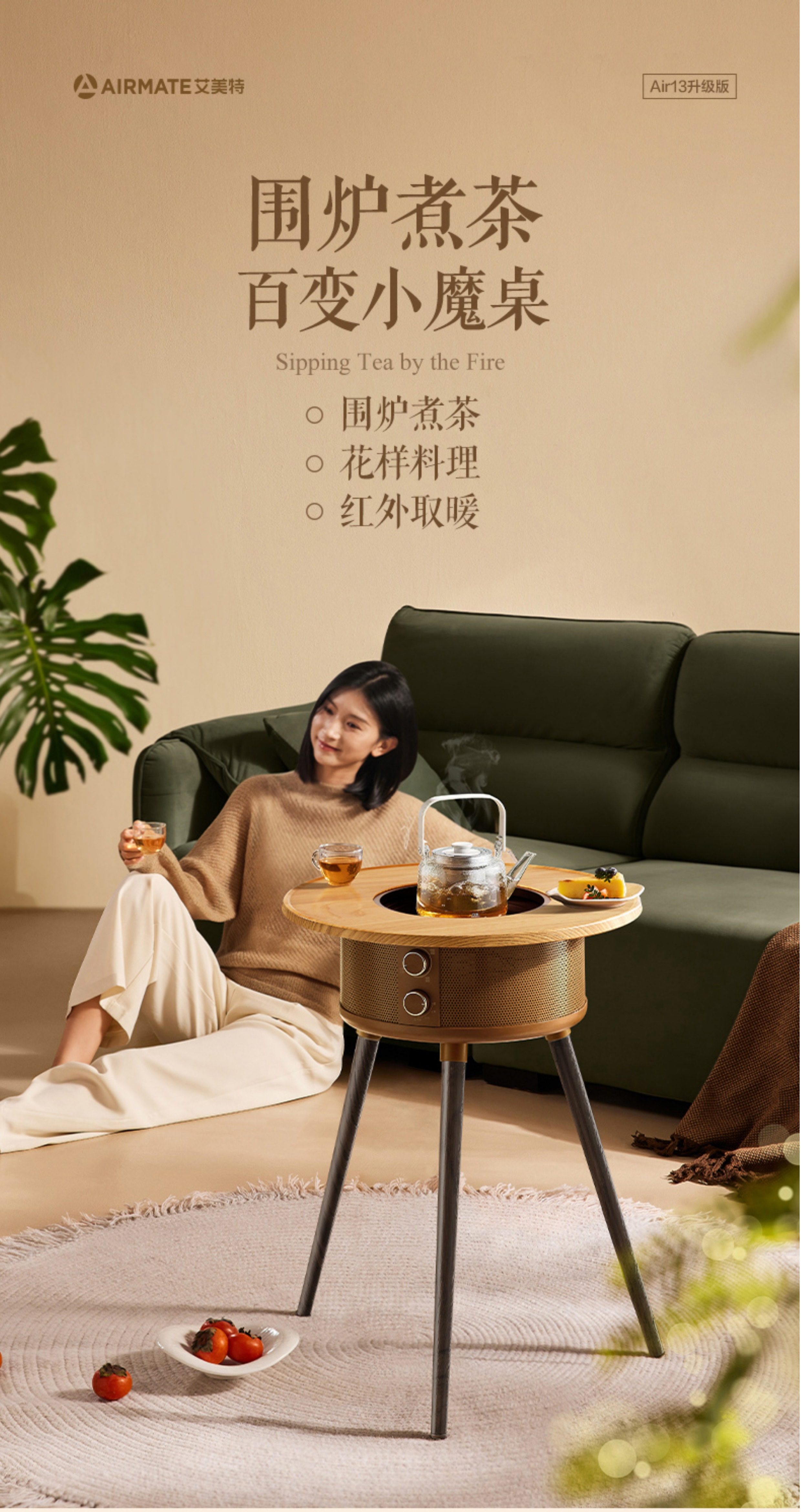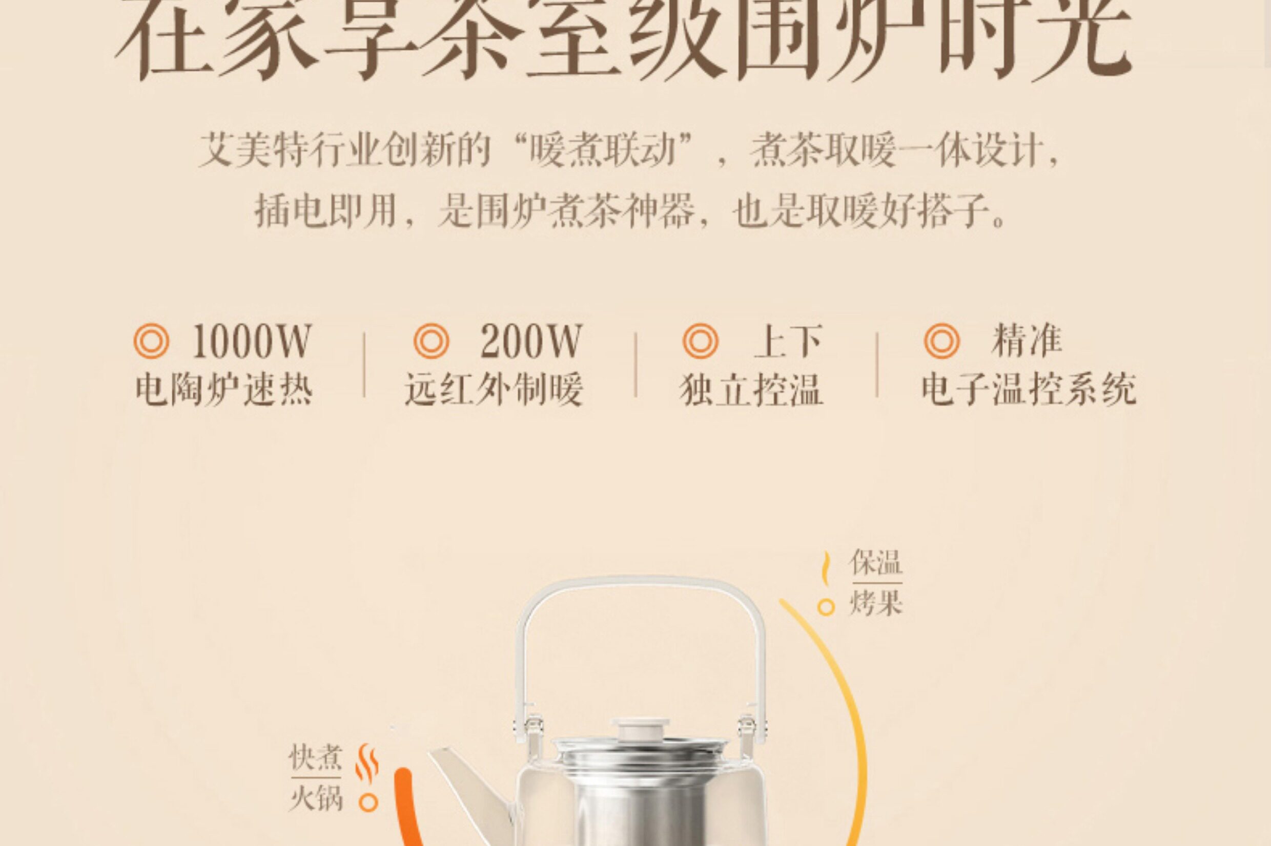 艾美特围炉煮茶取暖器电烤炉家用室内烤火炉冬季多功能电烤炉防寒家用暖腿神器 AIR13PRO