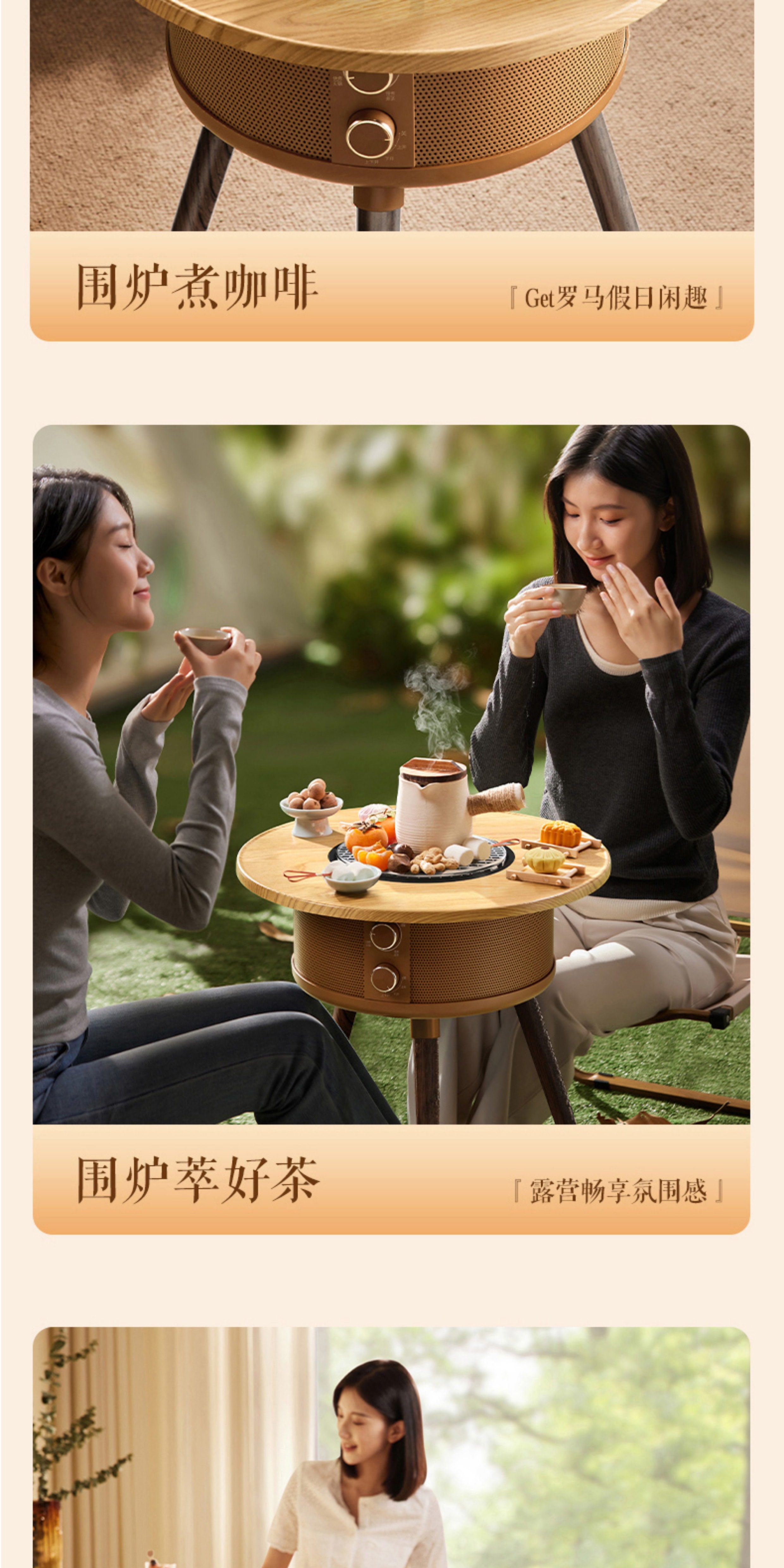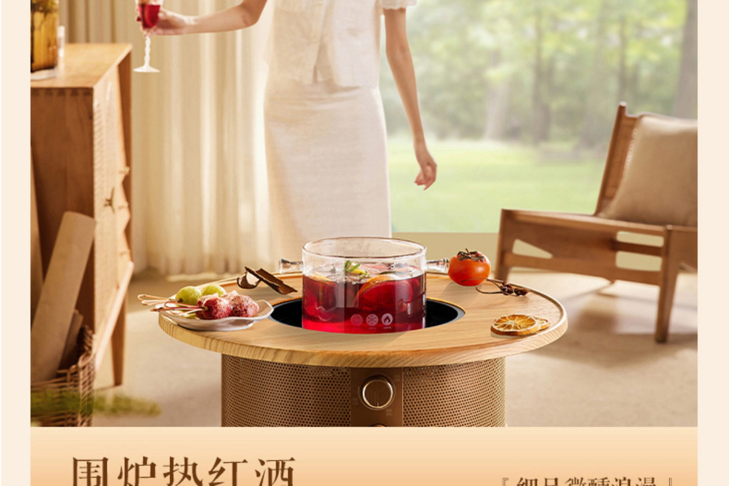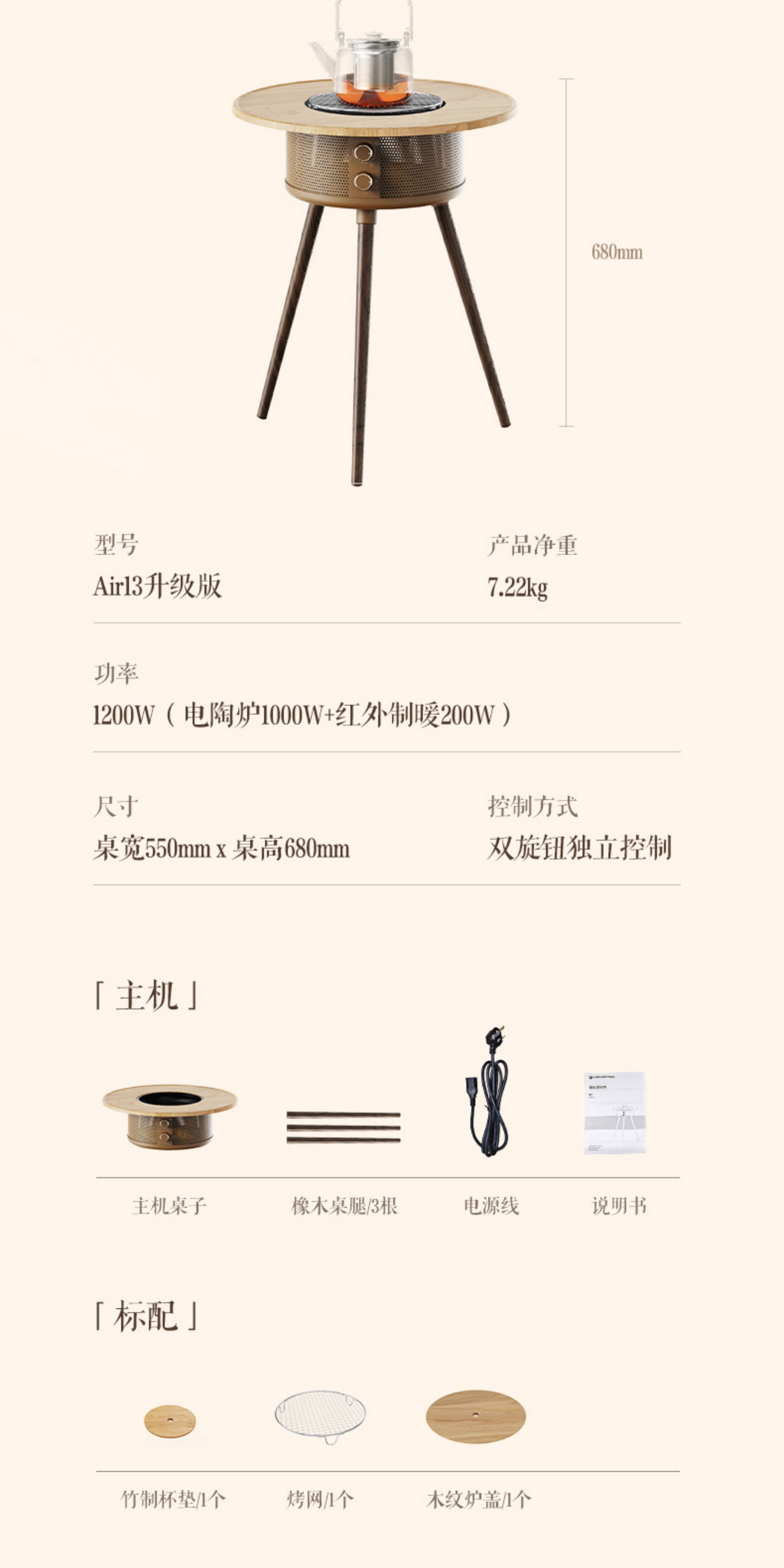 艾美特围炉煮茶取暖器电烤炉家用室内烤火炉冬季多功能电烤炉防寒家用暖腿神器 AIR13PRO