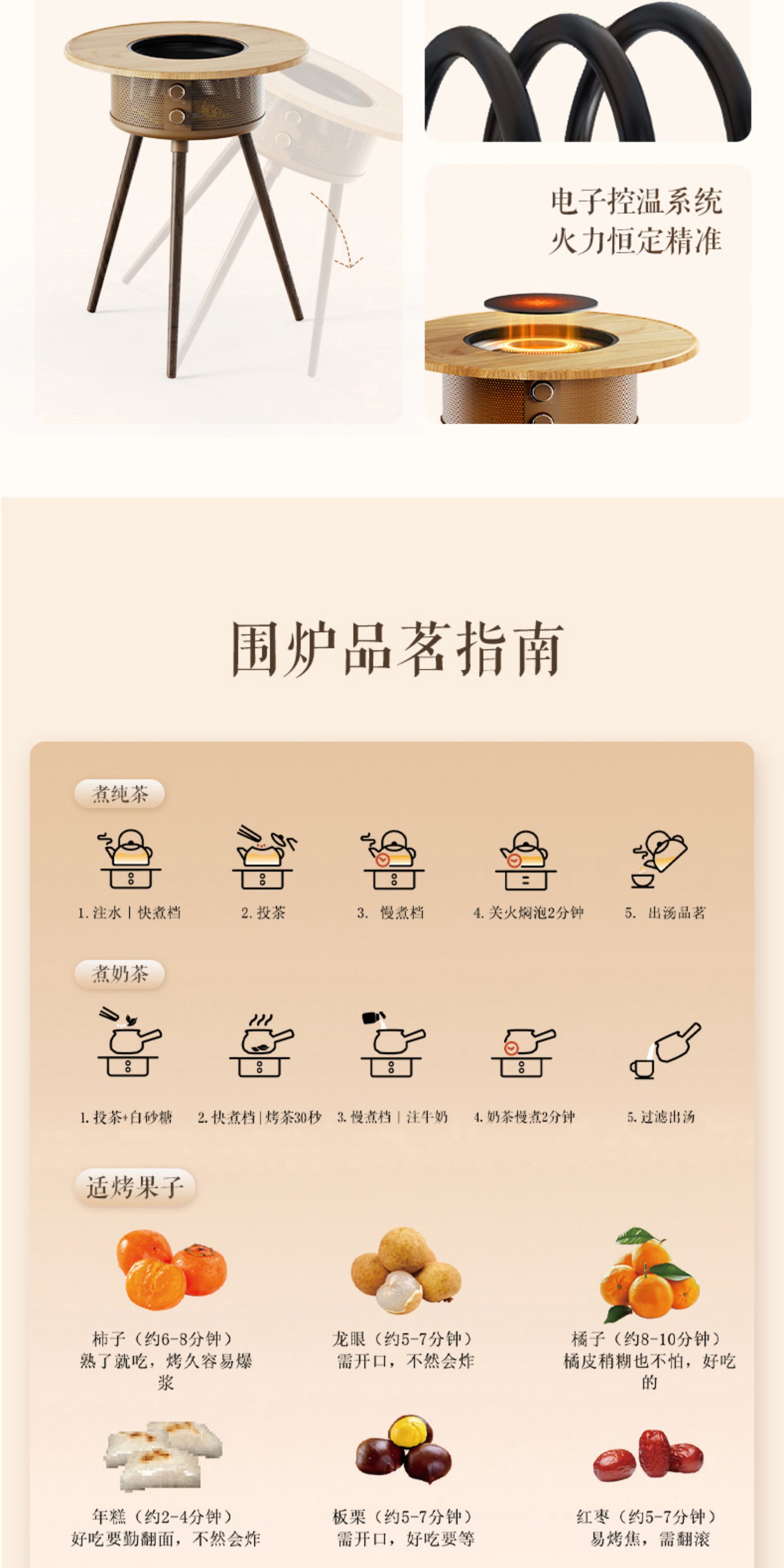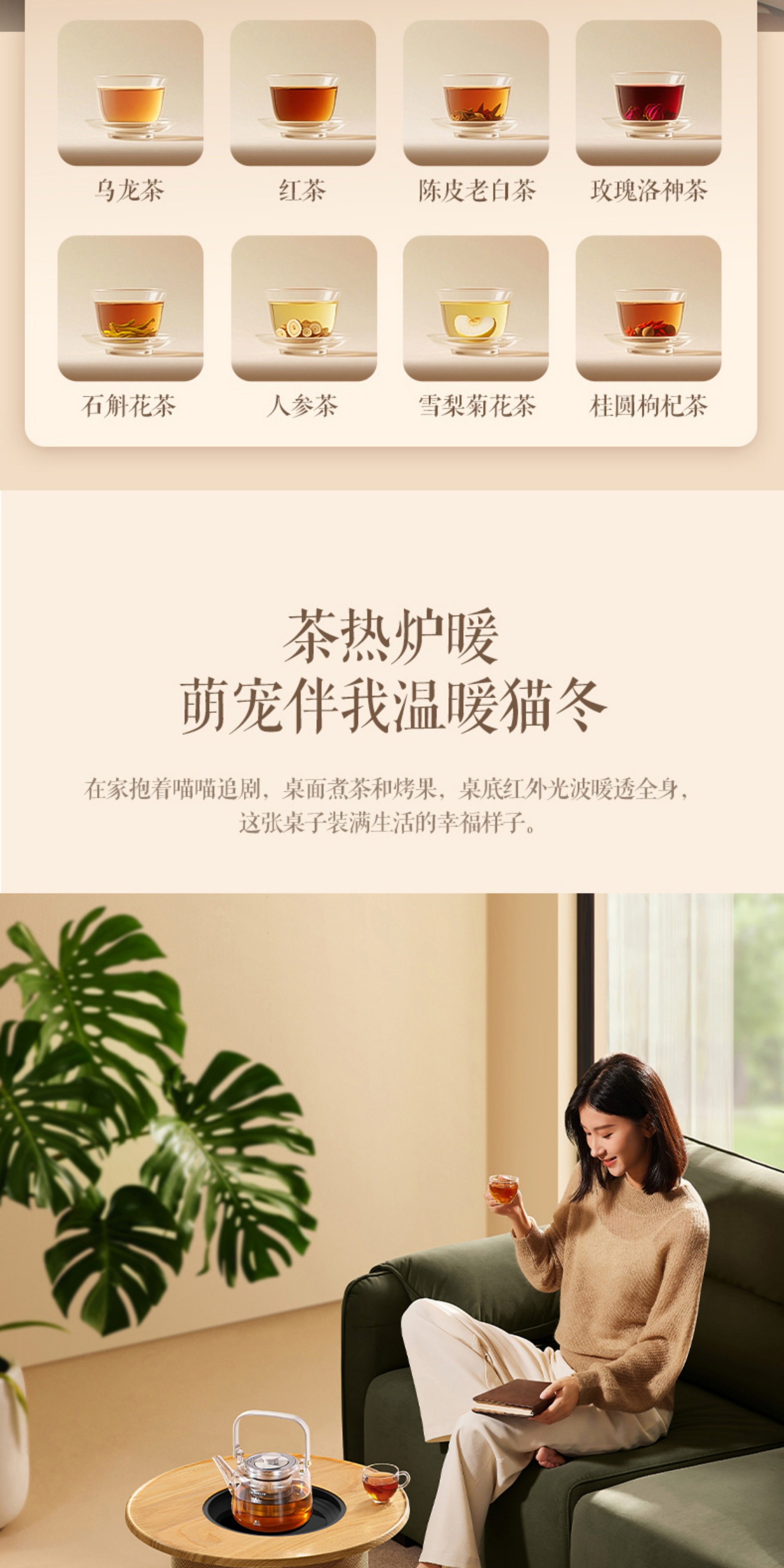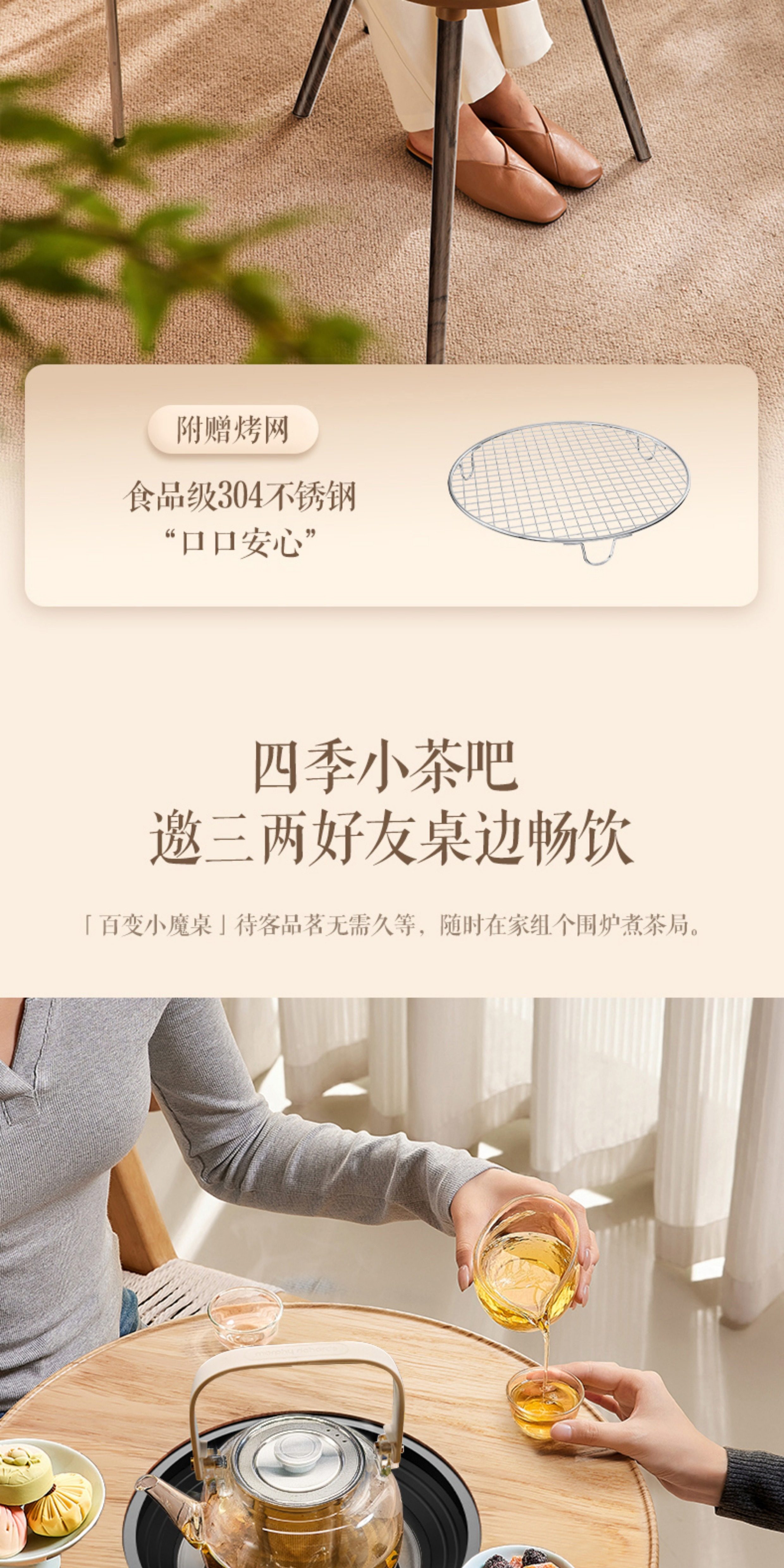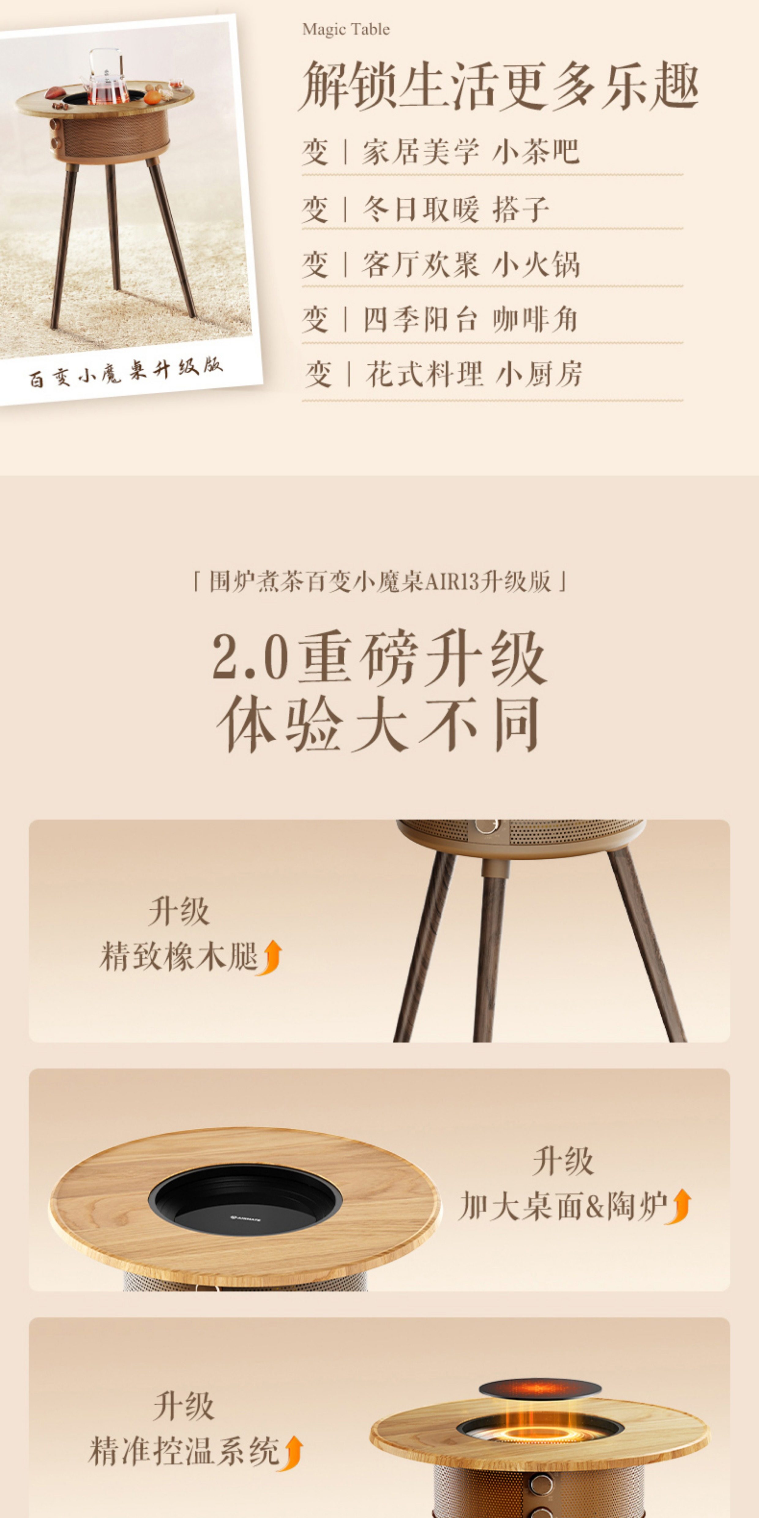 艾美特围炉煮茶取暖器电烤炉家用室内烤火炉冬季多功能电烤炉防寒家用暖腿神器 AIR13PRO