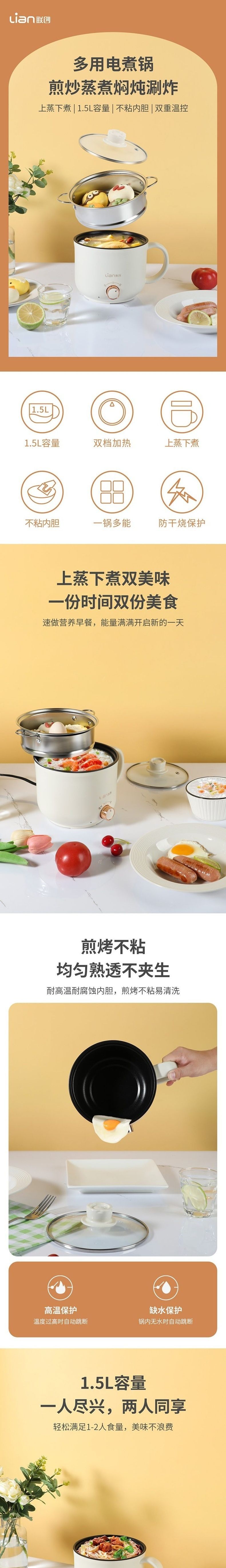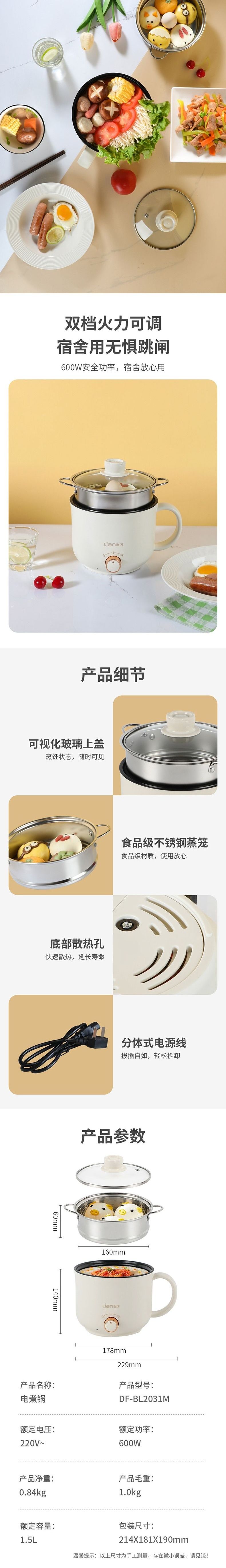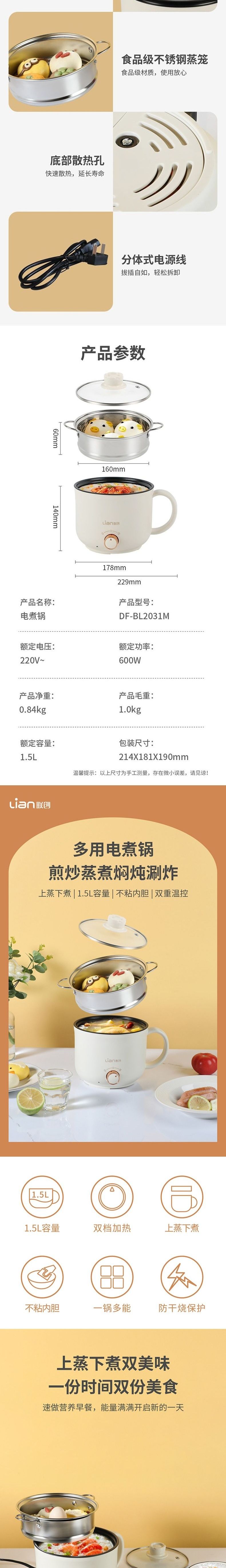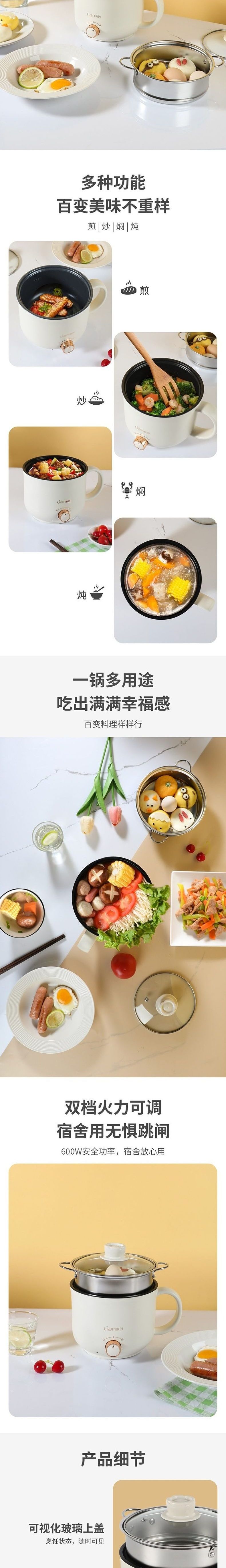 联创 电煮锅 DF-BL2031M 小型煮面锅寝室学生锅可煎可煮