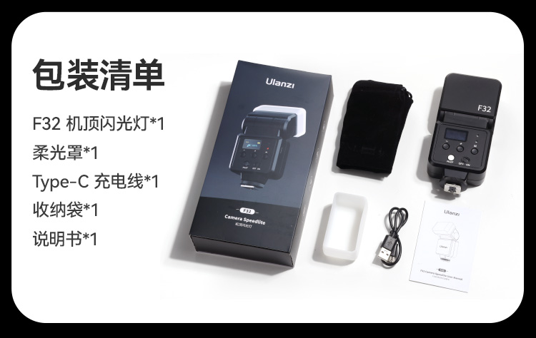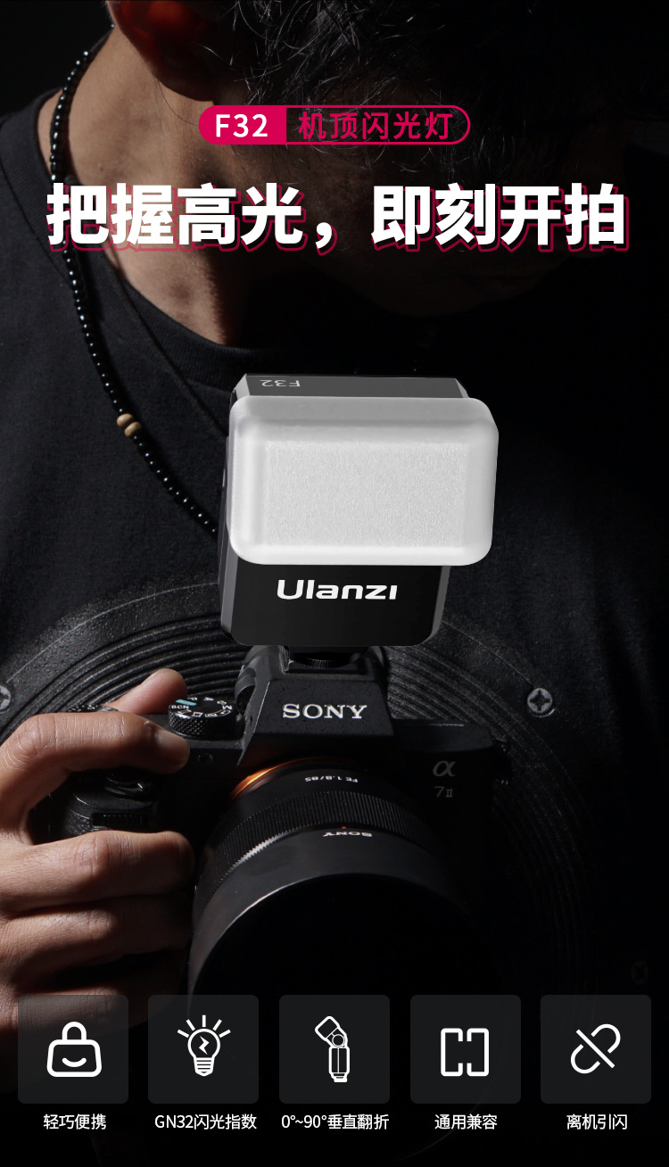 Ulanzi优篮子F32机顶闪光灯单反相机胶片机外置机顶外拍灯适用索尼富士佳能尼康松下专业摄影摄像热靴闪光灯