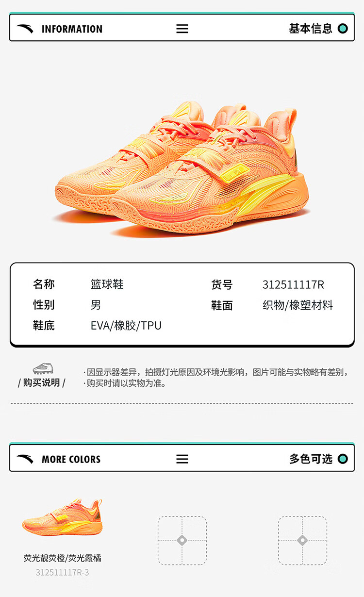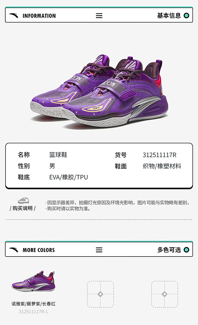 安踏儿童篮球鞋男大童2025春欧文一代缓震曜日曜月篮球鞋312511117R