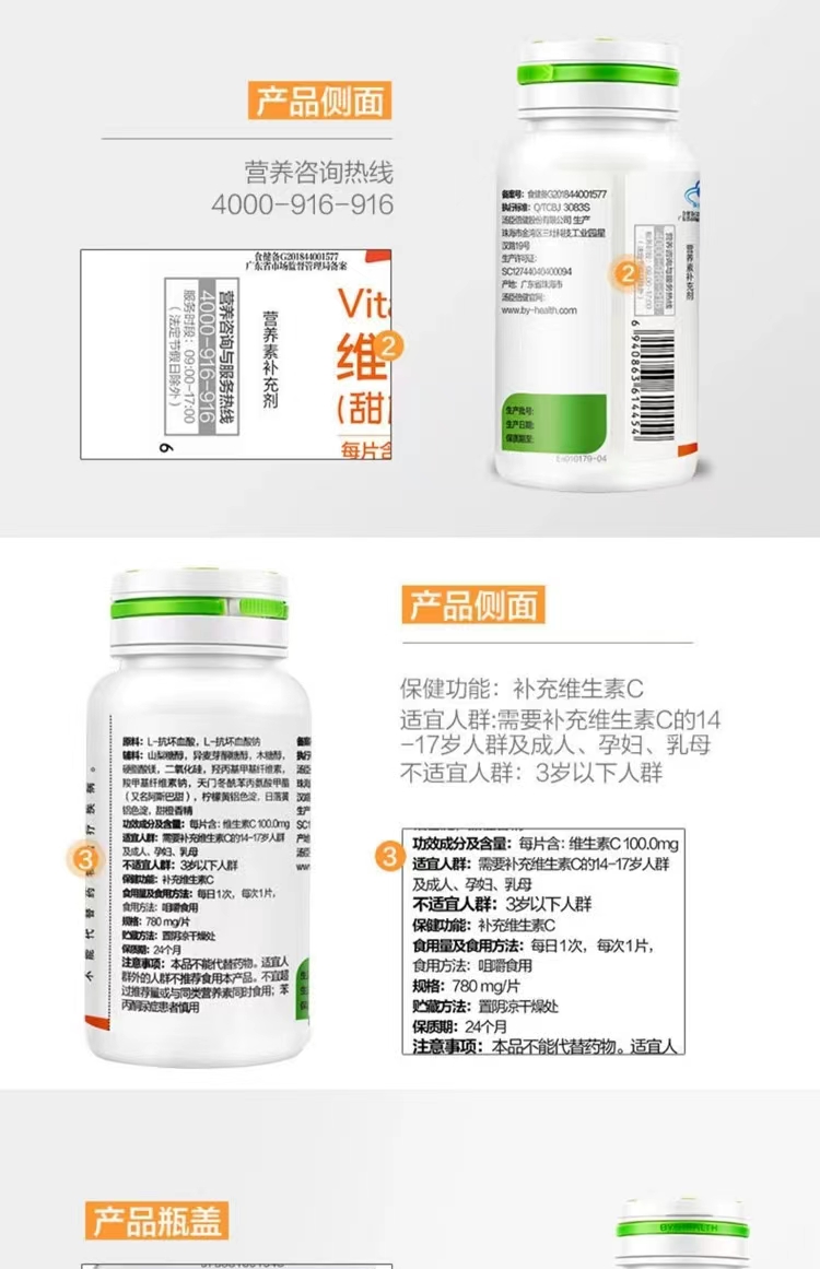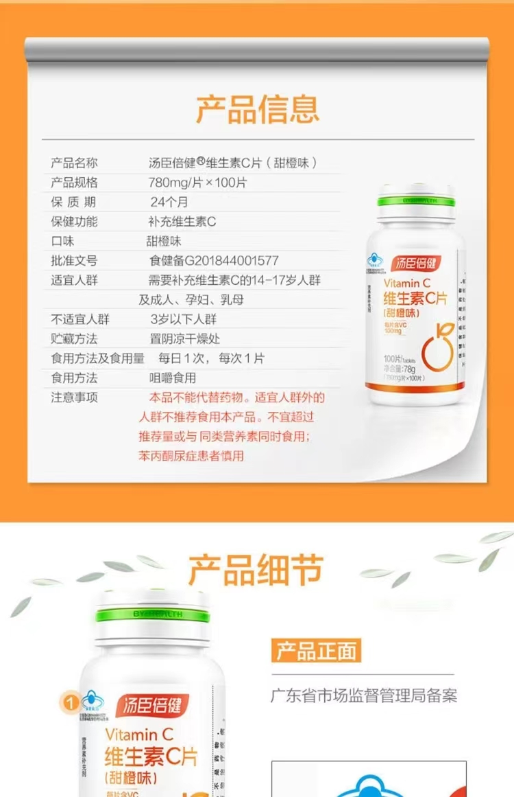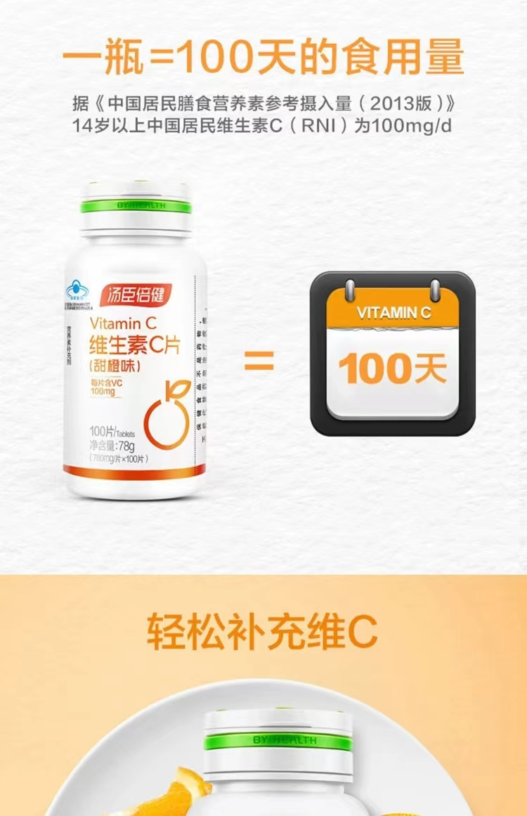 汤臣倍健维生素C片(甜橙味)100片×2优惠装