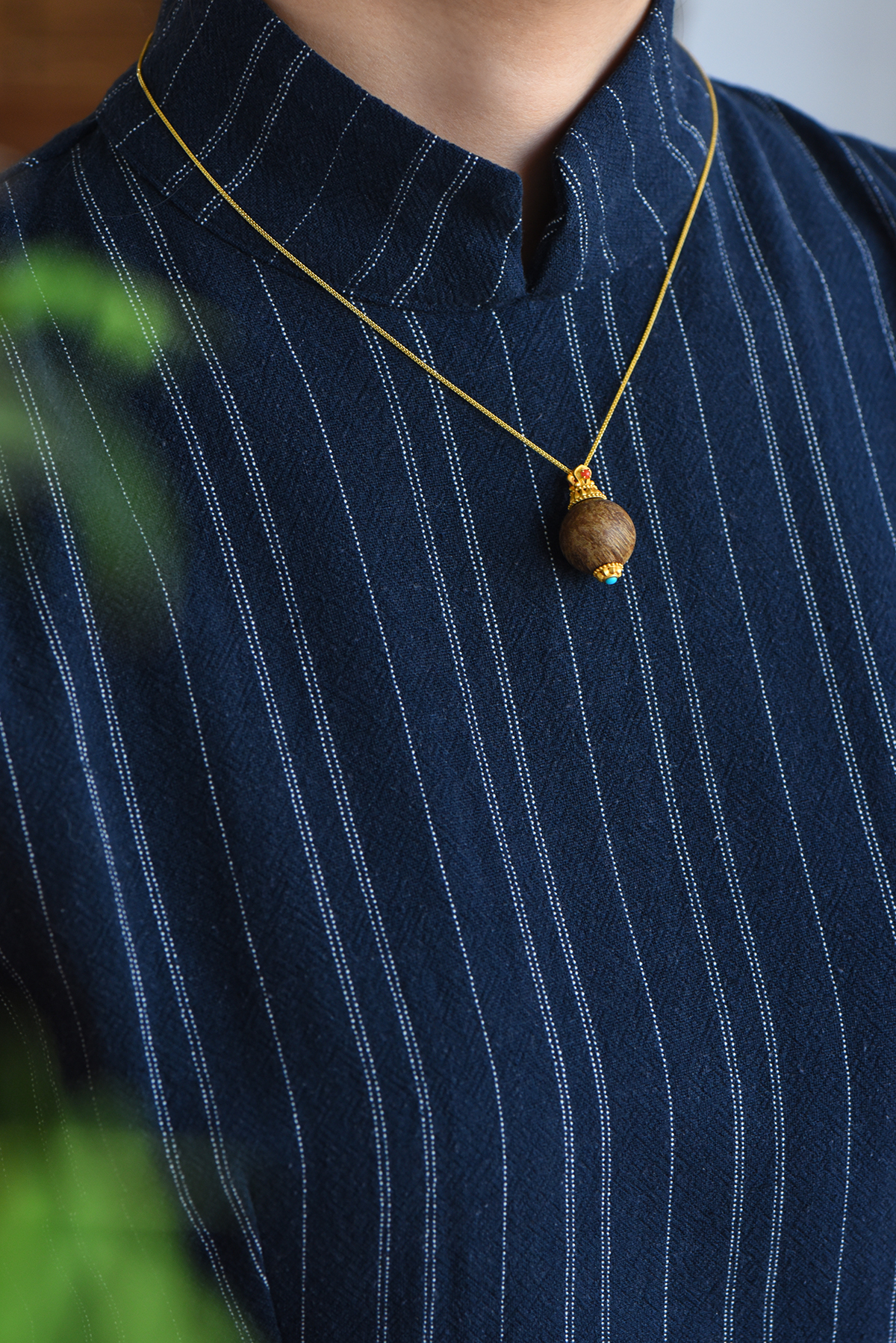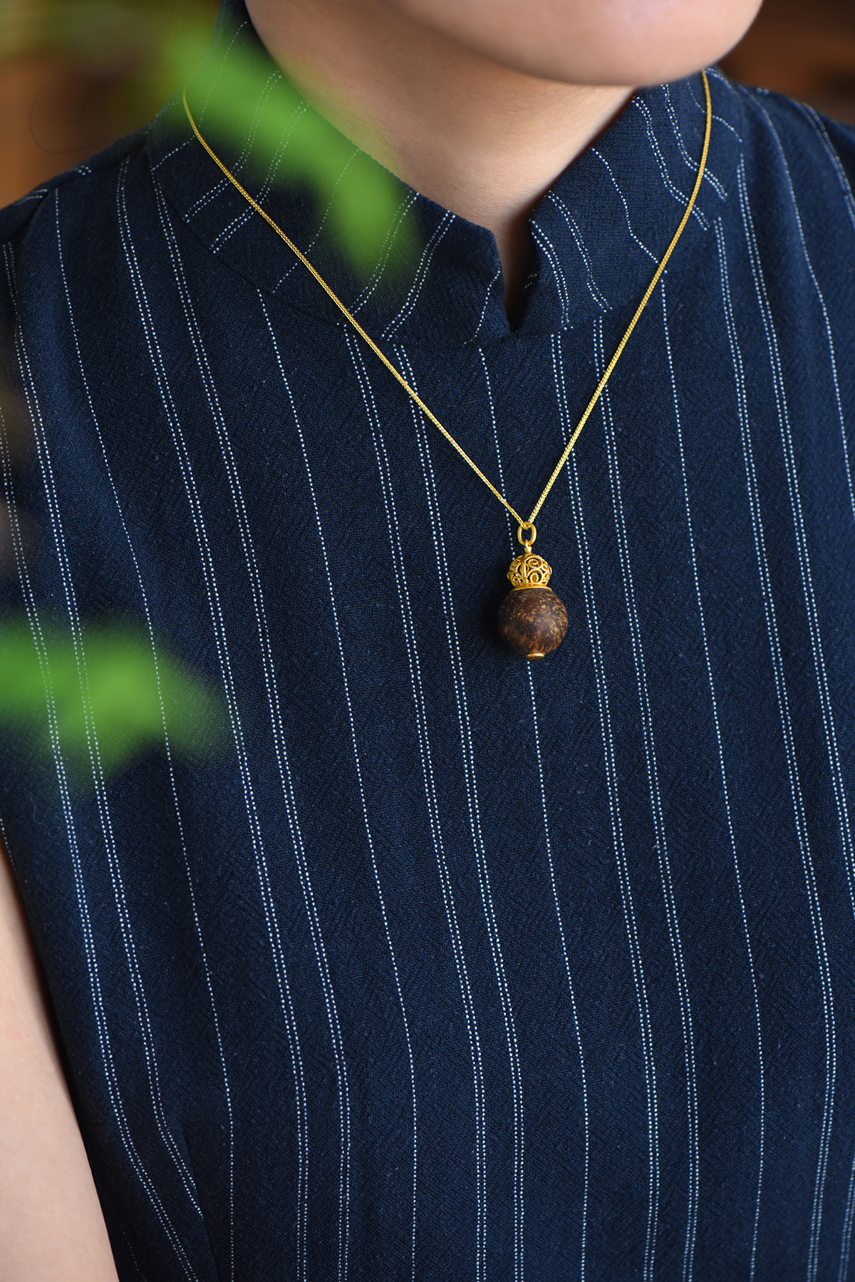 惠安沉香的油纹是藏在木色里的润,包金扣的细圈像揉了点碎光,配着裙上的绣线,是日常里的雅,也是不经意的贵。