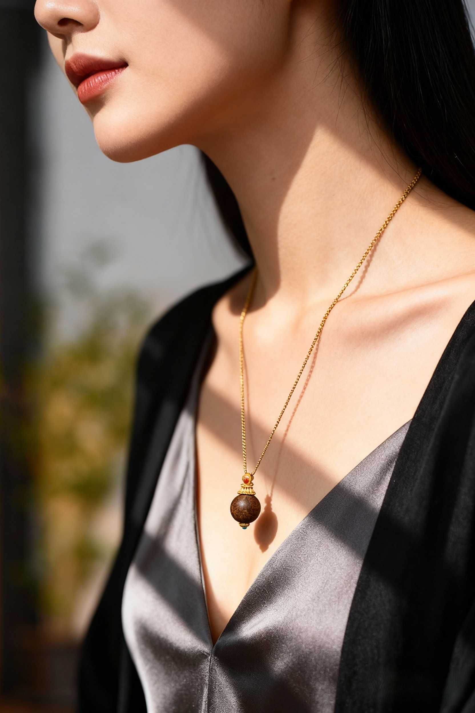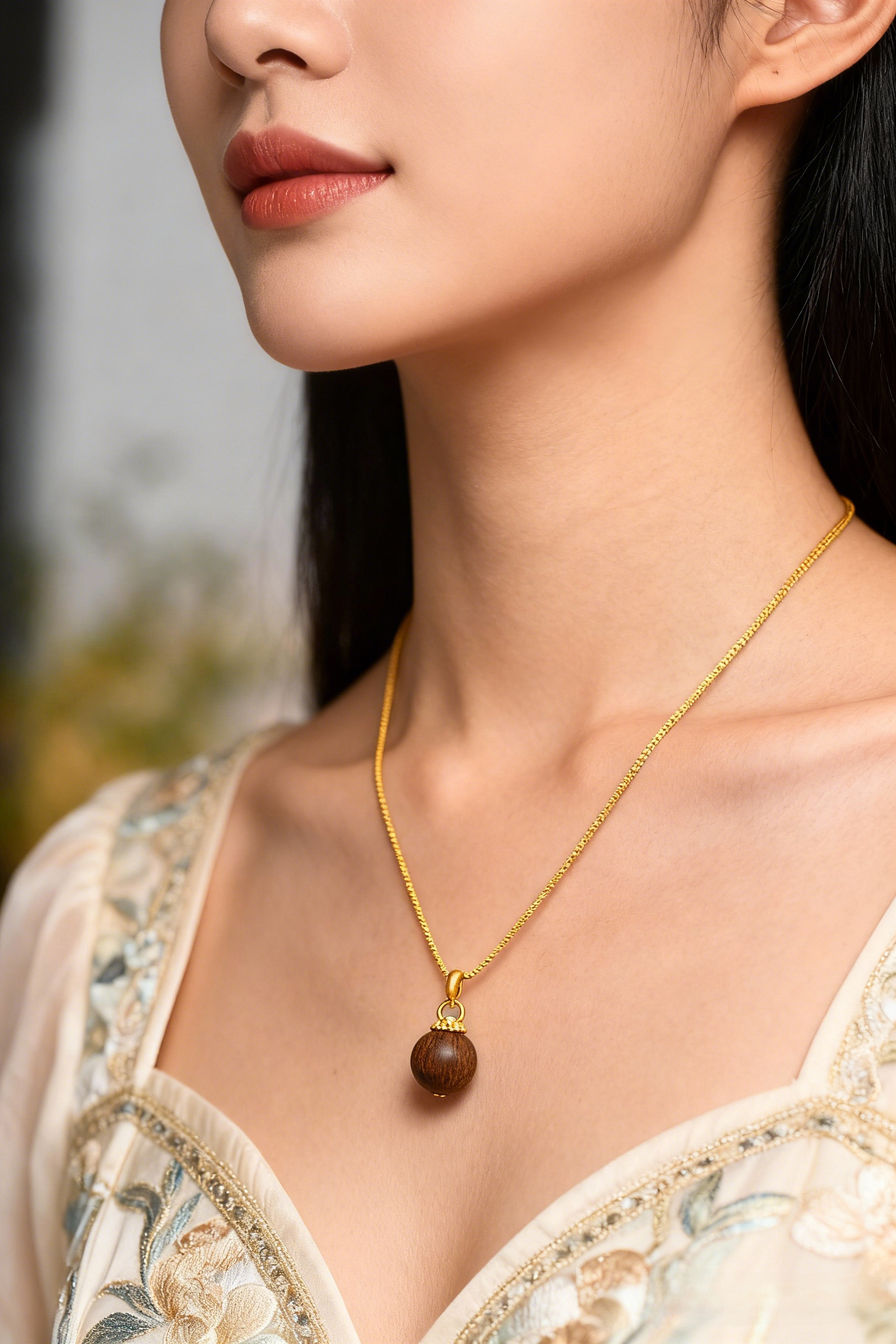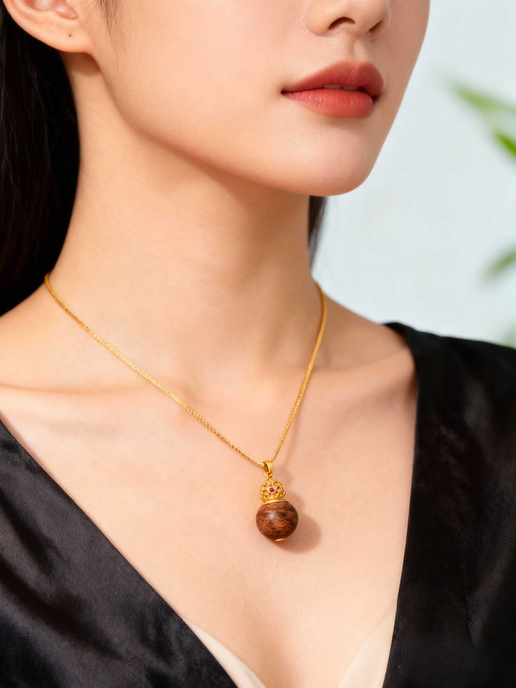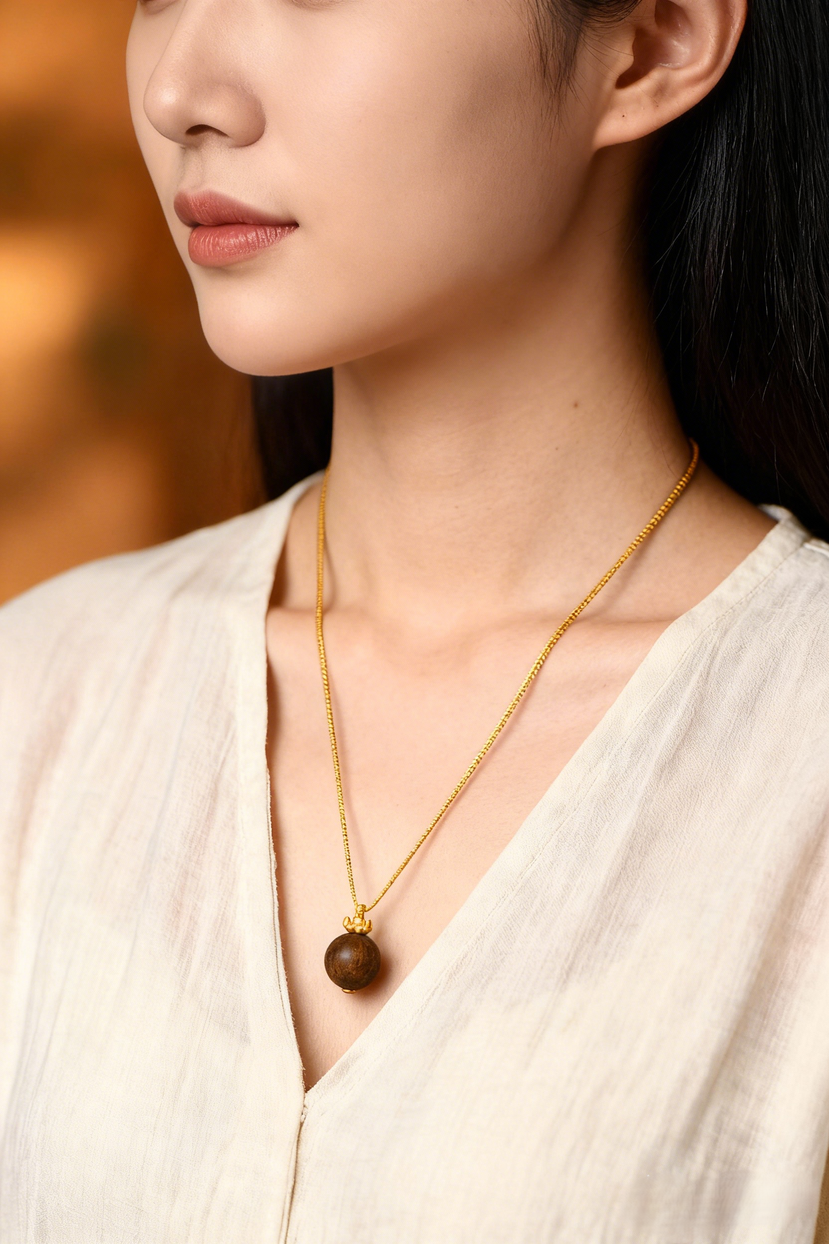惠安土沉沉香的天然圆珠,包金部分用了中式 “缠枝纹镂空”,既保留东方韵味,又用轻便的圆珠形态适配日常佩戴,把 “文玩级沉香” 做成了 “能融入生活的饰品”。