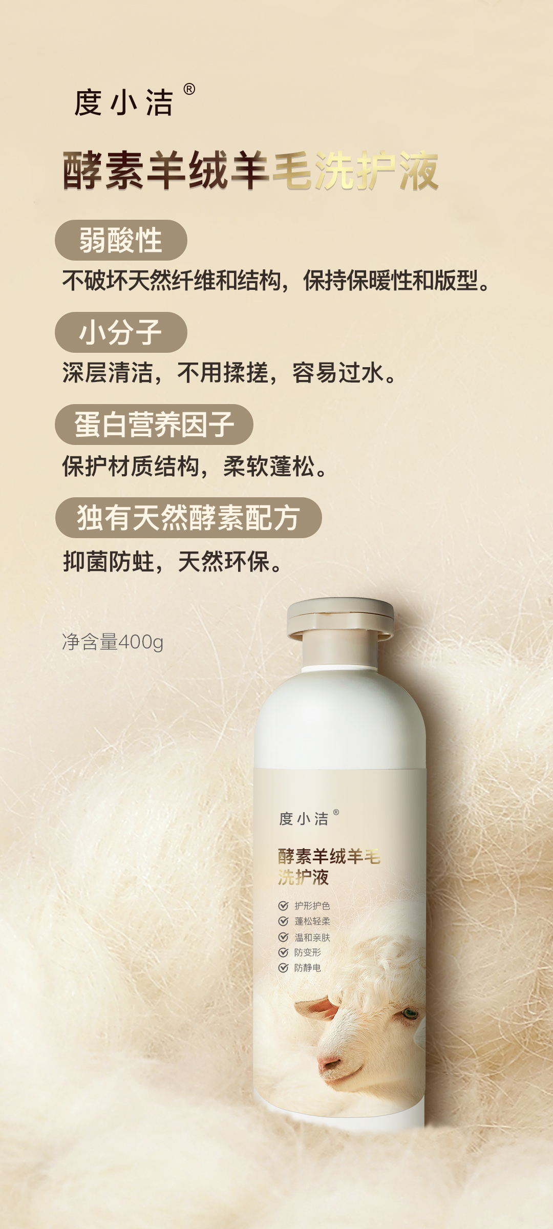 【十度良品】酵素 羊绒羊毛洗护液 400g/瓶