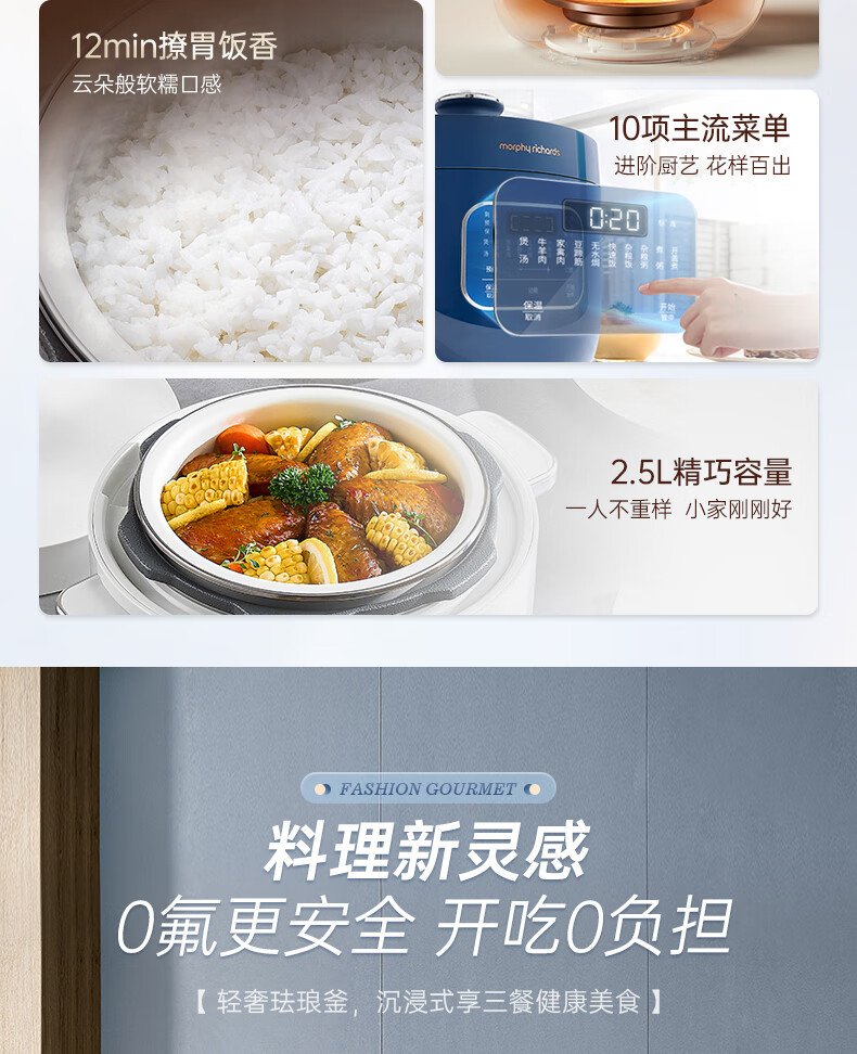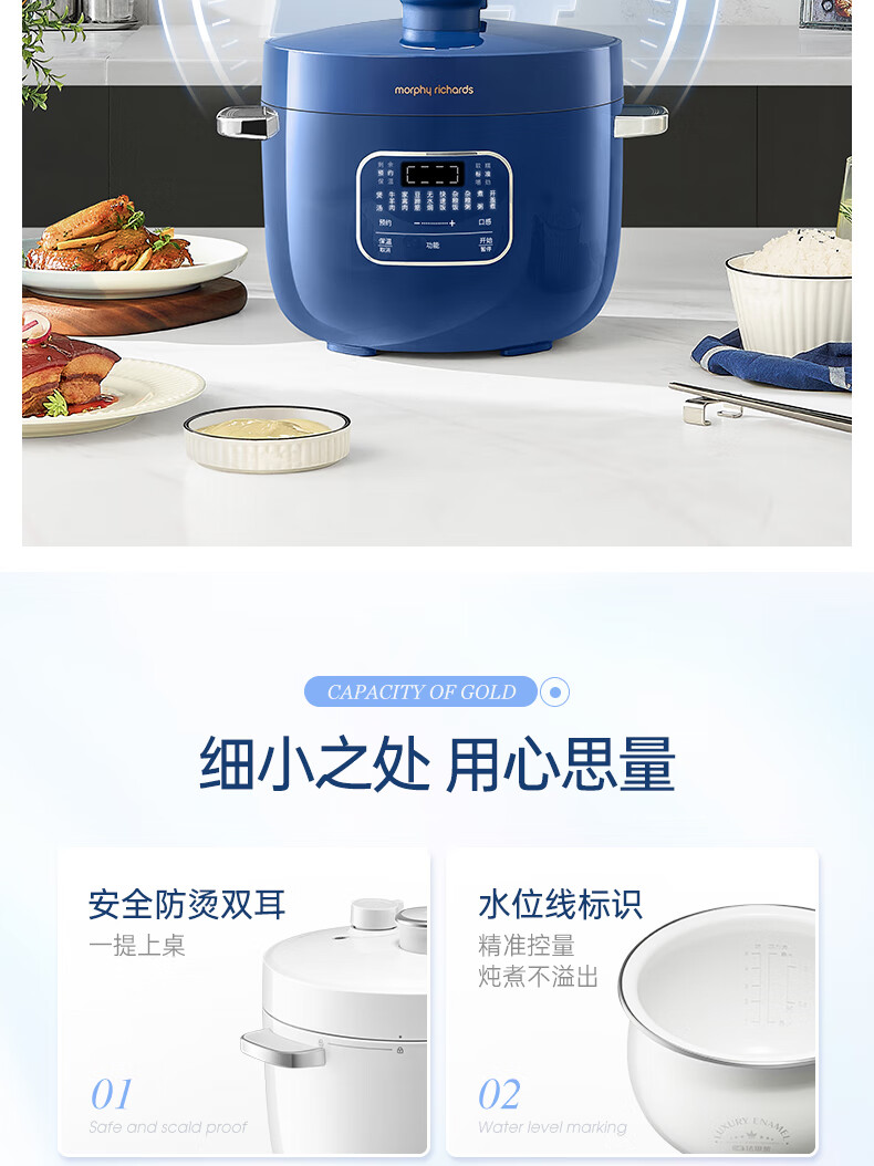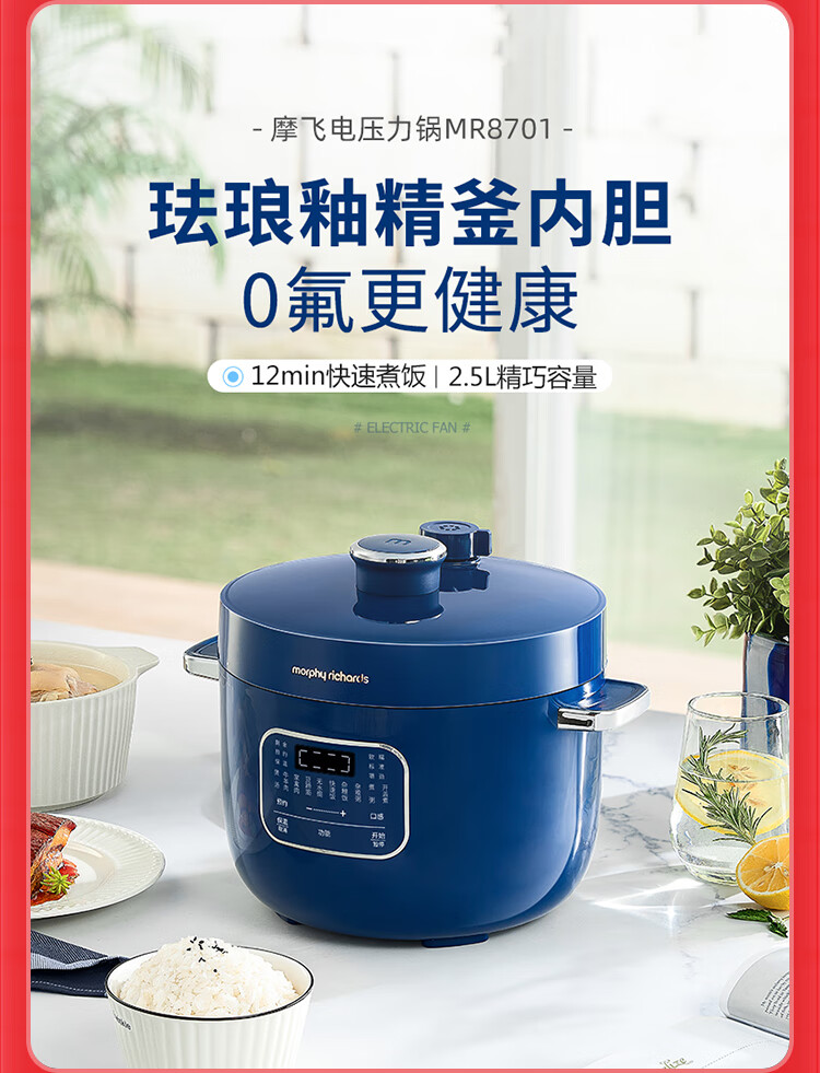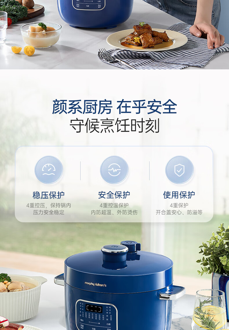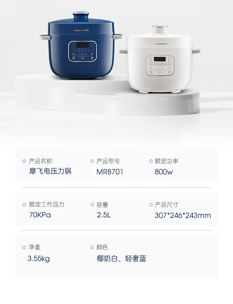 Morphy Richards摩飞电压力锅 MR8701 白色/蓝色 2.5L