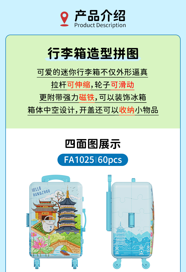 60片 行李箱拼图 FA1025 杭州,美如画!
