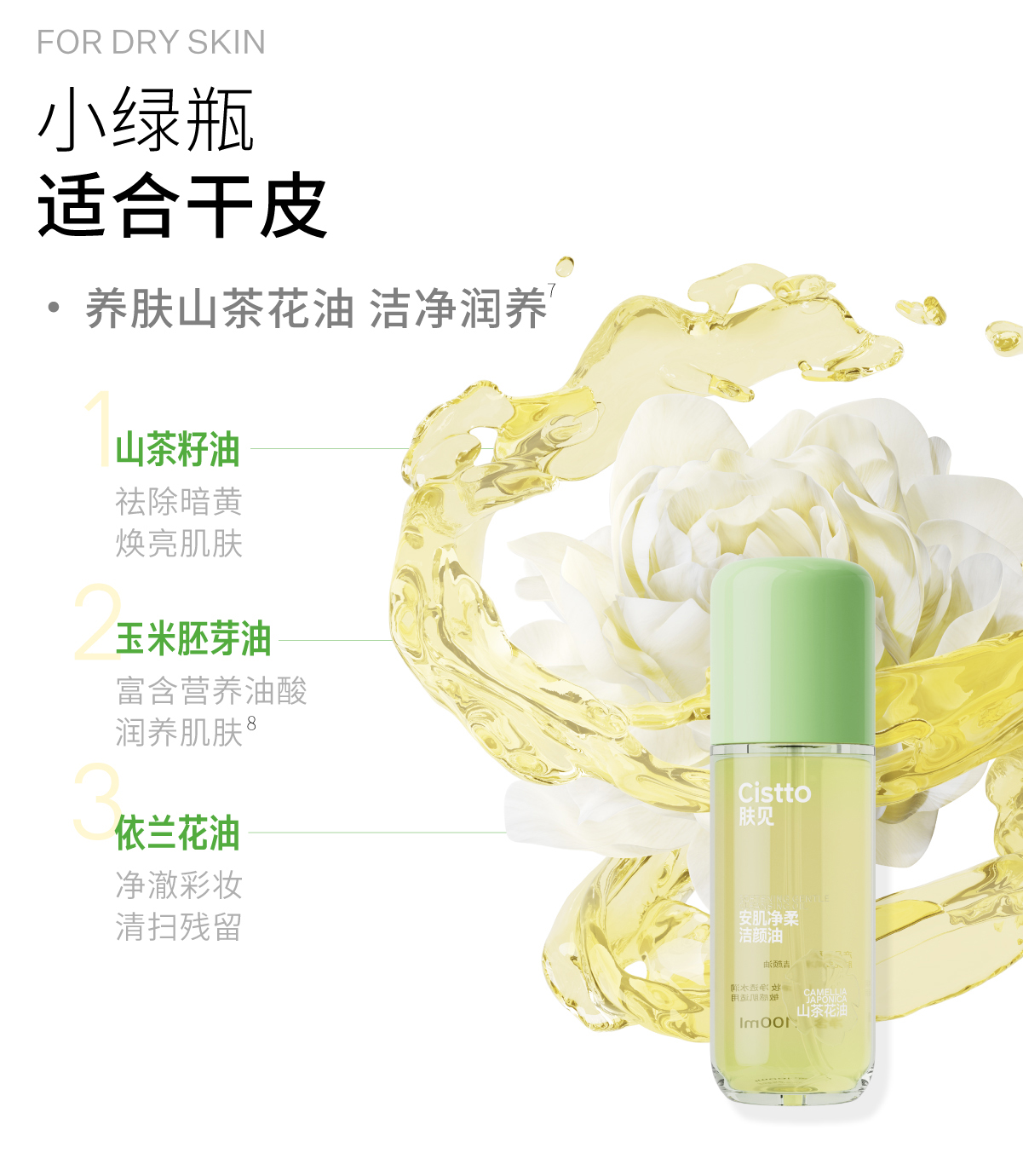 【会员日】肤见大瓶卸妆油眼唇面部卸妆三合一 100ml/瓶,经典粉油、绿油,全新白茶卸妆油