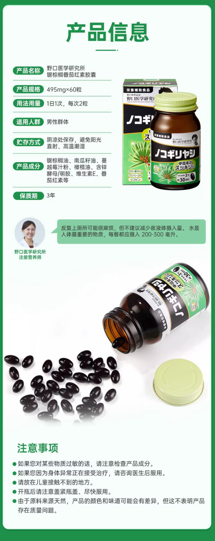 【日本直邮】Noguchi 野口医学研究所 锯棕榈番茄红素前列腺胶囊