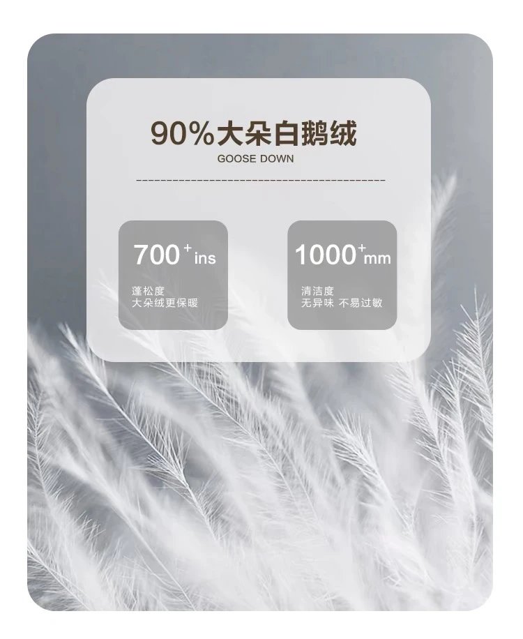大朵700蓬白鹅绒,绒子含量90 新国标,