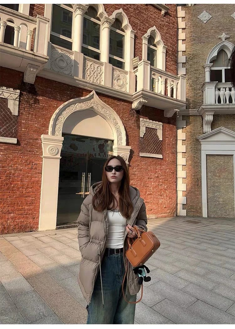 包住屁股,上半身和五脏六腑、肠胃、盆腔就全部包裹住了,所以这个长度又暖和又显瘦!!!