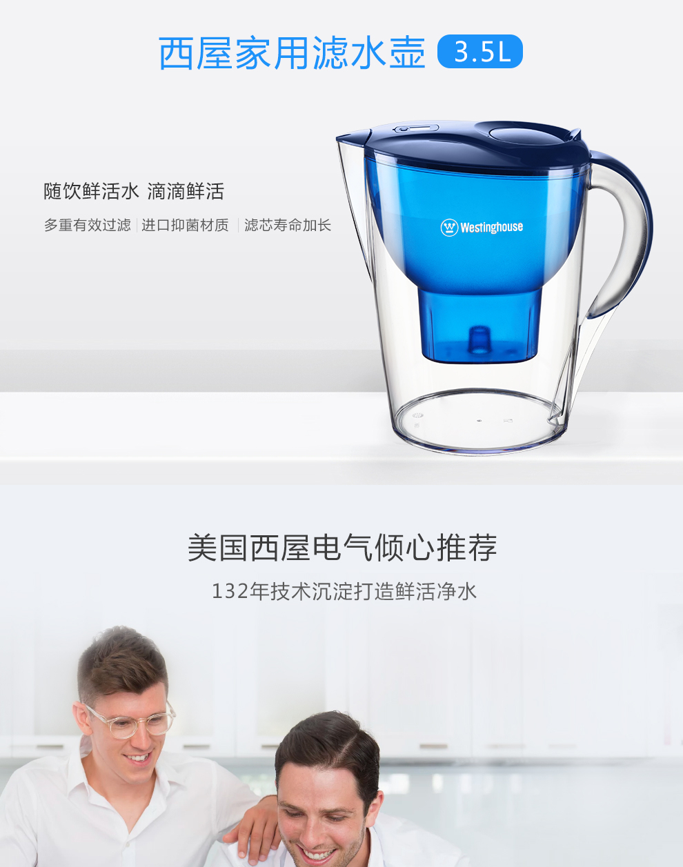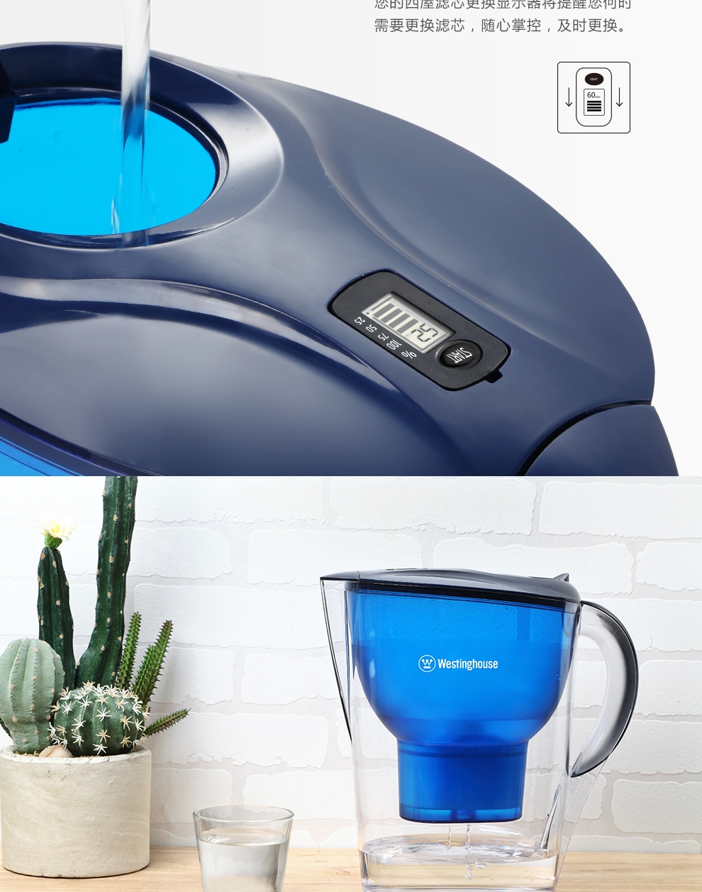 美国西屋(Westinghouse) 过滤净水器家用滤水壶净水壶3.5L宝蓝色 (1个滤芯装)