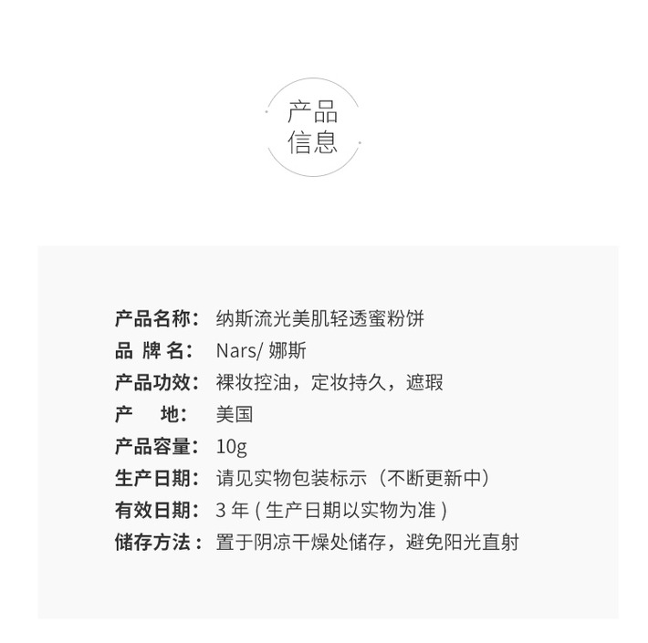 【年货价】Nars 纳斯 流光美肌轻透蜜粉饼大白饼 10g