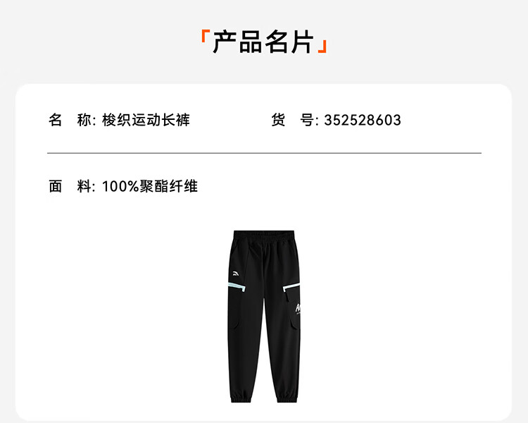 安踏儿童梭织运动长裤男大童少年顽家梭织运动长裤352528603