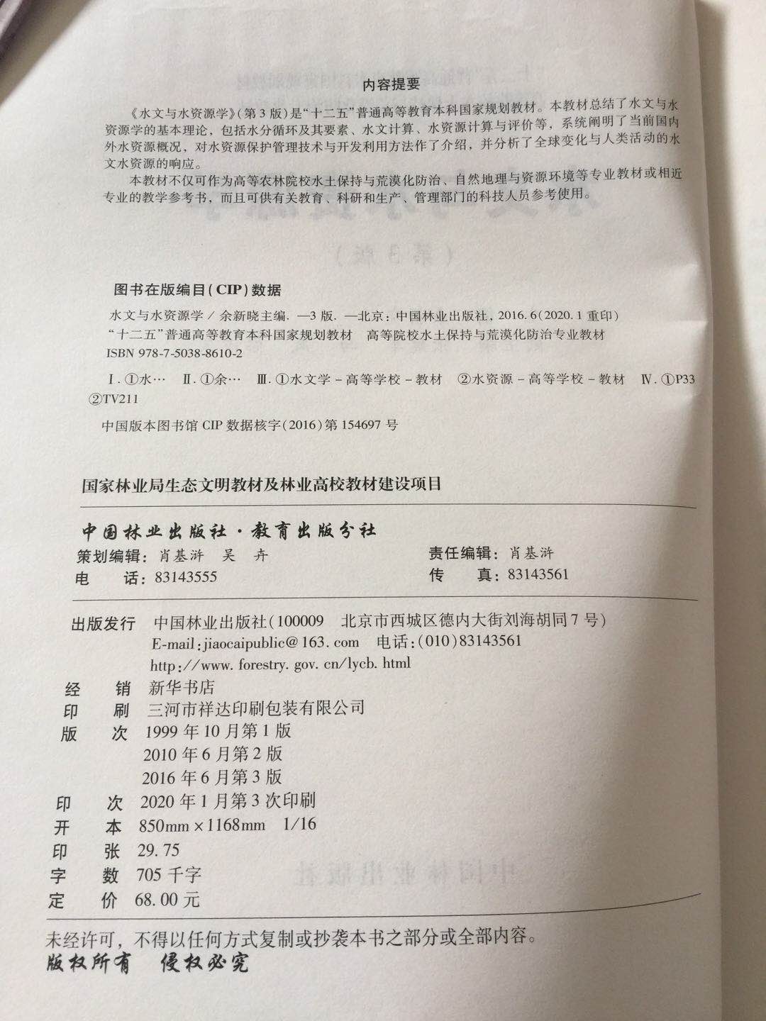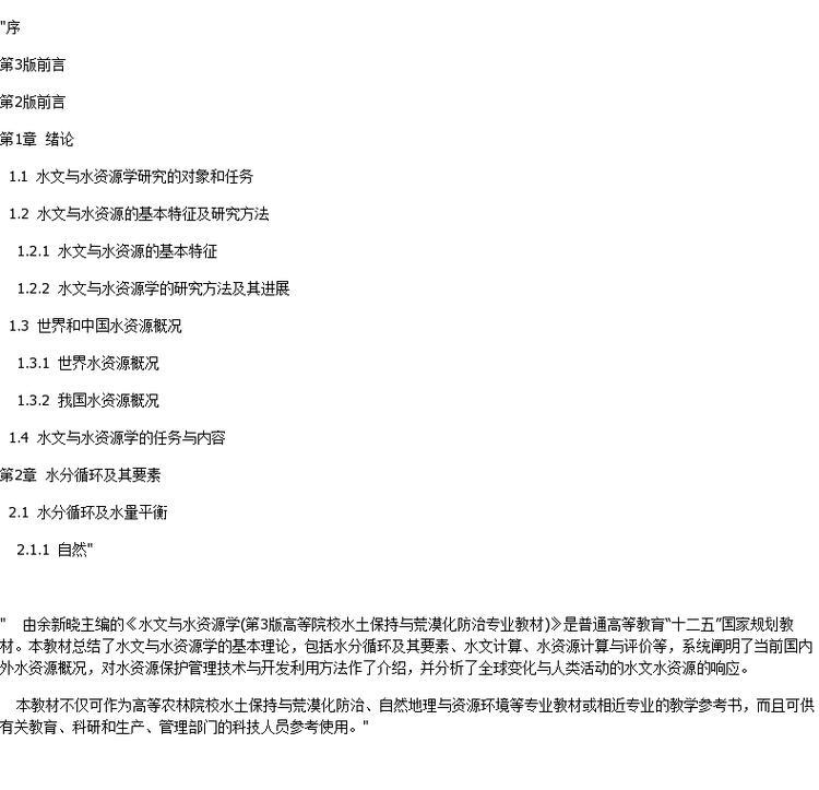 水文与水资源学 第3版 8610 普通高等教育十三五规划教材 高等院校水土保持与荒漠化防治专业教材 中国林业出版社正版畅销书
