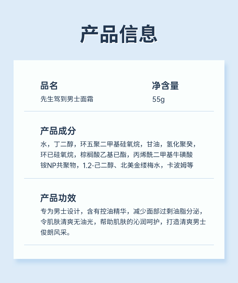 先生驾到男士面霜补水清爽控油