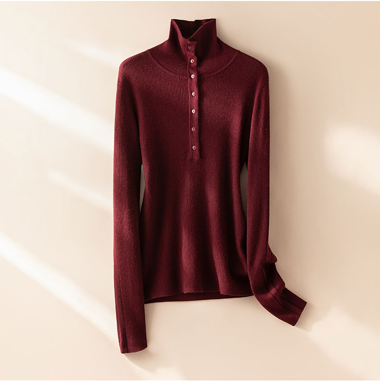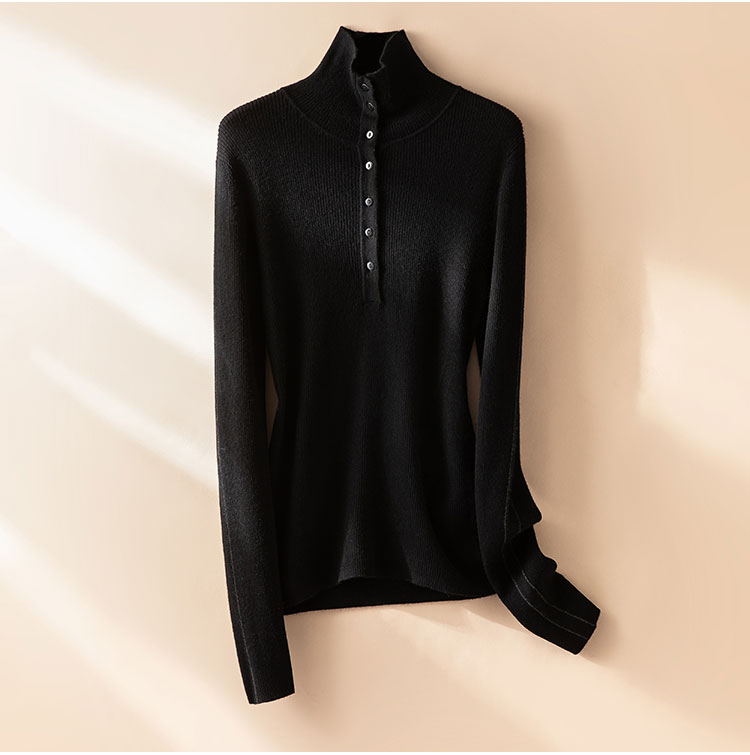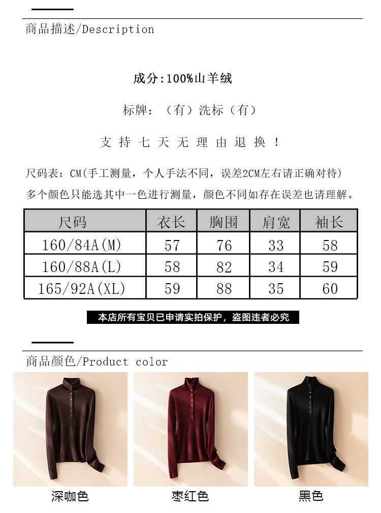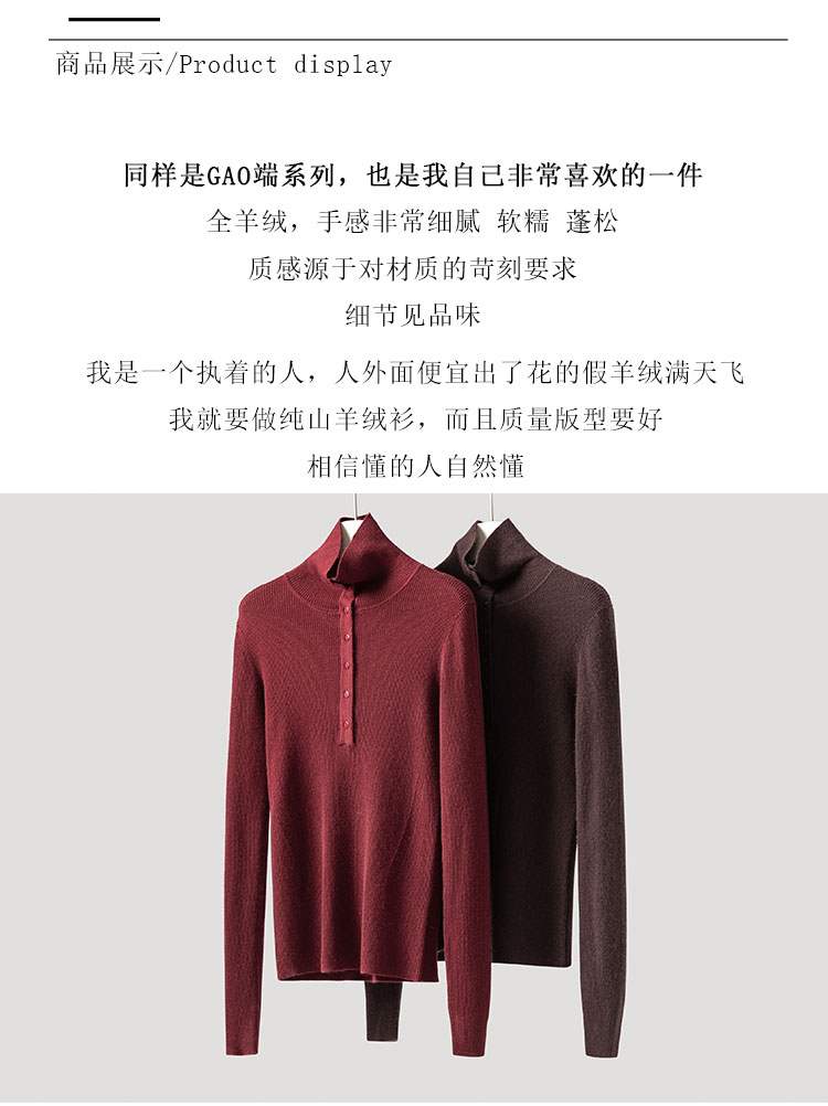倪Ni同款~半开襟100%纯山羊绒衫女精纺打底气质显瘦毛衣CYR250456