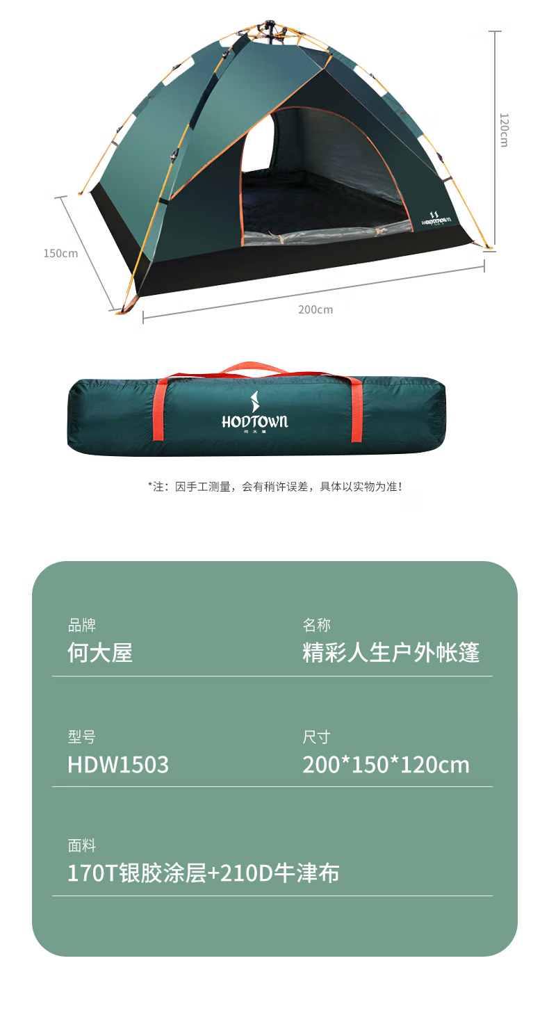 何大屋(Hodtown) 全自动户外帐篷 精彩人生户外帐篷HDW1503