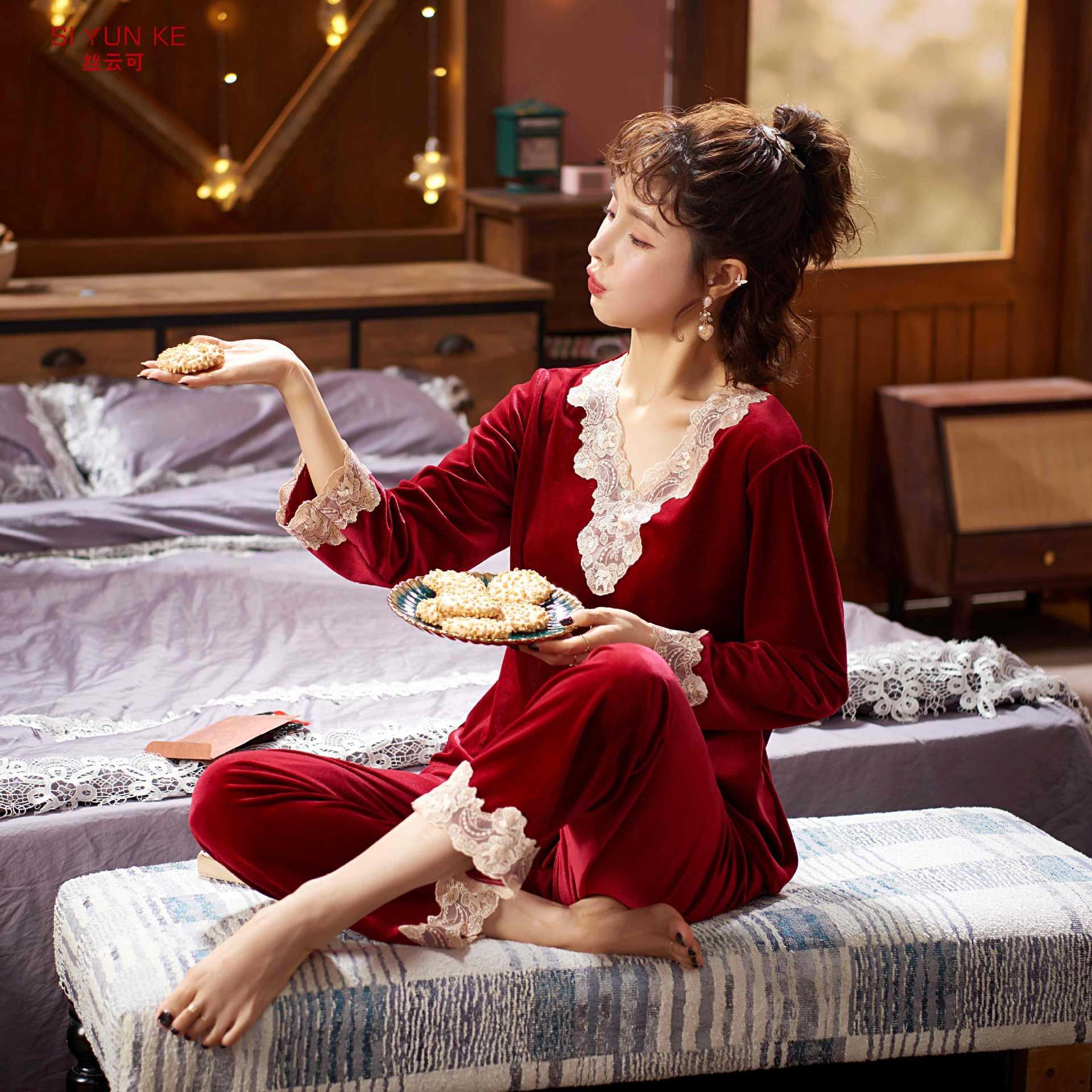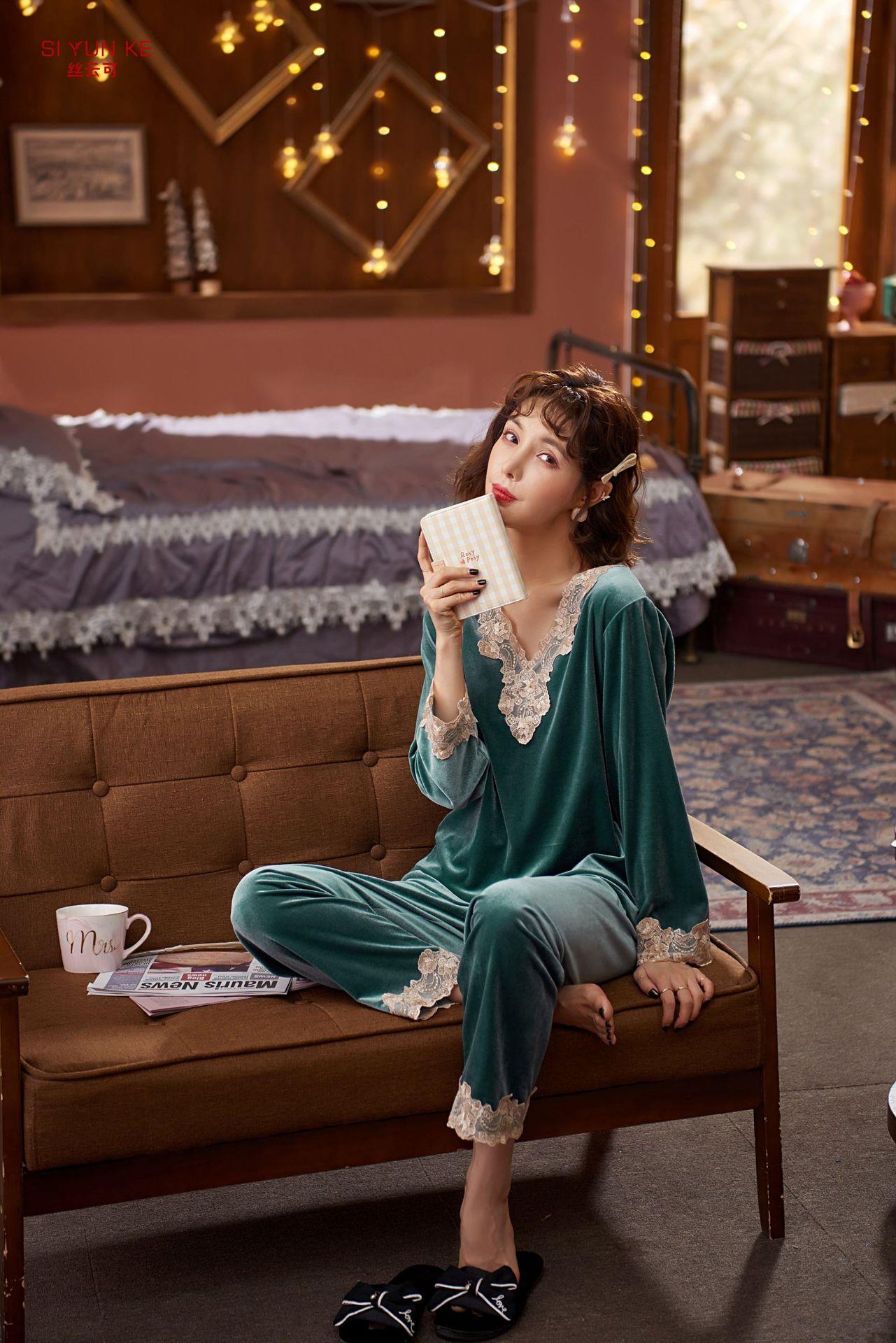 高定年代【金丝绒情侣家居服】男女两件套加厚秋冬加绒简约轻奢高级感睡衣