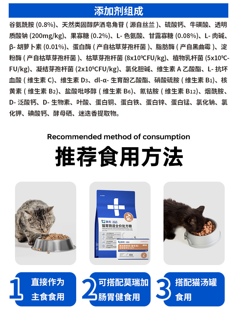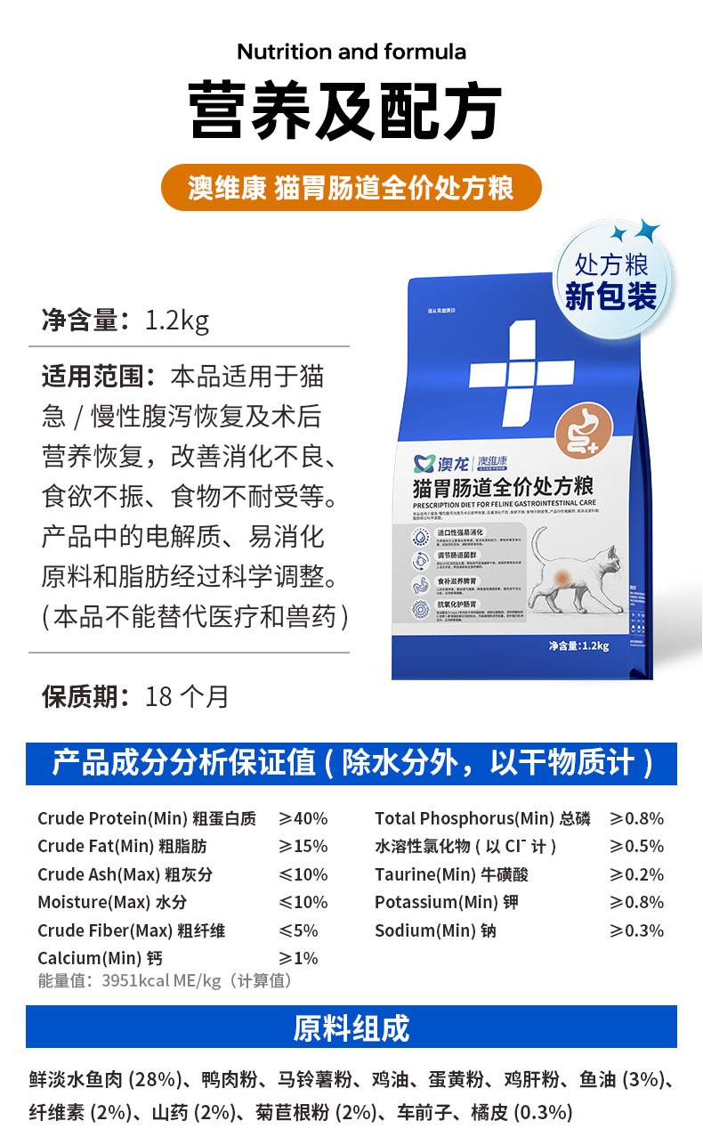 澳龙粮澳维康猫胃肠道全价处方粮1.2kg赠50g试吃