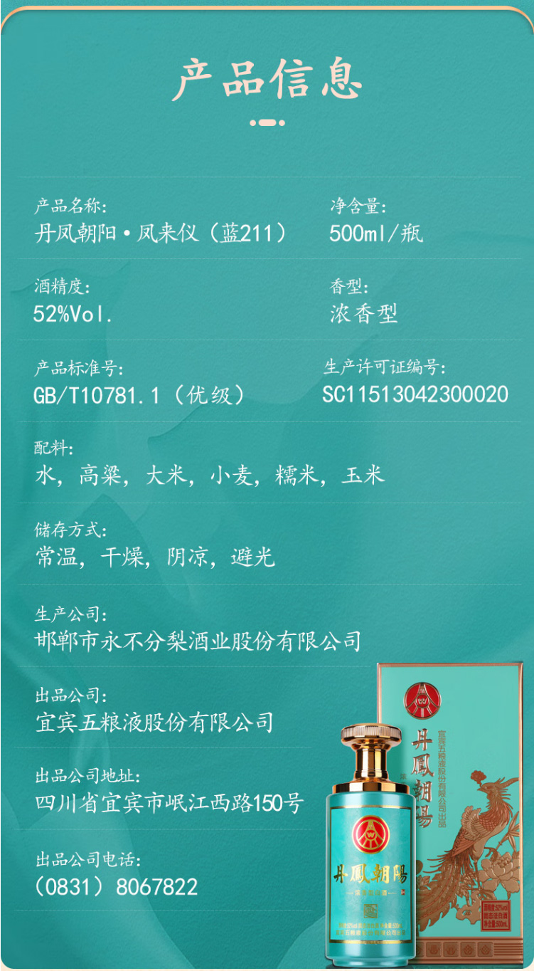 【2022年】五粮液股份出品丹凤朝阳 凤来仪(蓝) 浓香型 52度 500ml x6 整箱