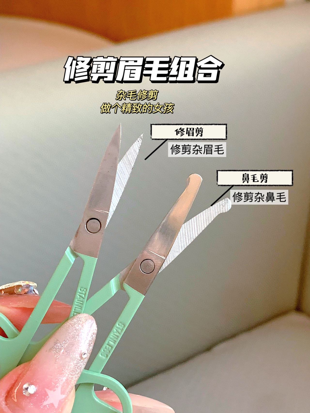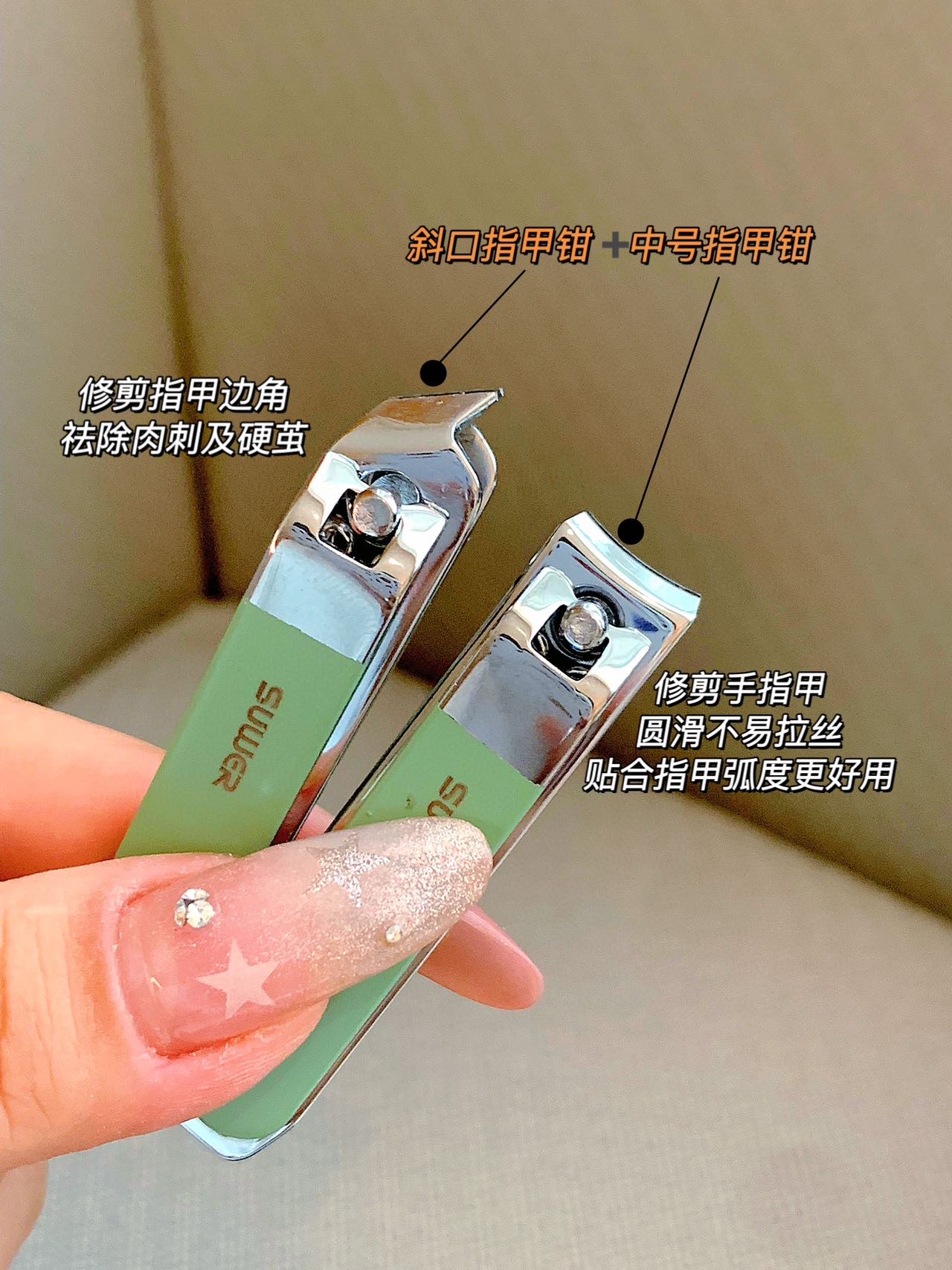 2️⃣斜口指甲钳,修剪指甲边角,易剪死皮毛刺。