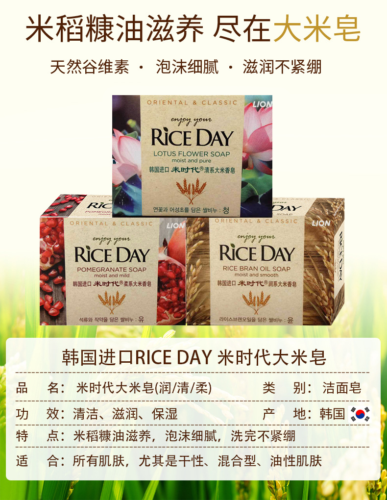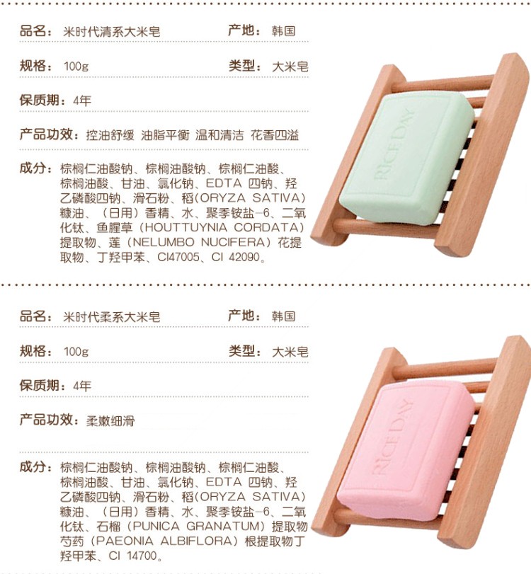 (2块装)韩国进口米时代(Rice Day)香水泡沫细腻洗脸沐浴香皂沐浴皂洗脸皂大米皂 100g/块
