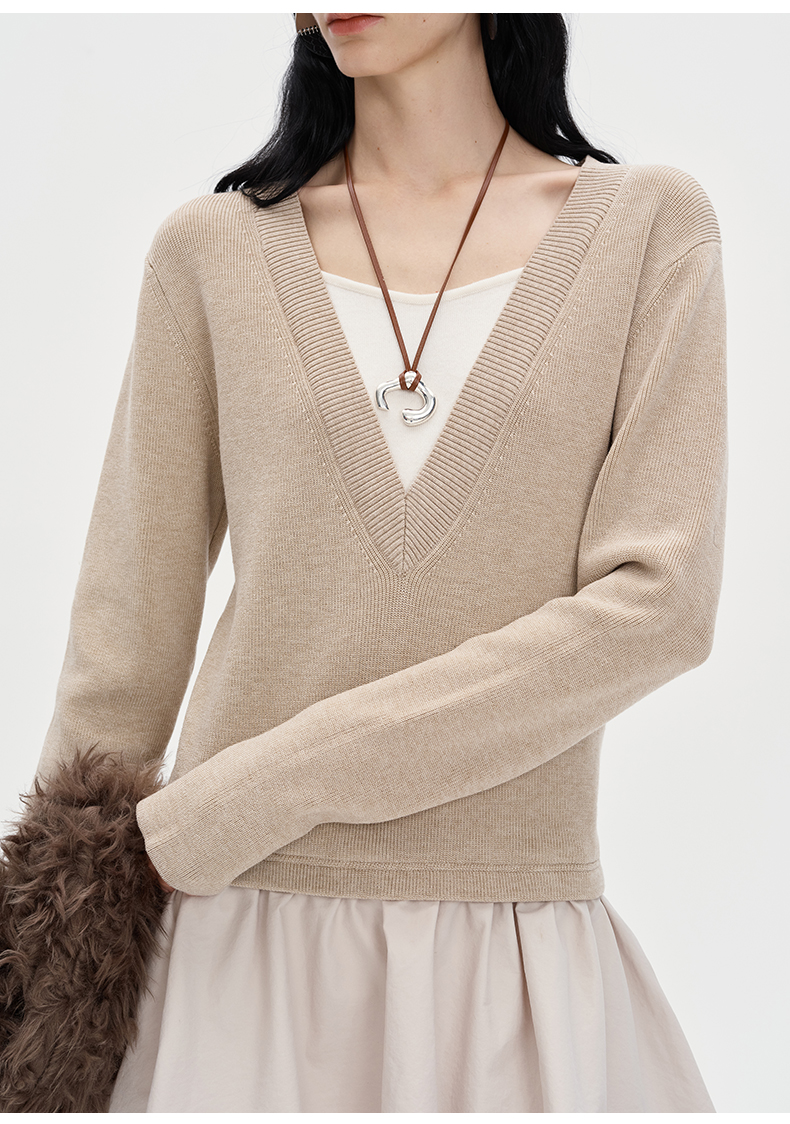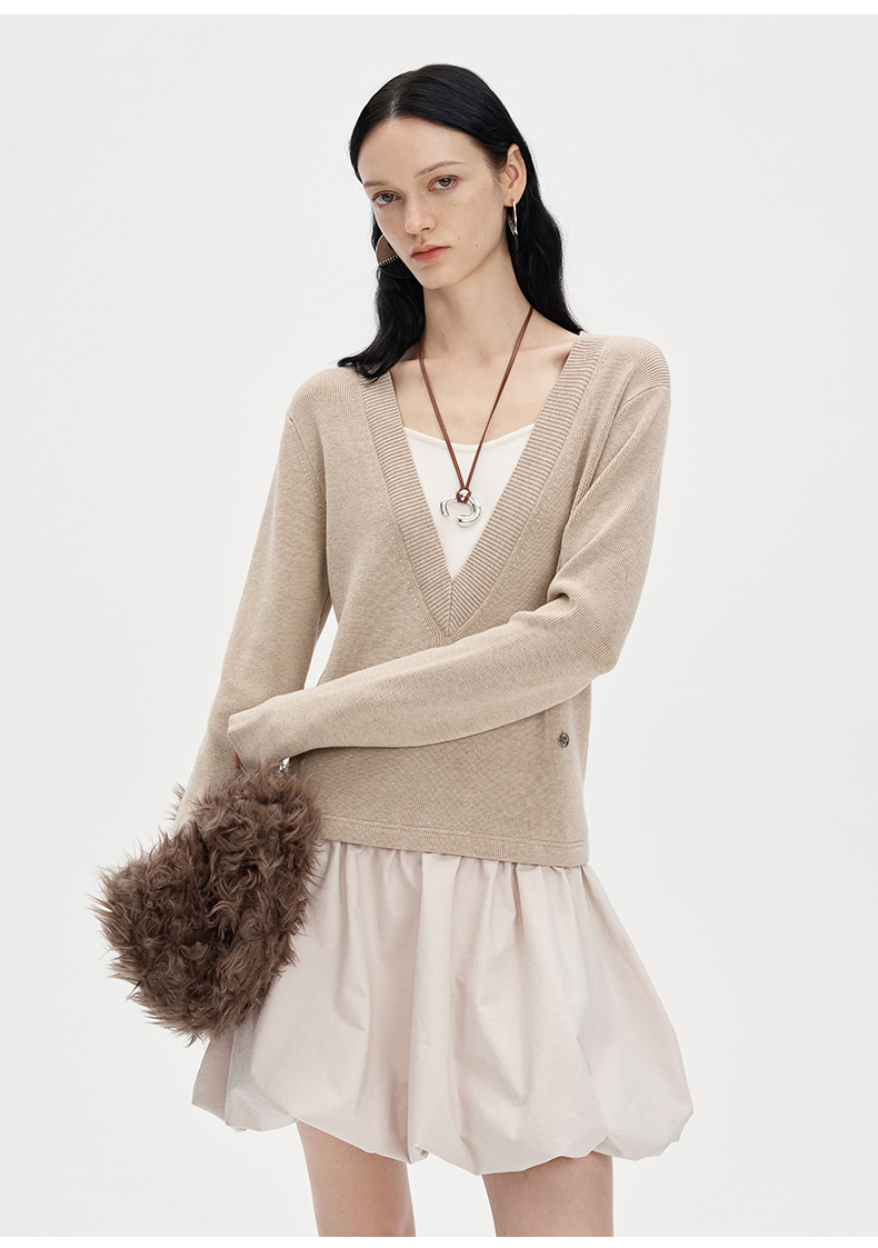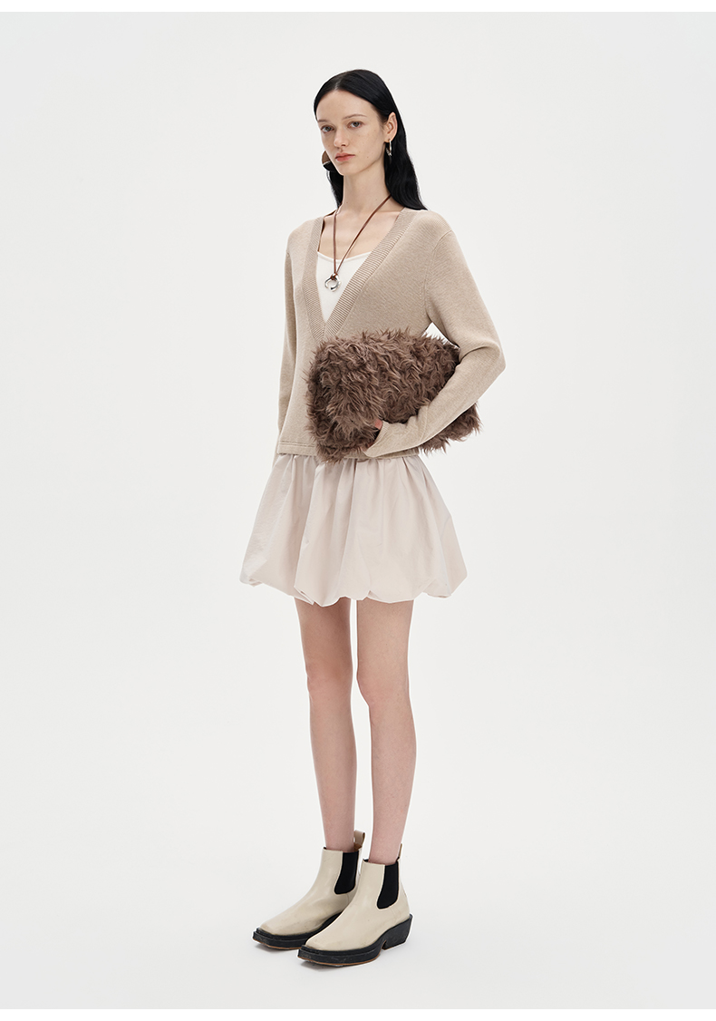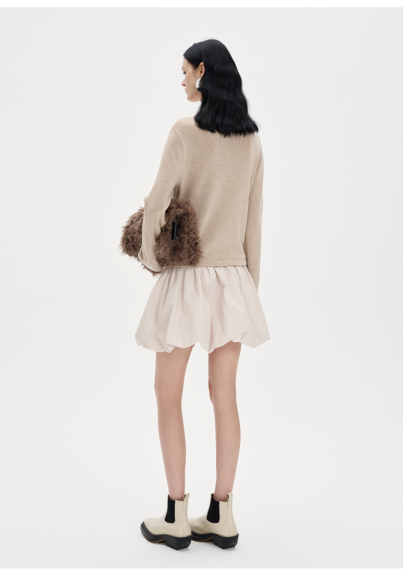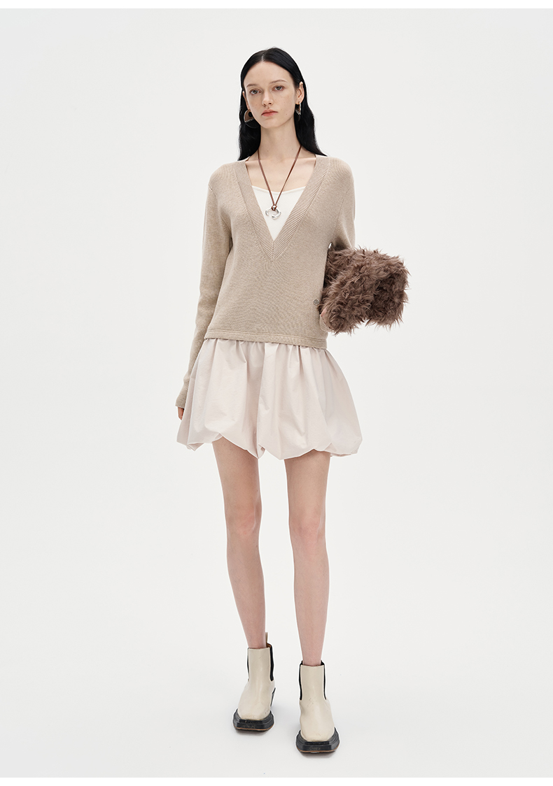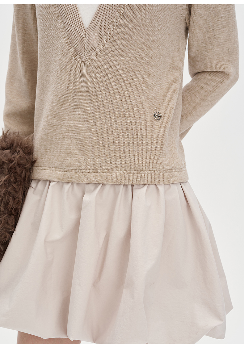 SELFWHO莱赛尔羊毛混纺假两件连衣裙女2024秋新款针织拼接花苞裙