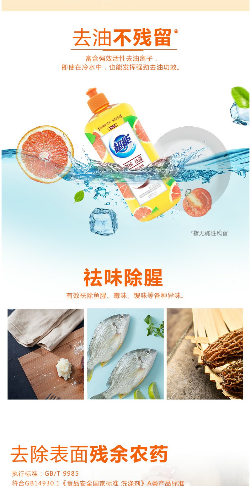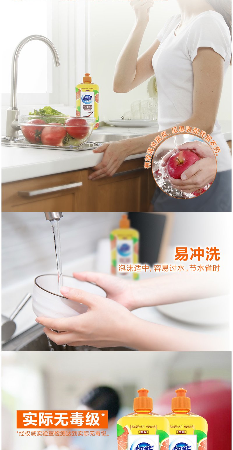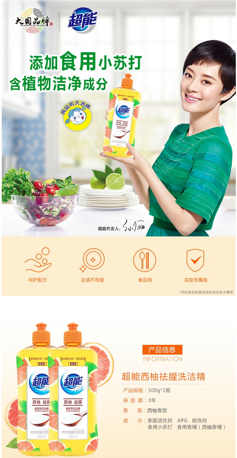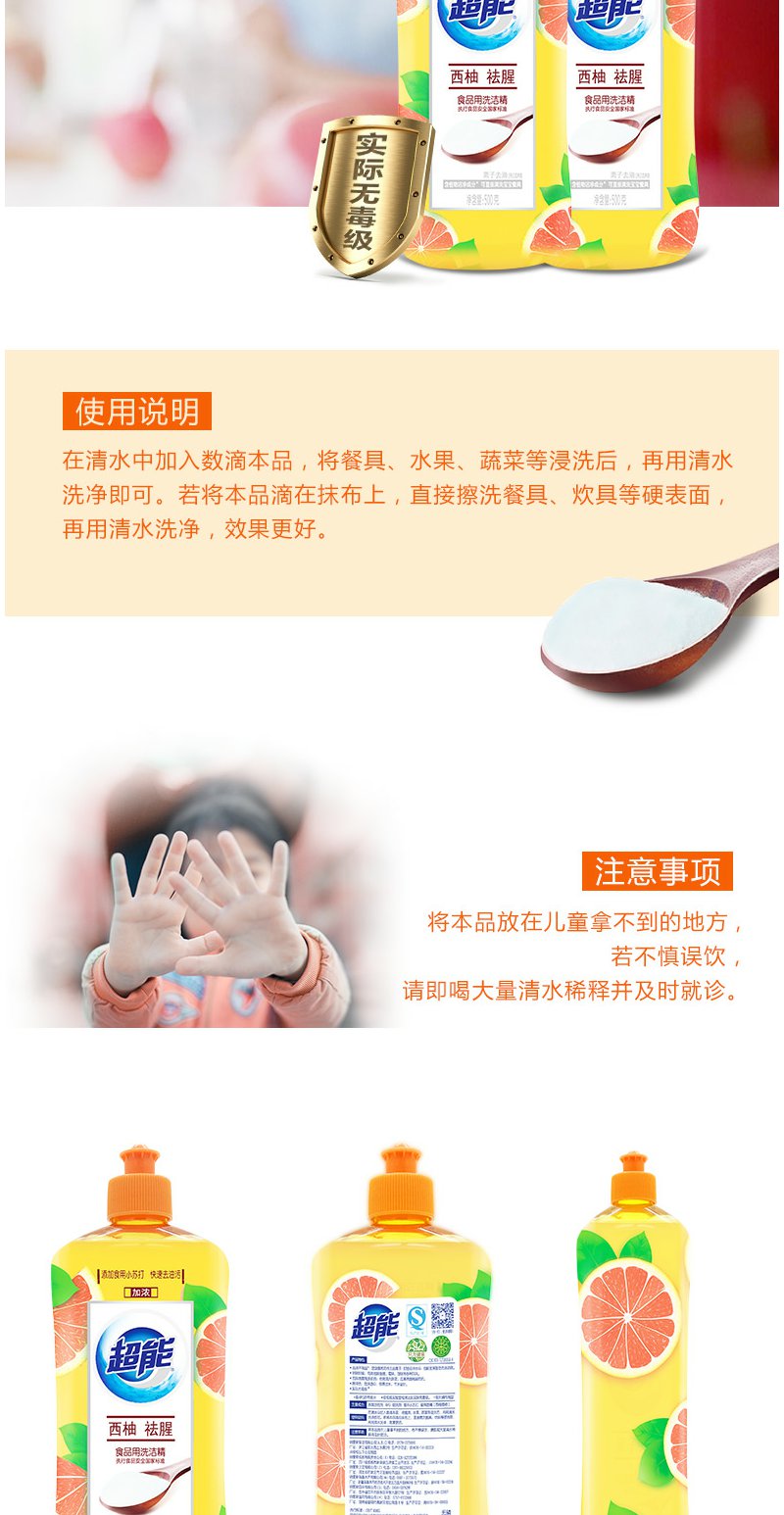 超能 离子去油洗洁精 西柚祛腥食品用 500g*2瓶