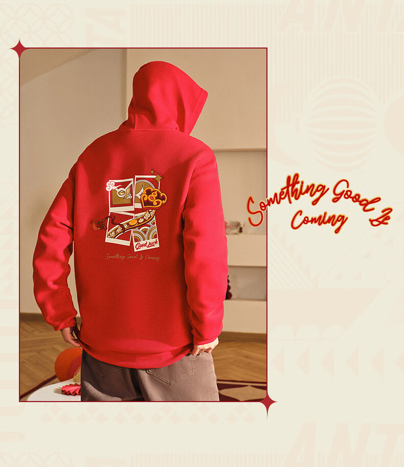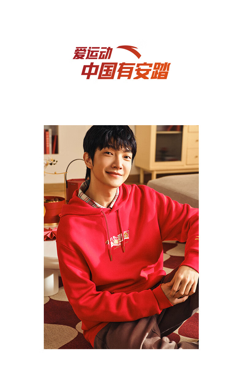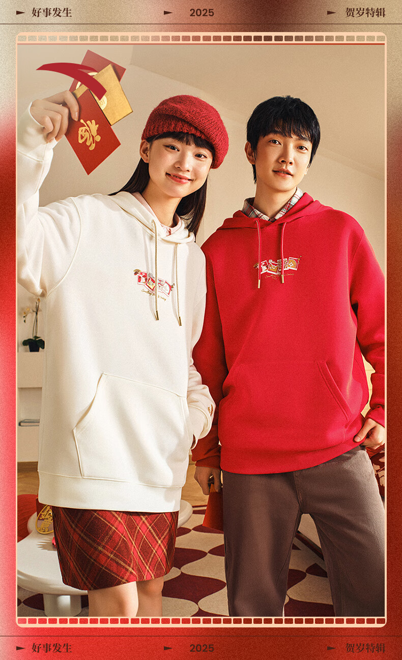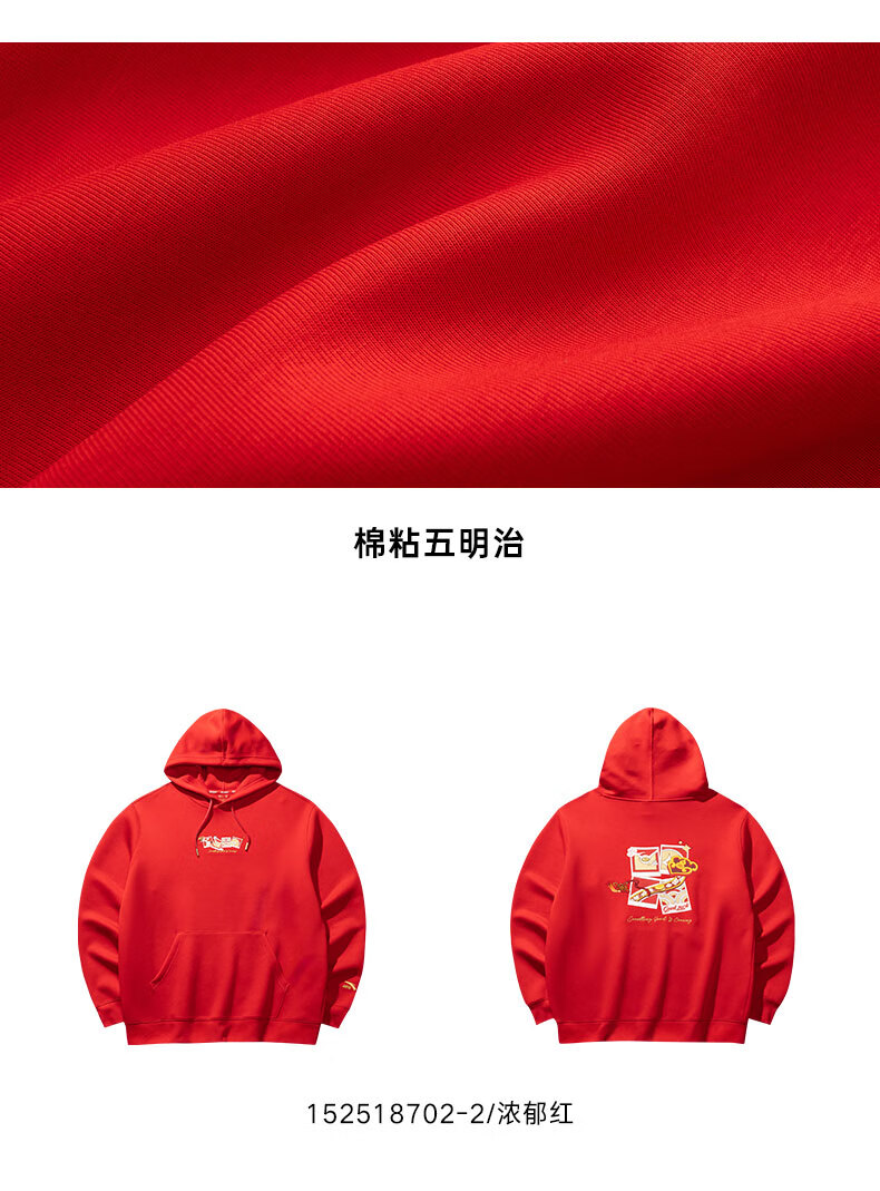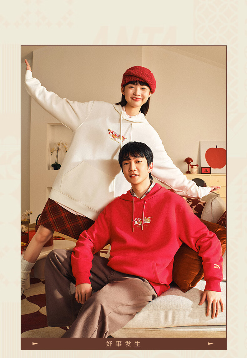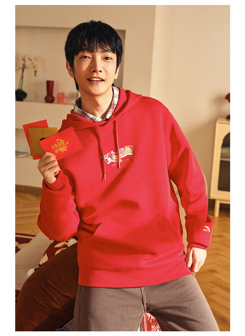 安踏(ANTA)好事发生丨新年款红色连帽卫衣男宽松保暖长袖上衣152518702