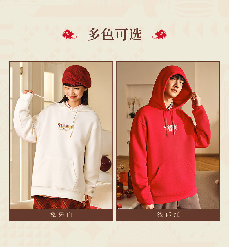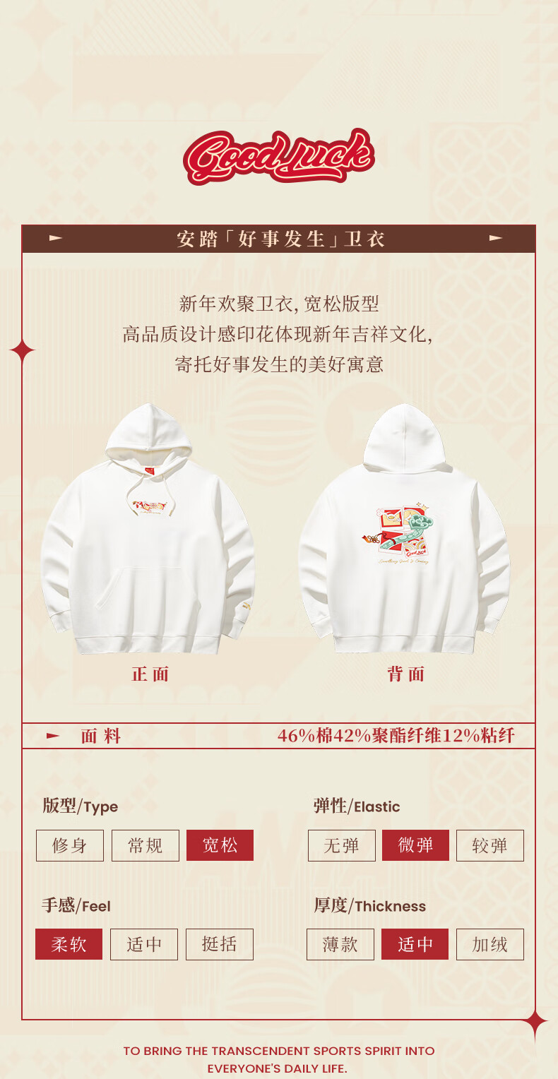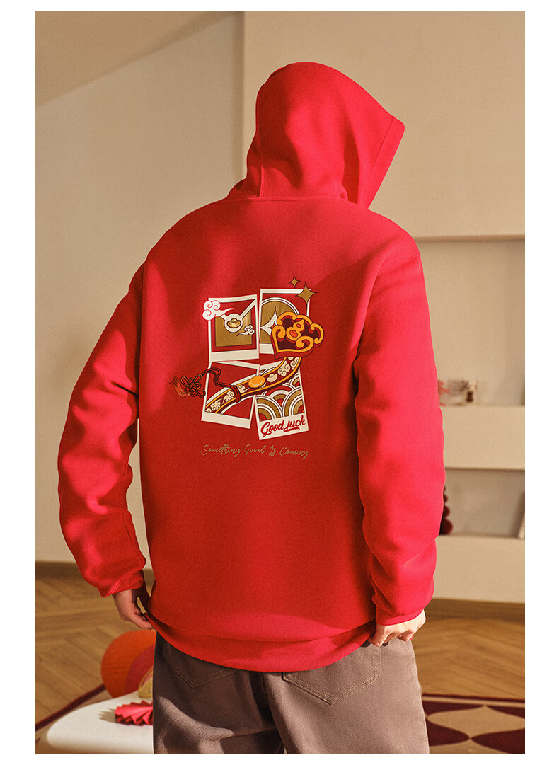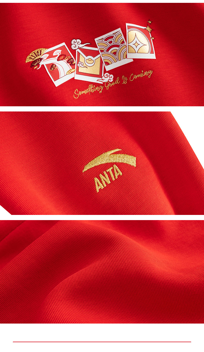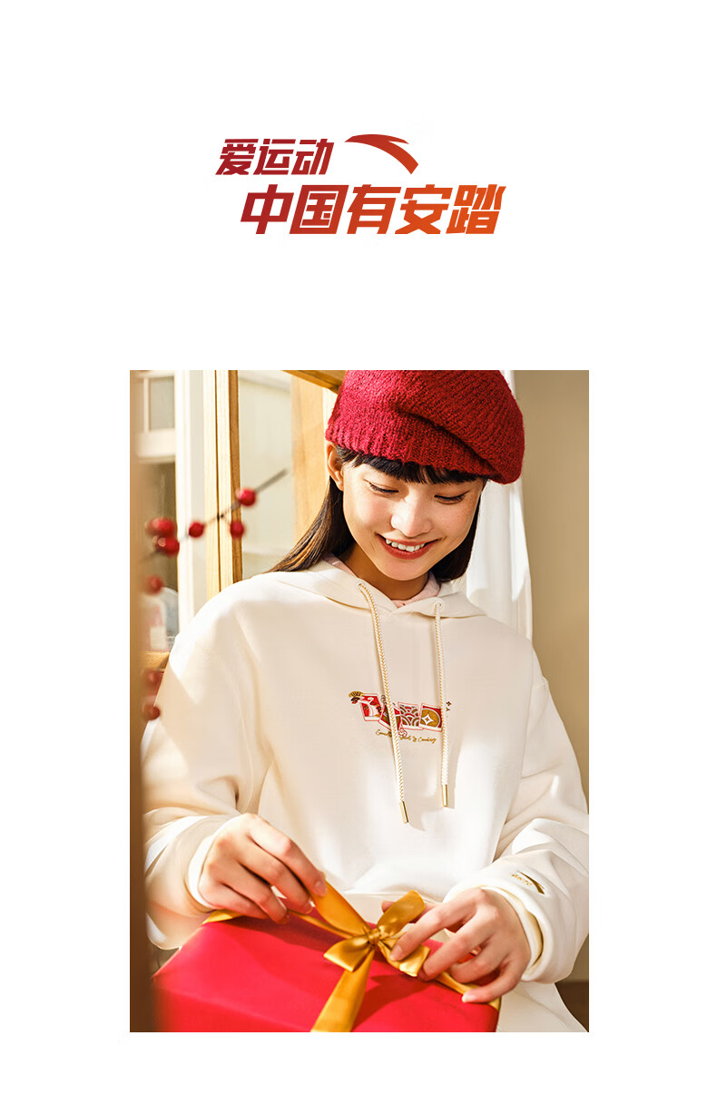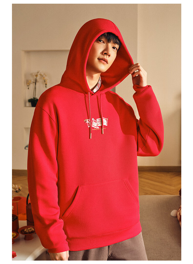 安踏(ANTA)好事发生丨新年款红色连帽卫衣男宽松保暖长袖上衣152518702