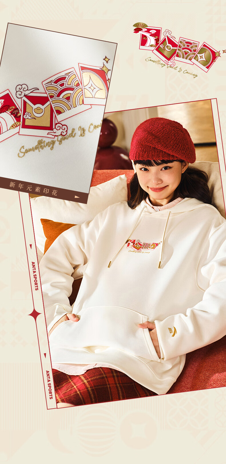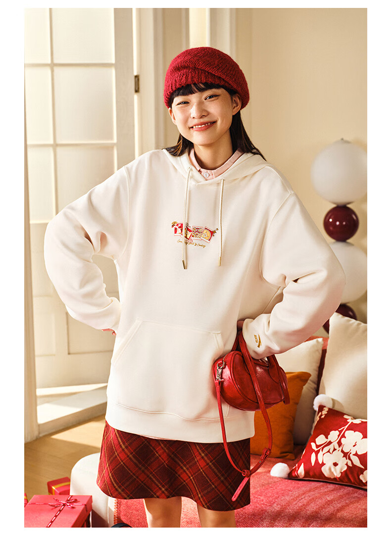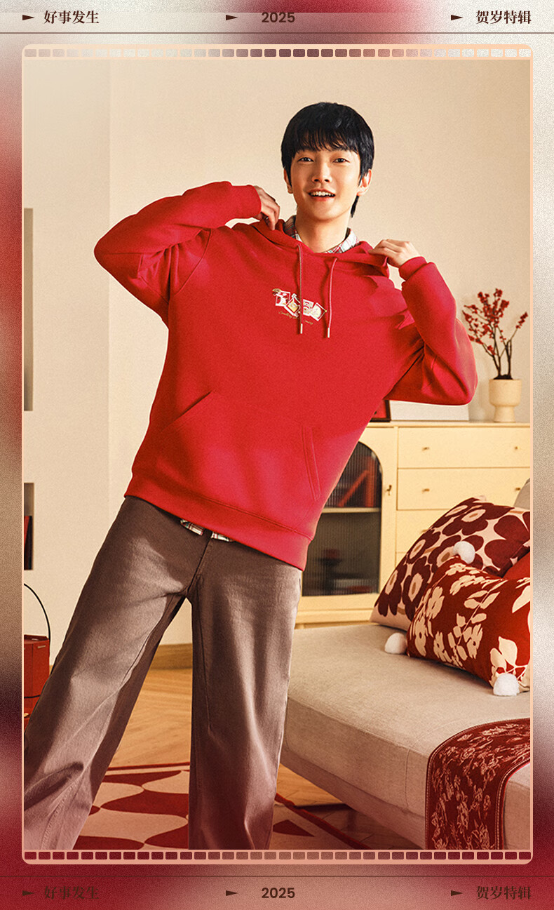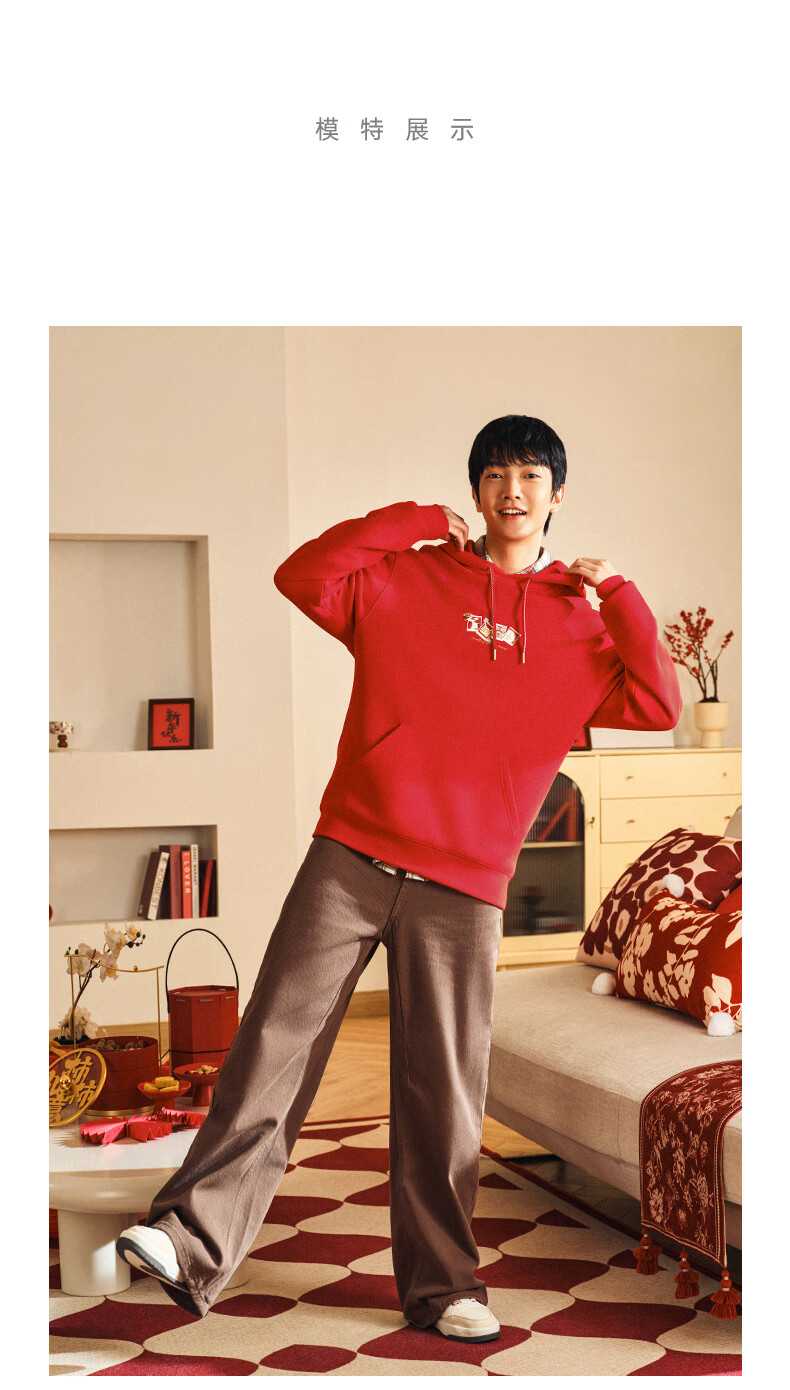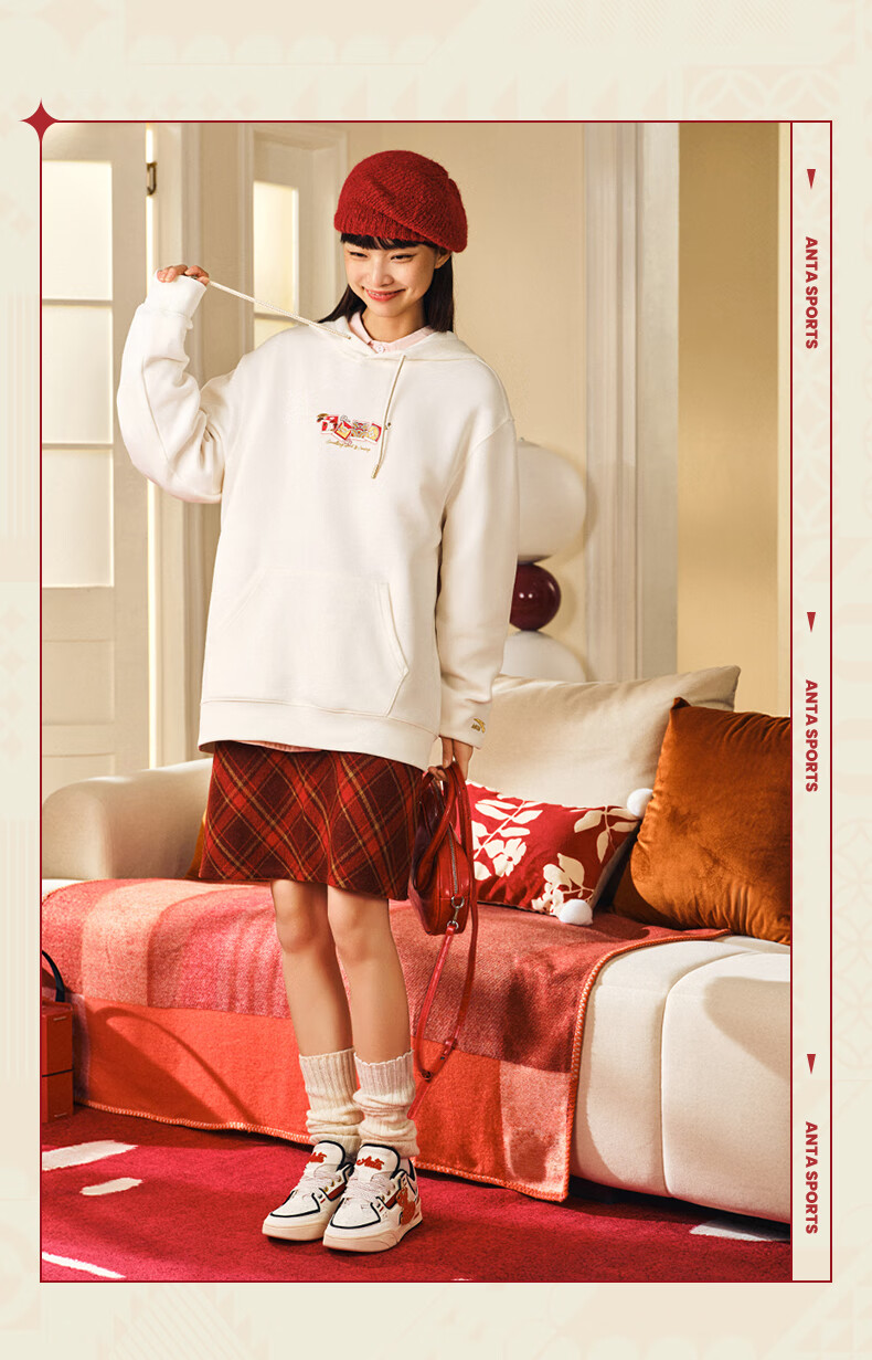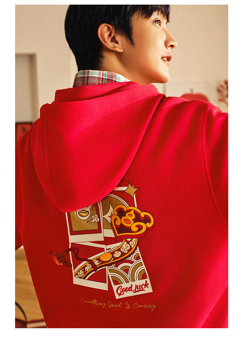 安踏(ANTA)好事发生丨新年款红色连帽卫衣男宽松保暖长袖上衣152518702