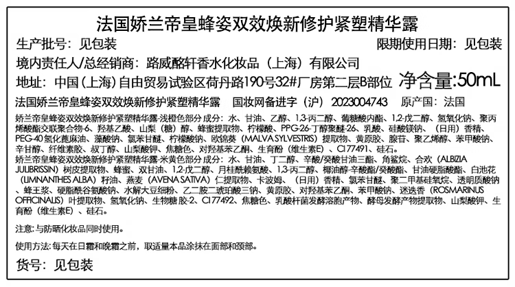 娇兰帝皇蜂蜂姿双效焕新修护紧塑精华露50ml