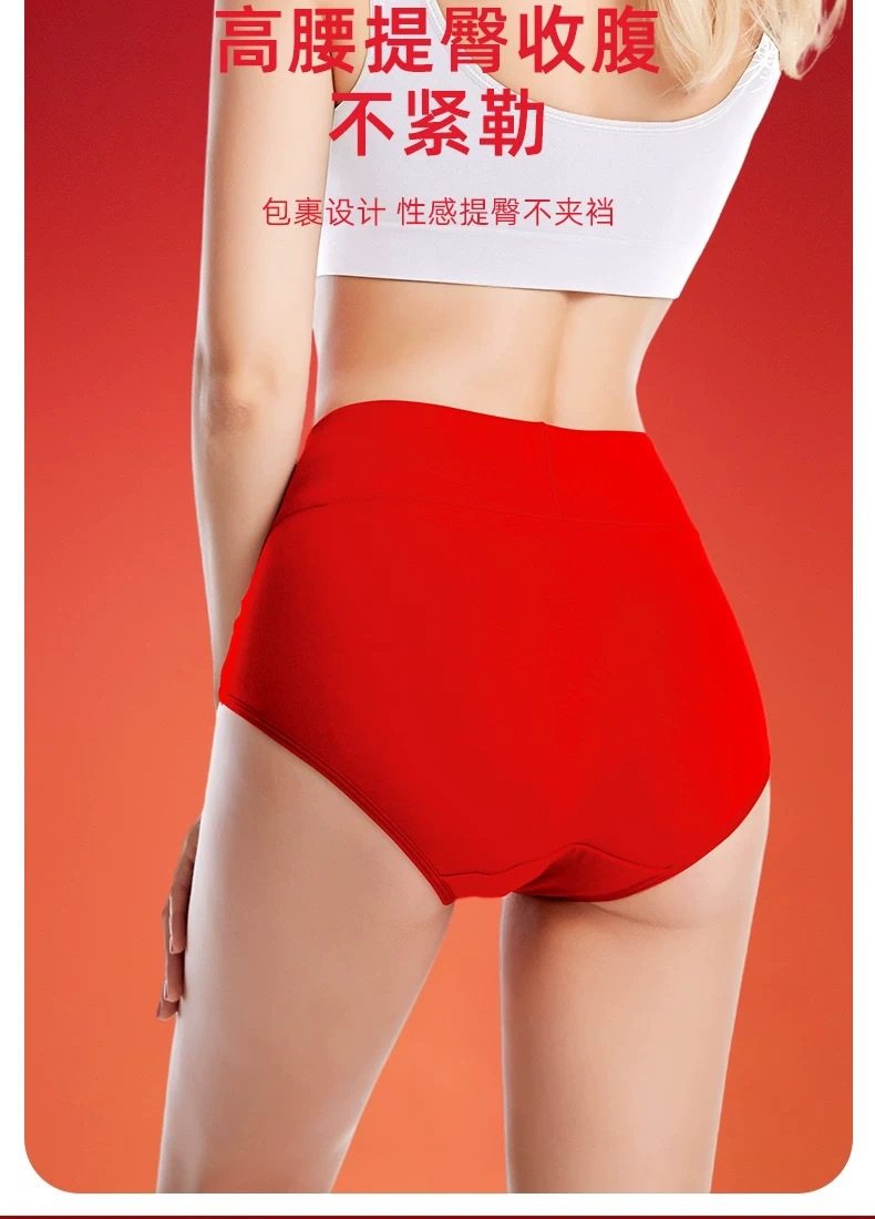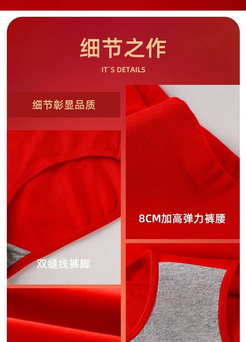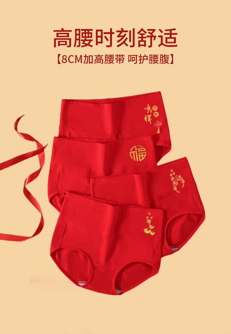 【2内+2袜-盒装】AISRVE女士红色纯棉内裤 喜庆红色高腰内裤红色棉袜 蛇年本命年大红三角裤红袜子
