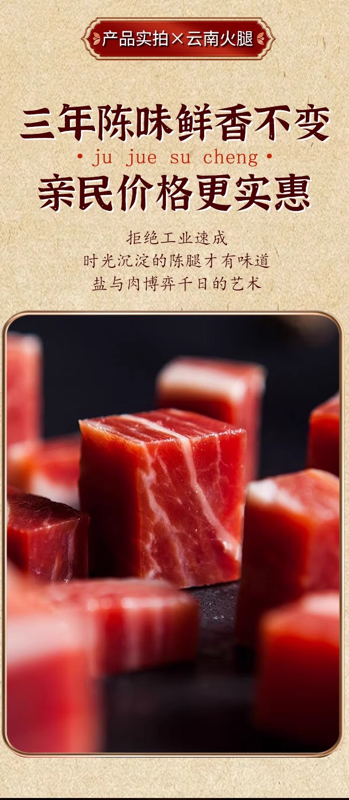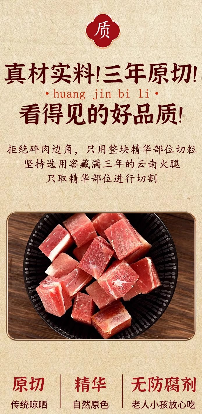 正宗云南宣威火腿粒100g/袋 三年陈腿原切 咸香不腻 云南特产农家腊肉