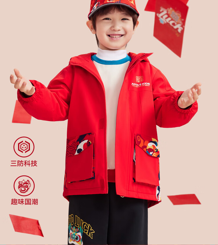 安踏儿童男童摇粒绒运动上衣2025春保暖新年款厚外套352519613