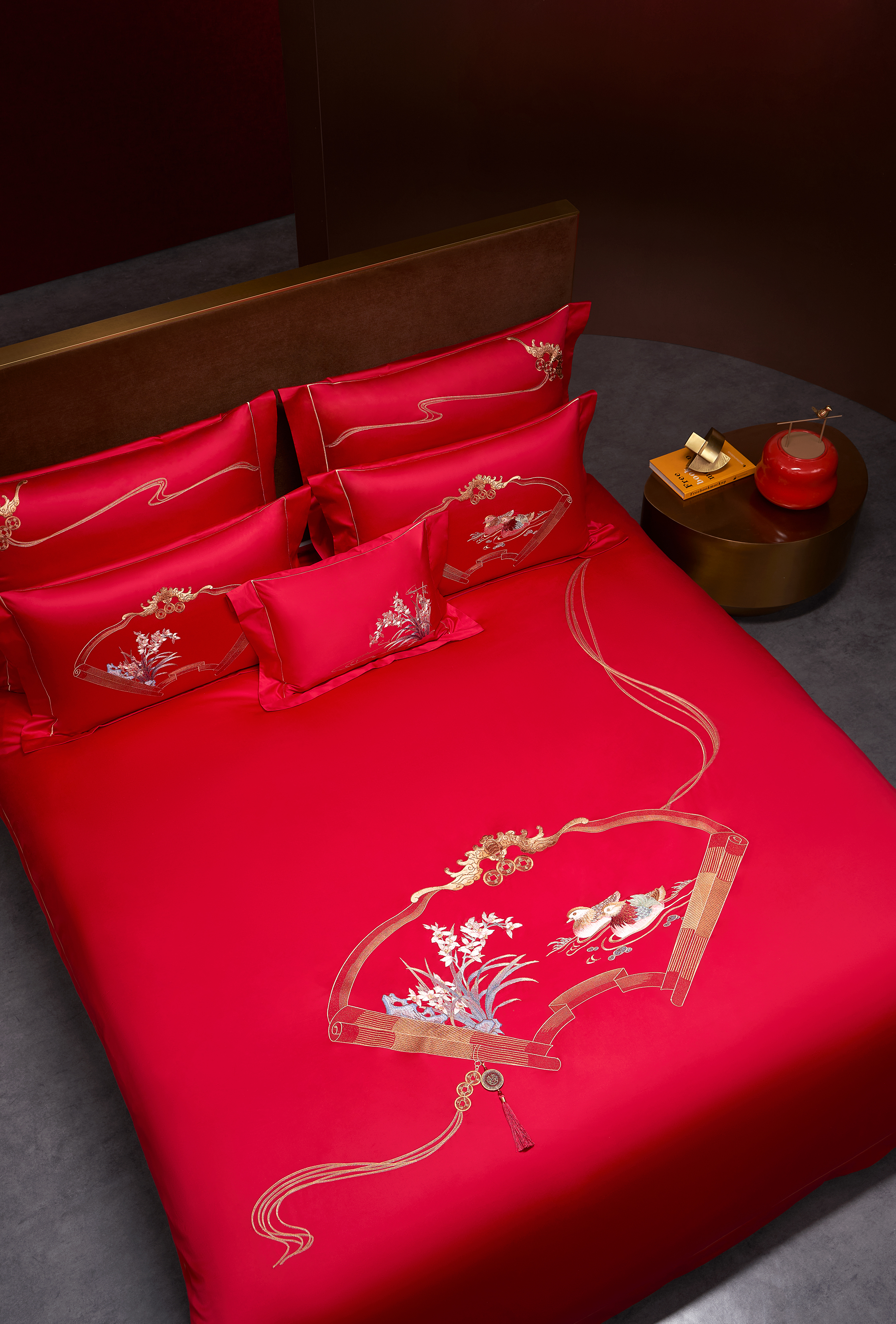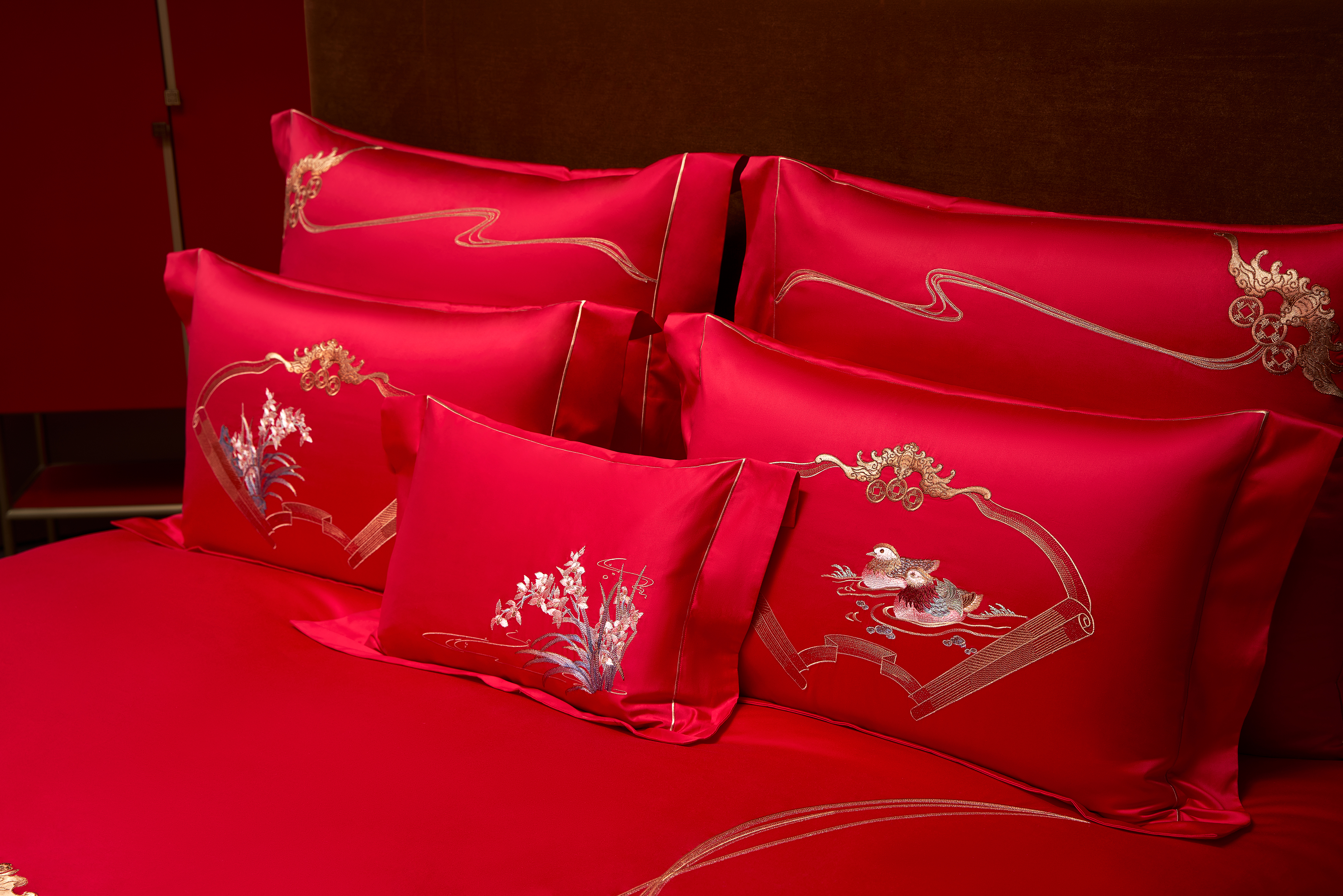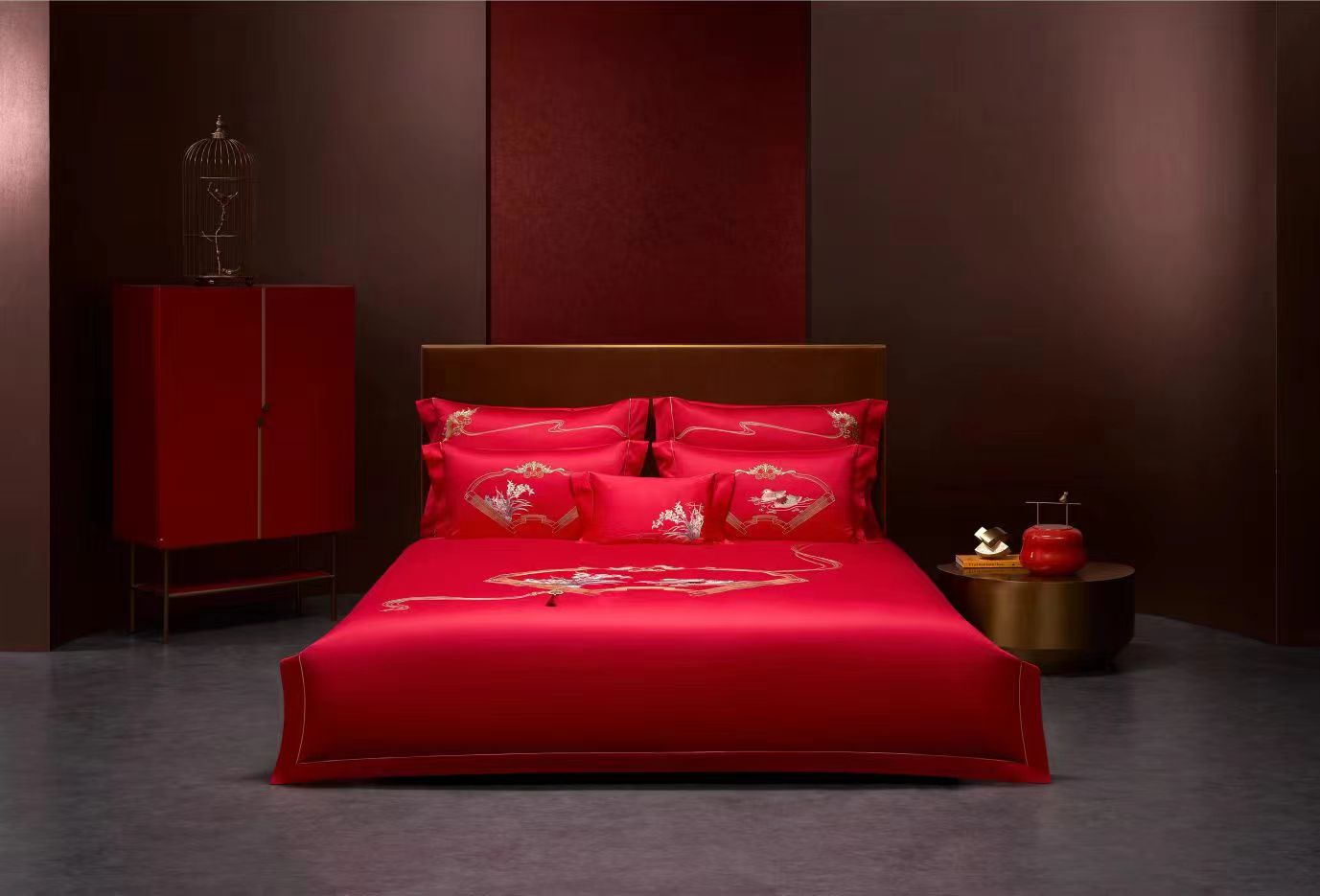 博洋家纺婚庆红套件鸳鸯戏水六件套