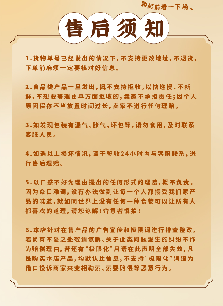 2.下单前请确定好发货信息,下单后不支持拦截/拒收/改地址
