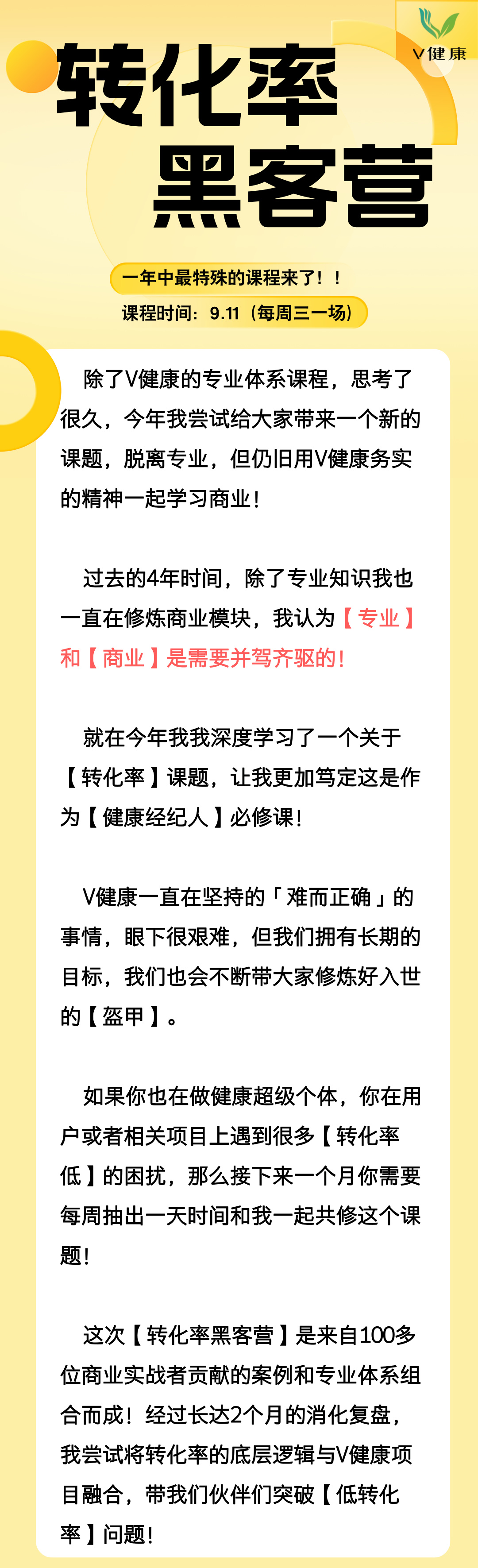 【V健康】转化率黑客营