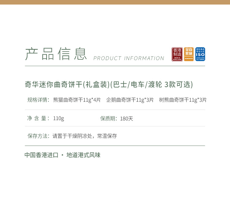 【奇华迷你巴士曲奇饼干(礼盒装)】中国香港奇华饼家巧克力奶油曲奇小熊猫饼干电车巴士轮船零食礼盒