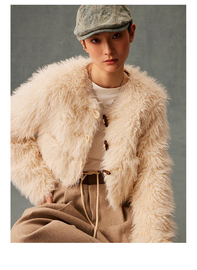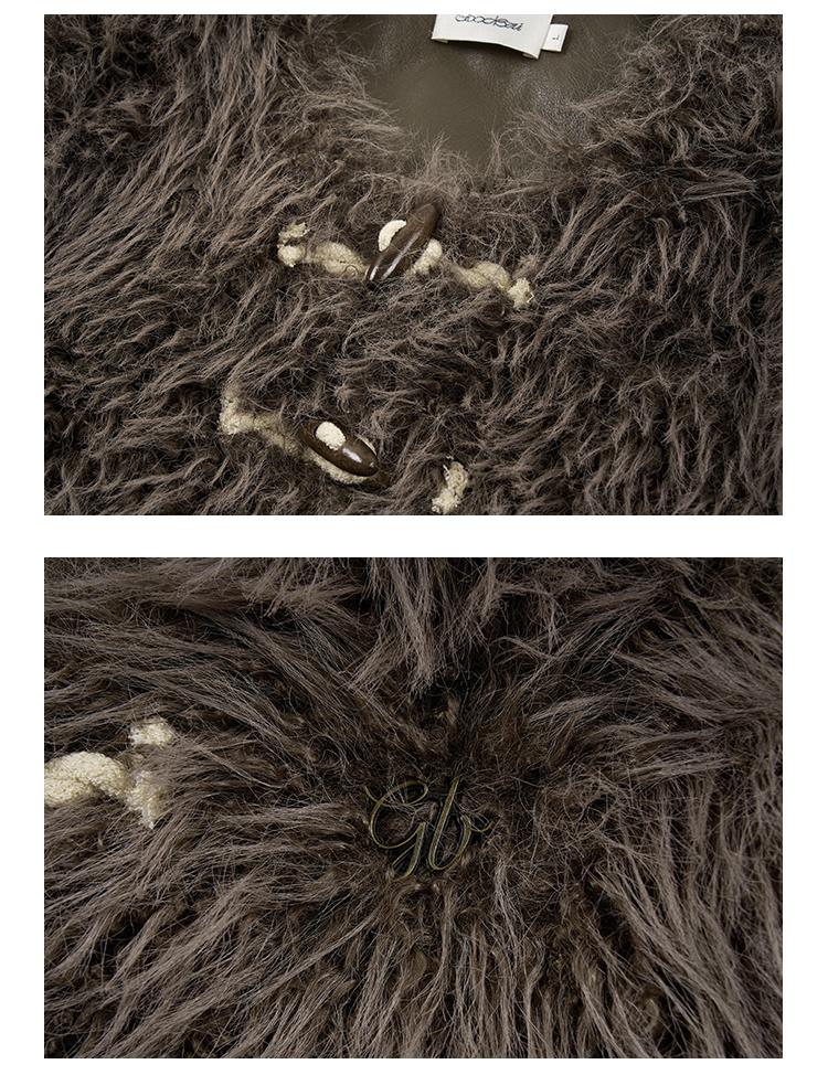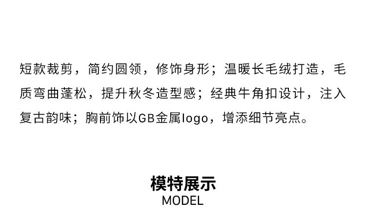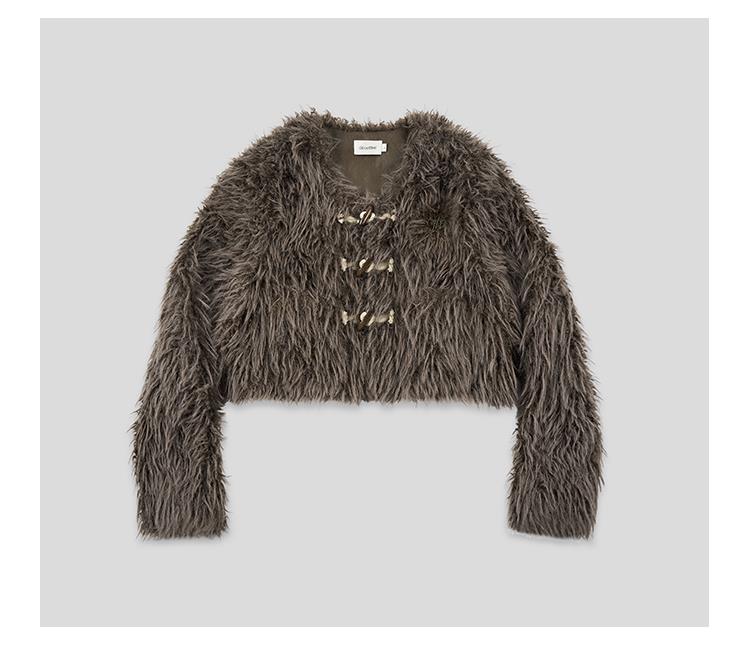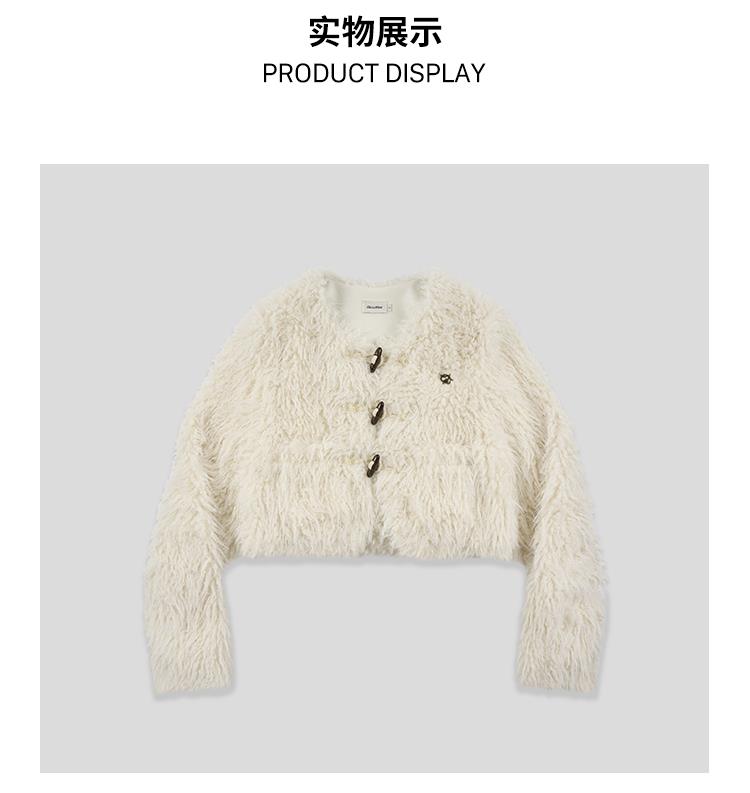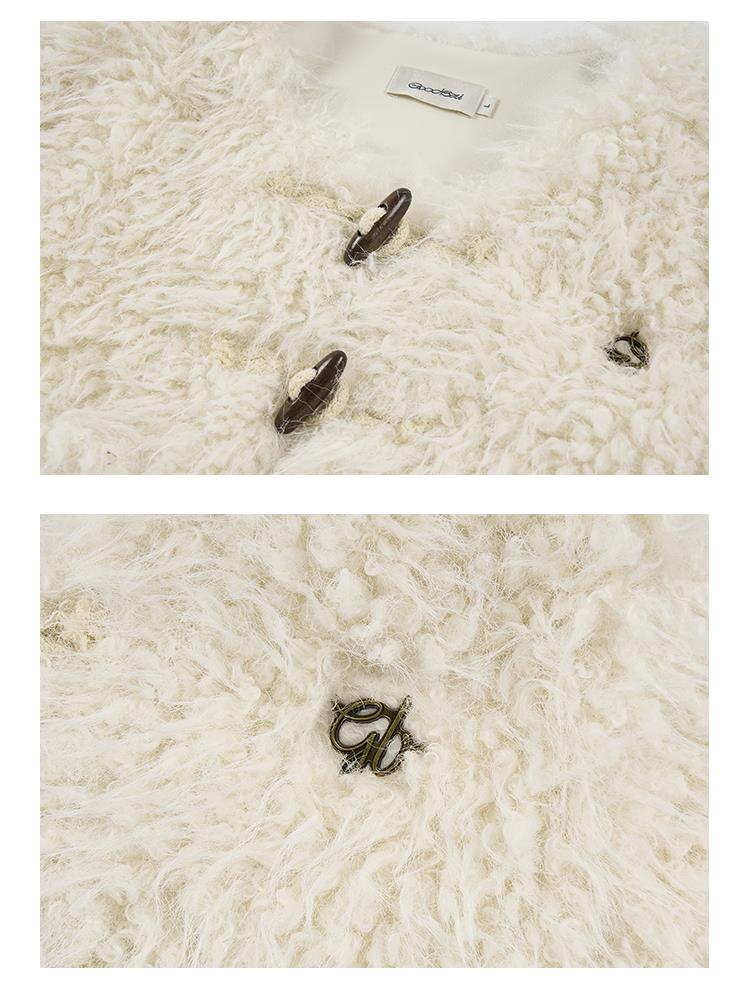 GOODBAI GBlogo金属标圆领短款长毛牛角扣外套