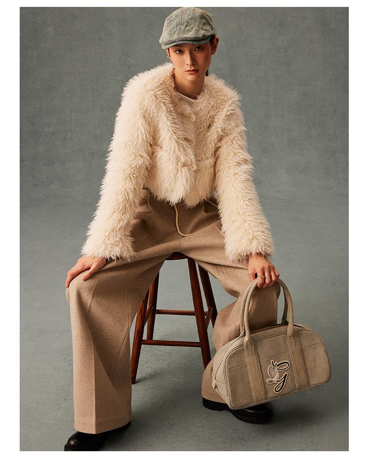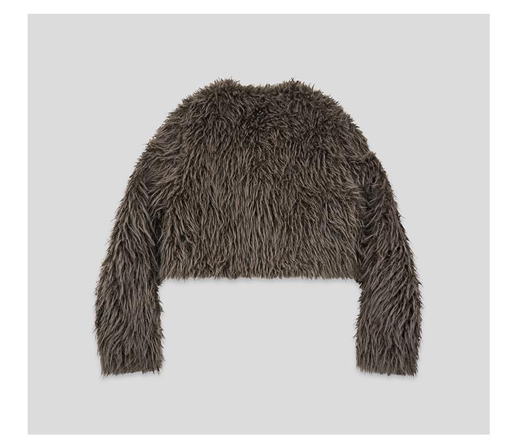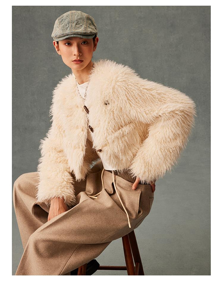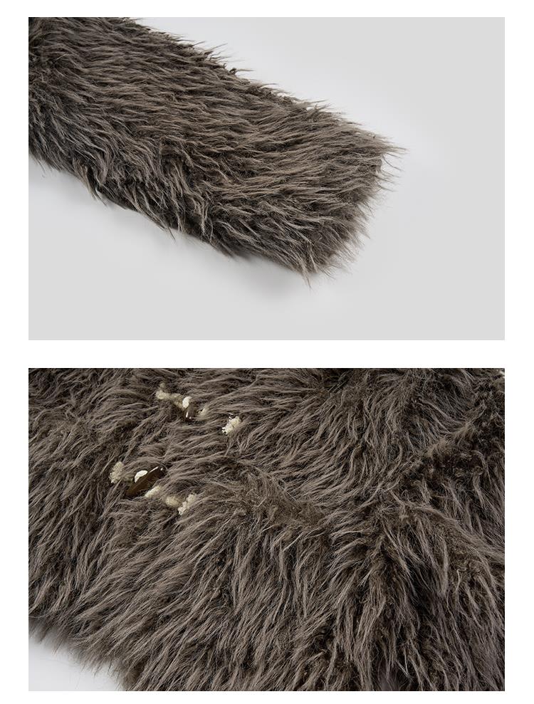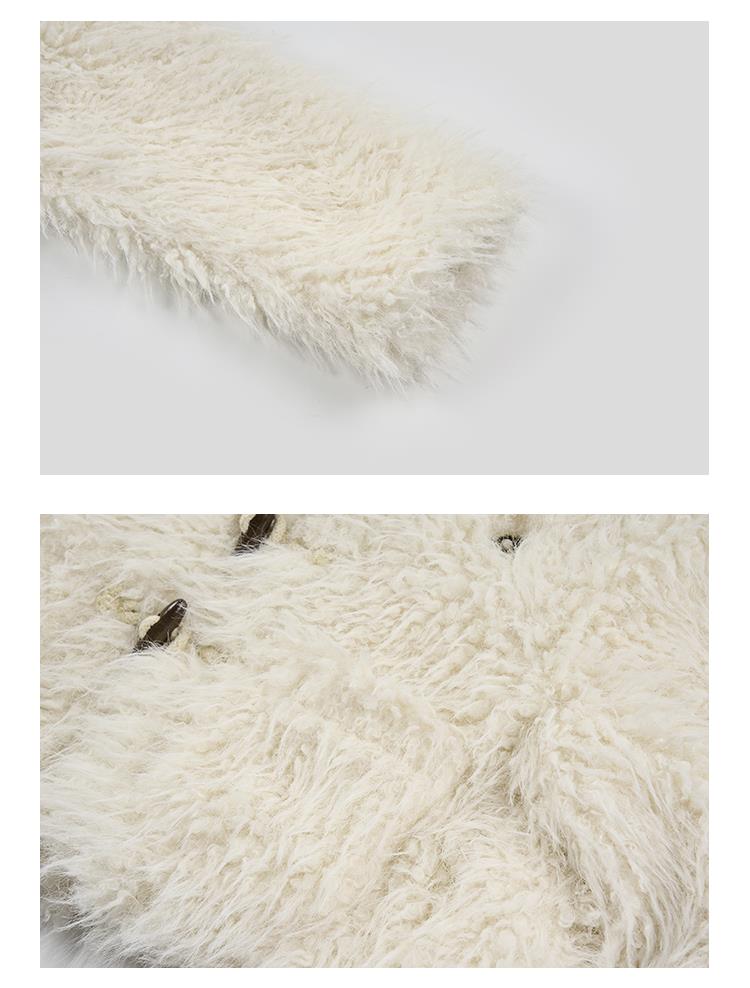 GOODBAI GBlogo金属标圆领短款长毛牛角扣外套