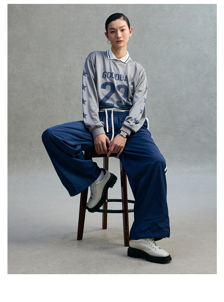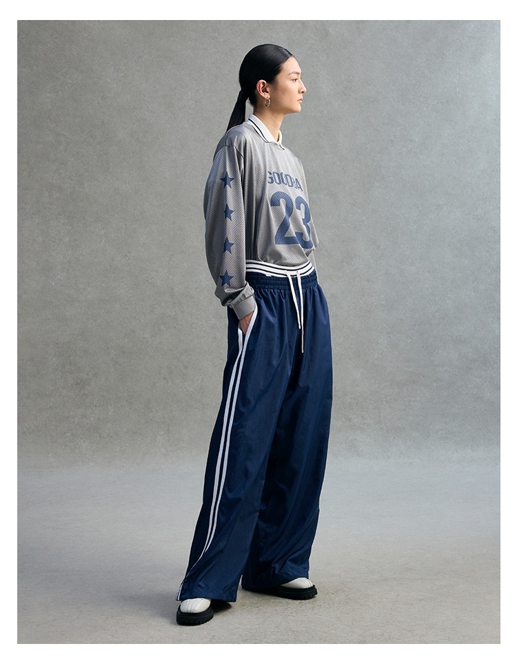 GOODBAI 23编号logo印花侧面织带抽绳阔腿休闲长裤