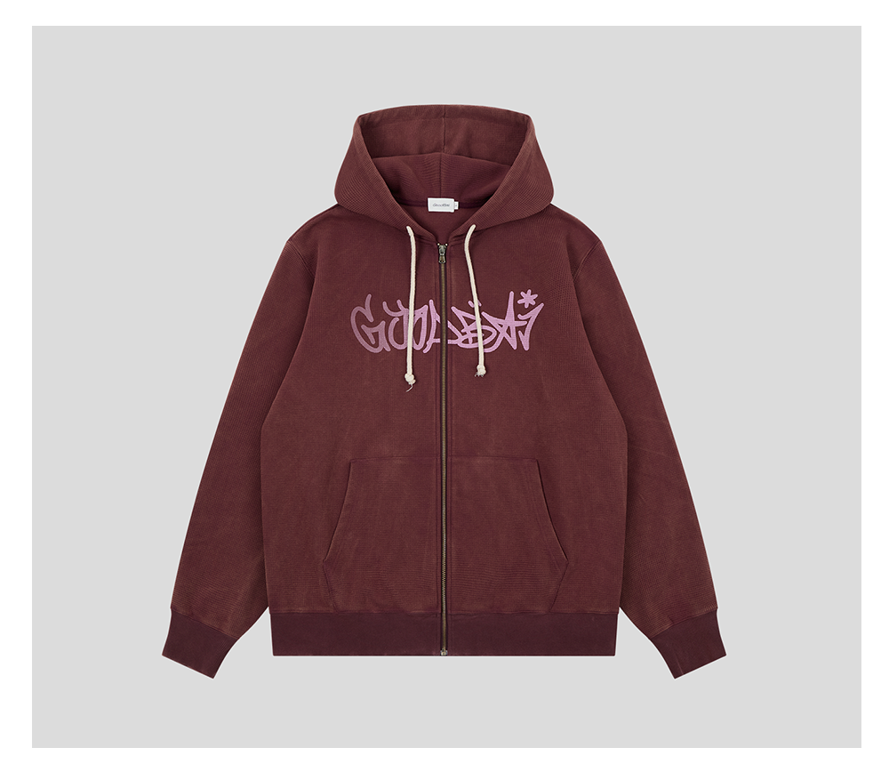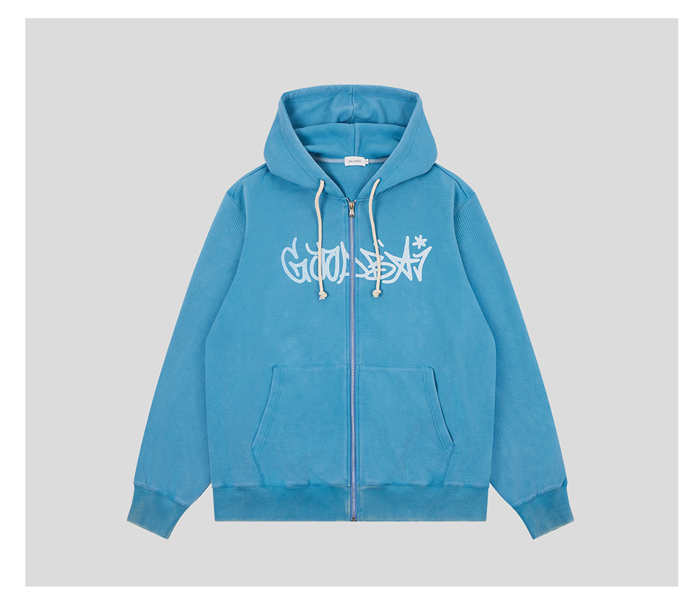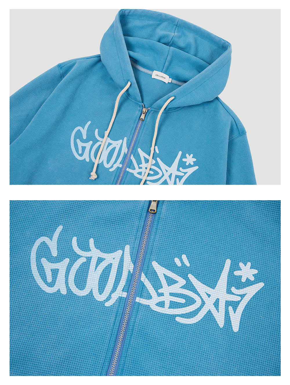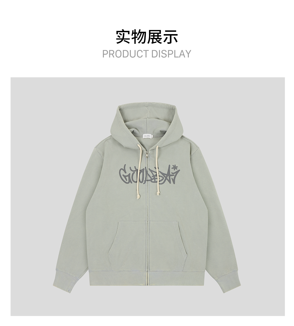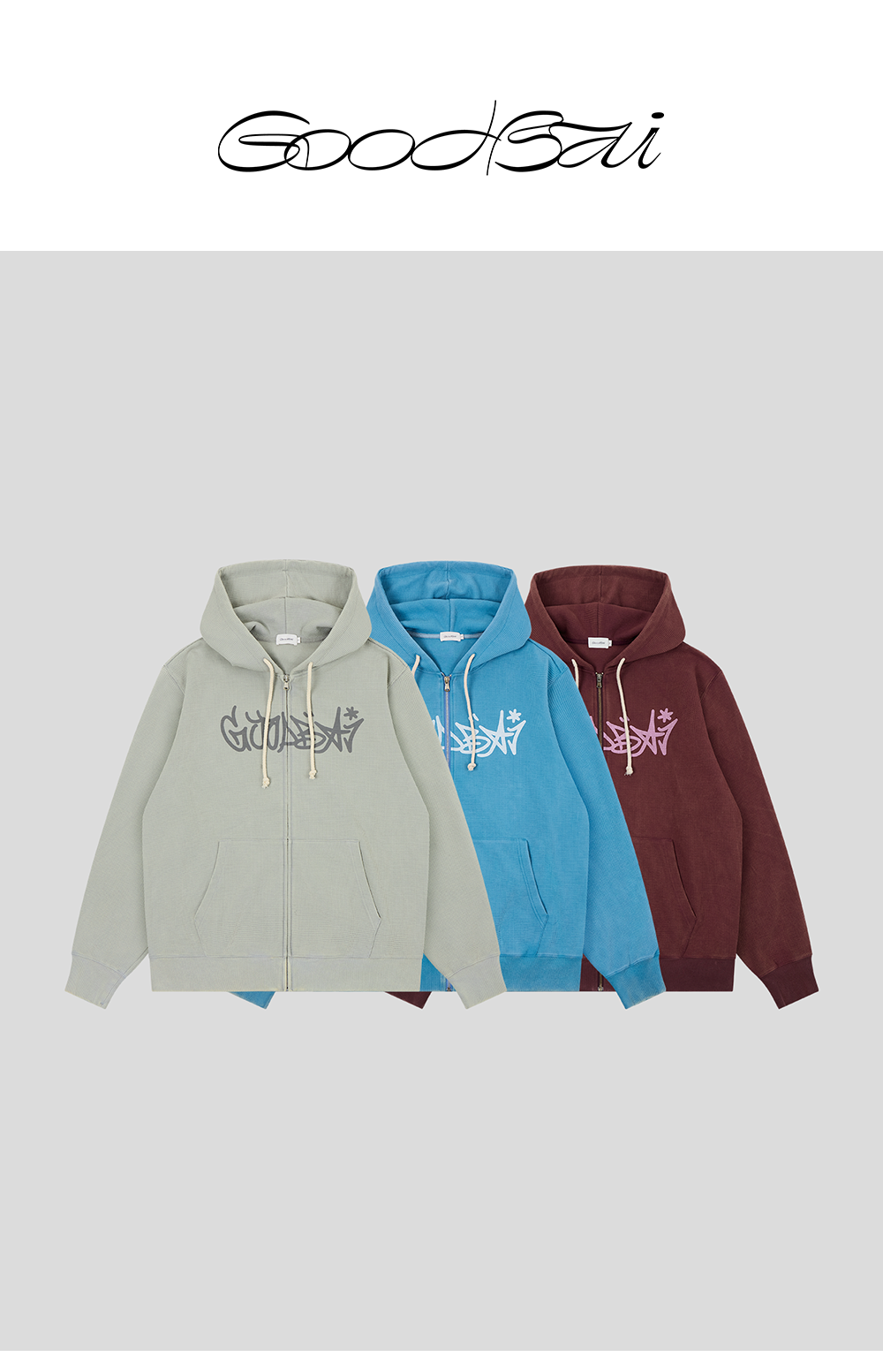 GOODBAI撞色涂鸦logo印花连帽拉链卫衣夹克