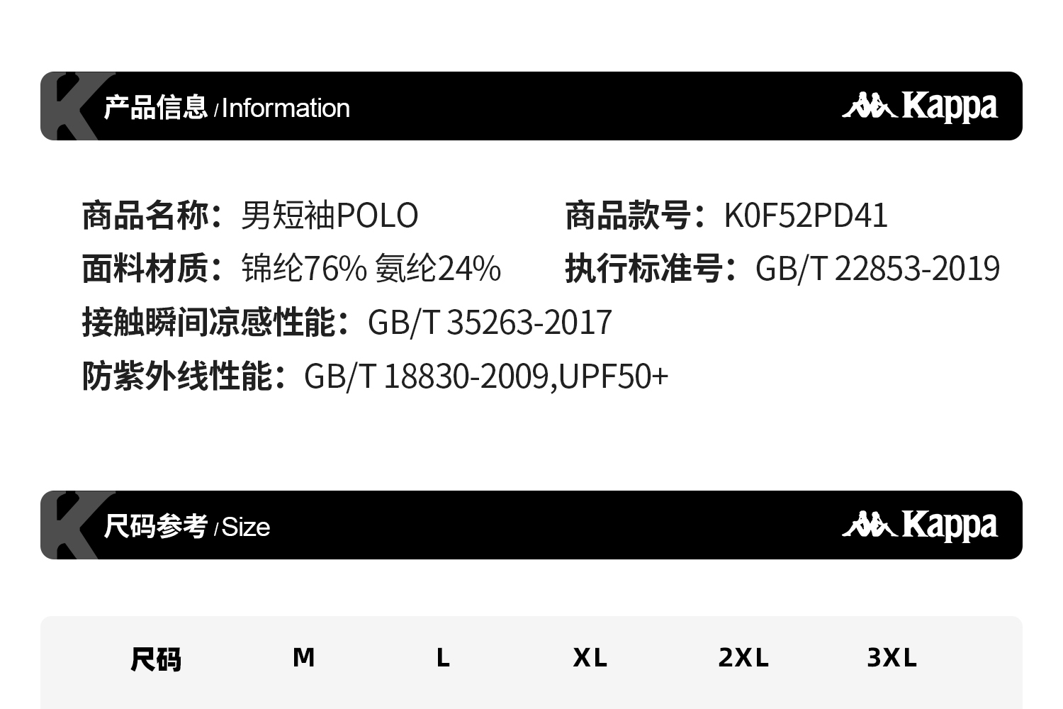 Kappa卡帕背靠背运动短袖男夏季新款休闲凉感polo衫翻领防晒上衣K0F52PD41